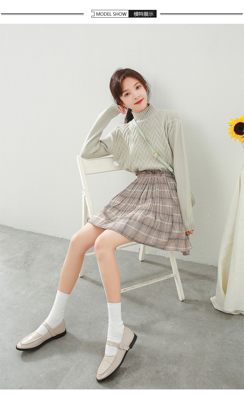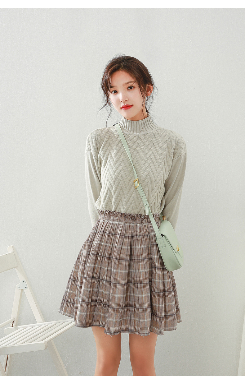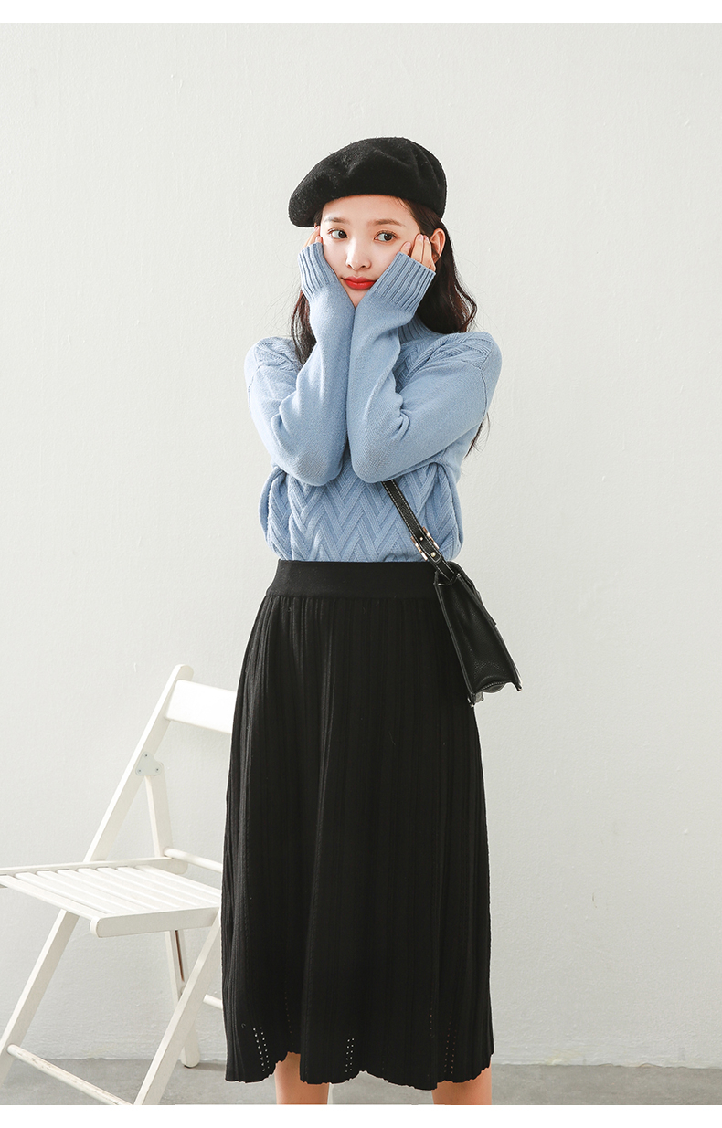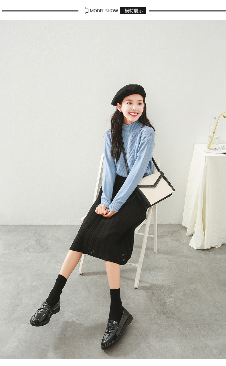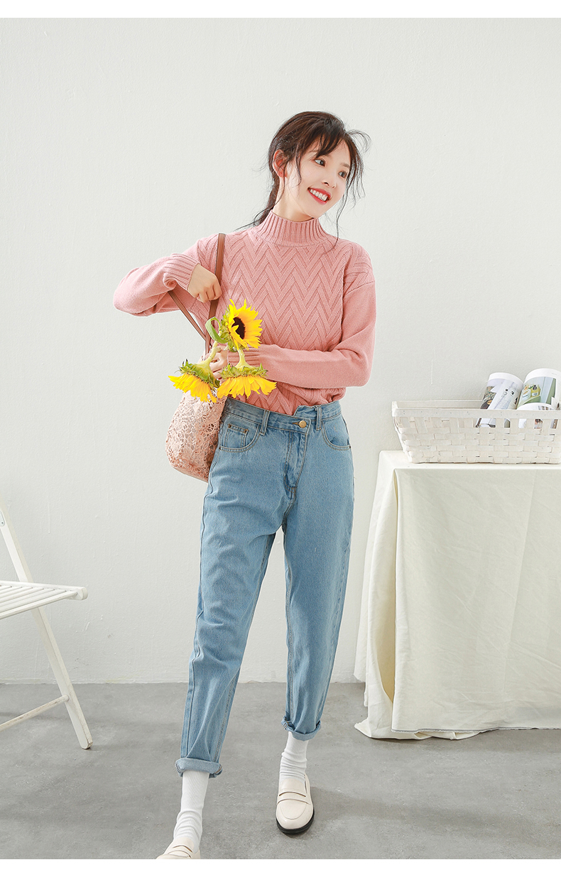 高領毛衣女新款春秋裝寬松韓版慵懶風針織衫女學生內搭打底衫1入