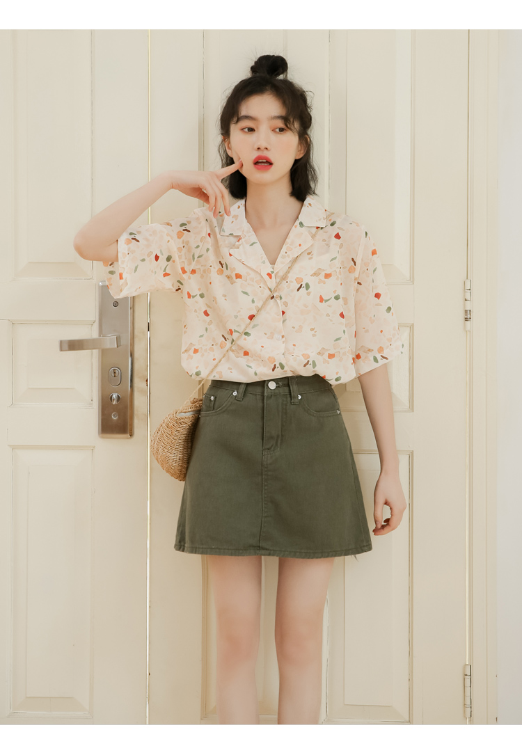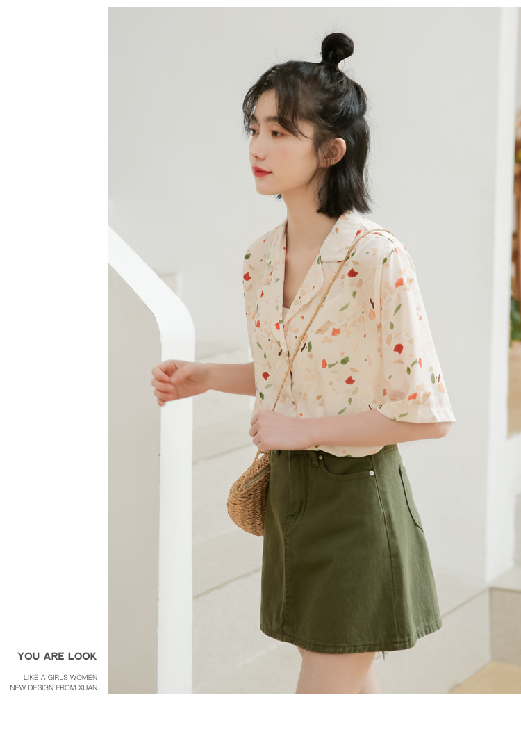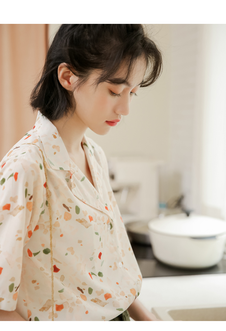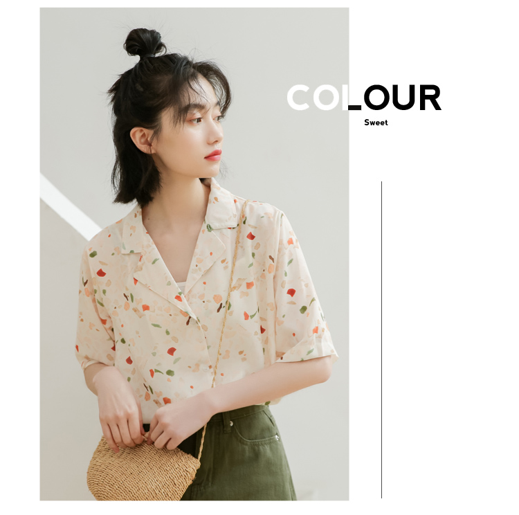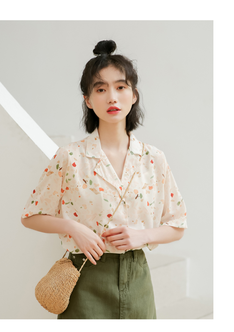 雪紡襯衫女春秋新款韓版法式復古襯衣設計感寬松短袖V領上衣1入