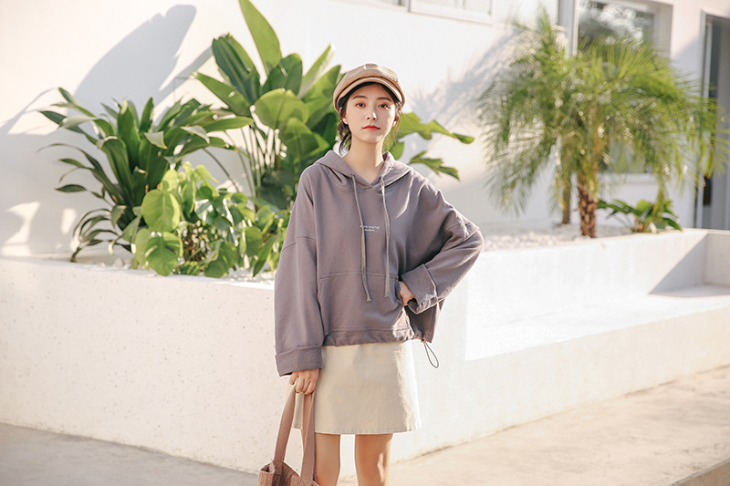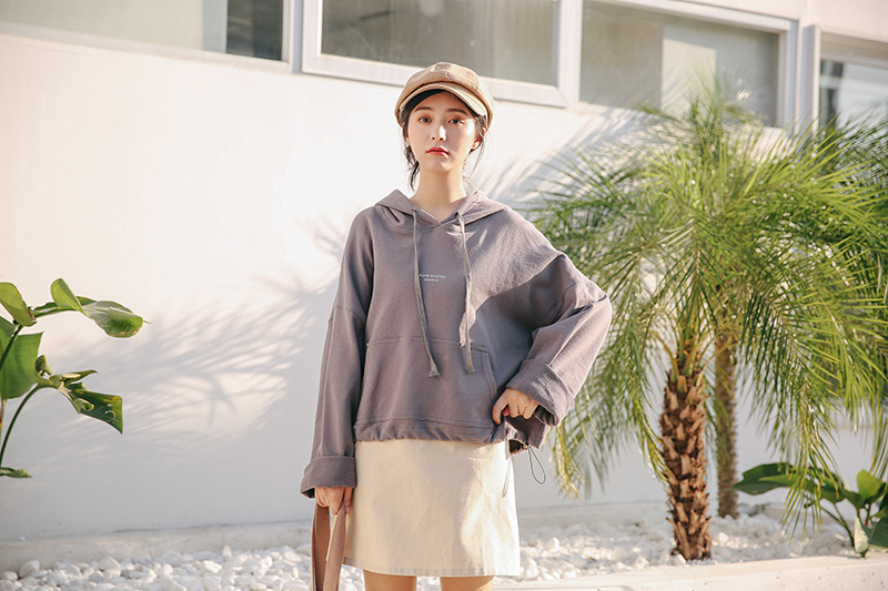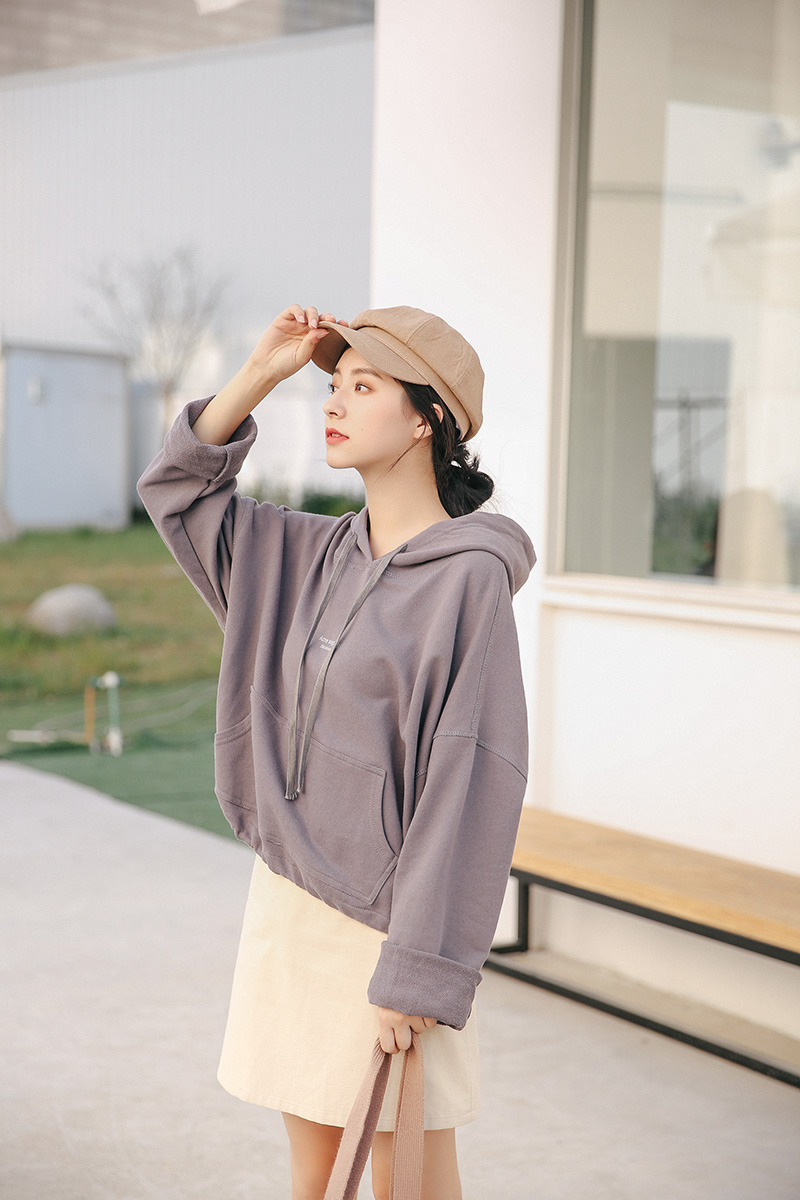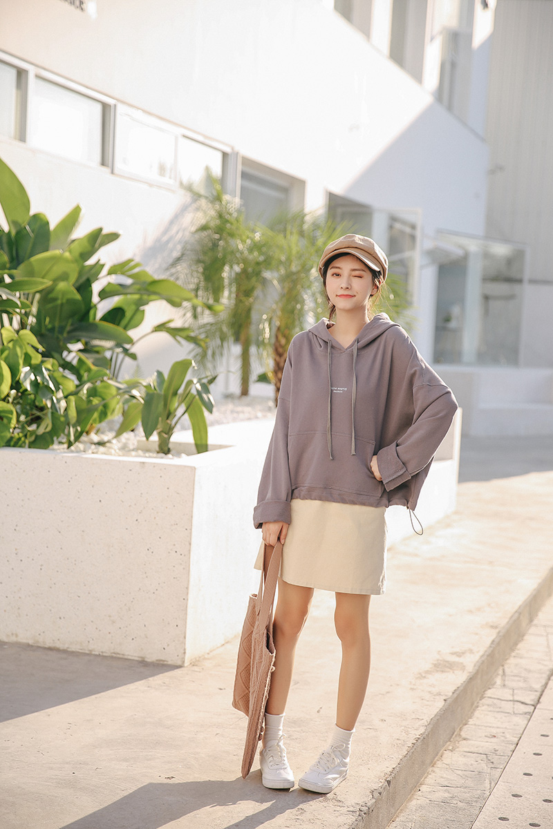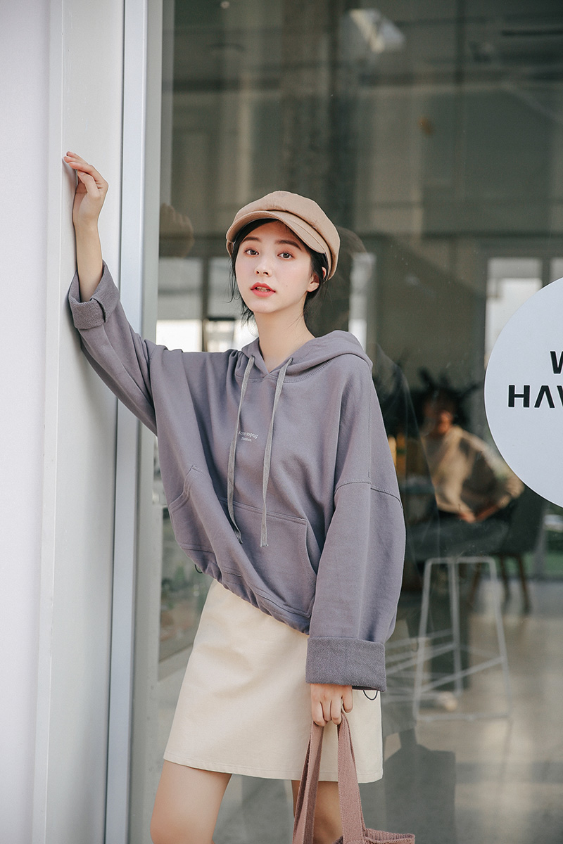 衛衣新款女長袖韓版寬松春秋學生字母印花連帽套頭慵懶風上衣1入