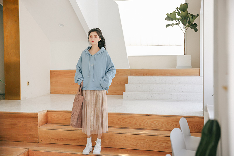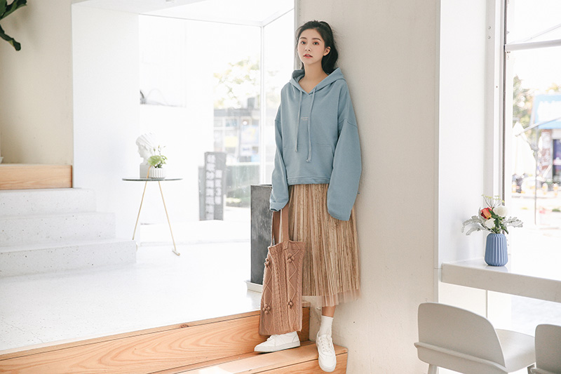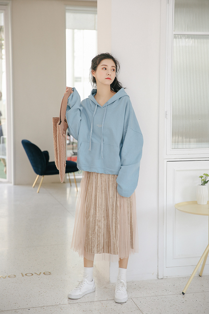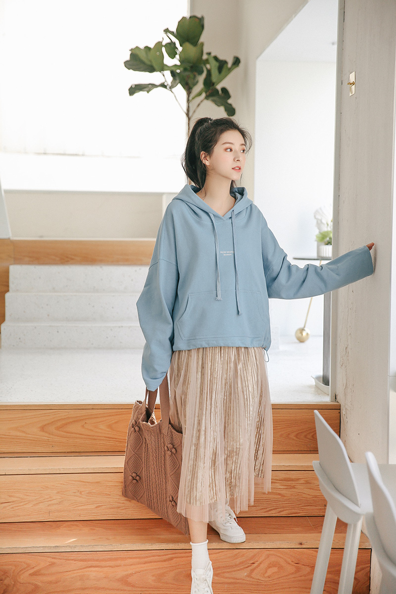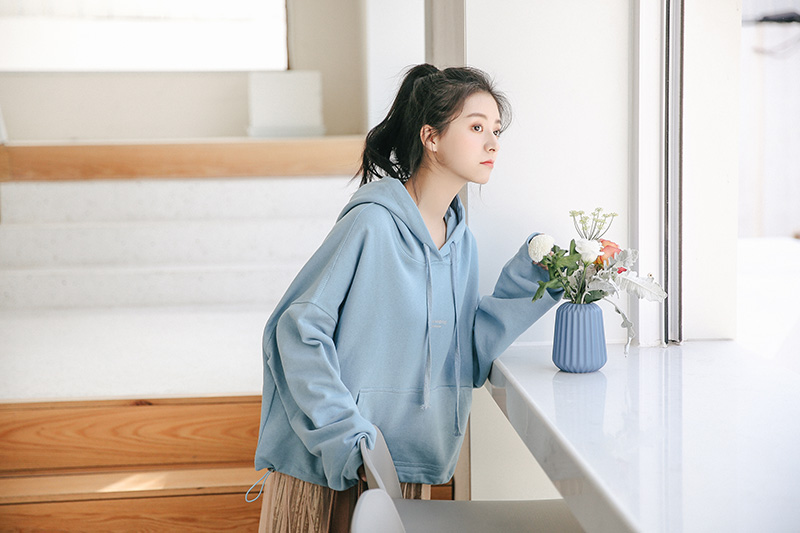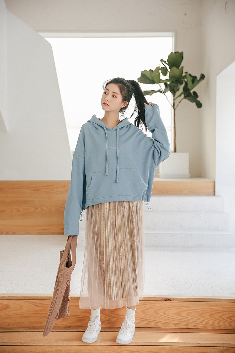 衛衣新款女長袖韓版寬松春秋學生字母印花連帽套頭慵懶風上衣1入