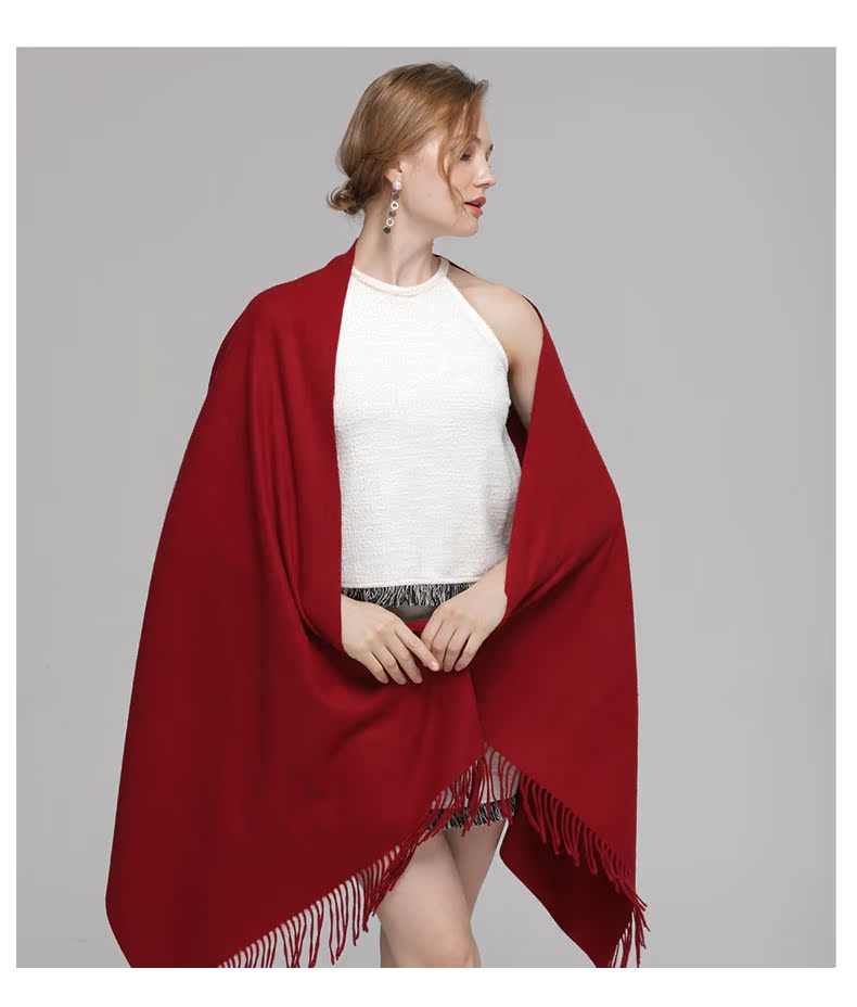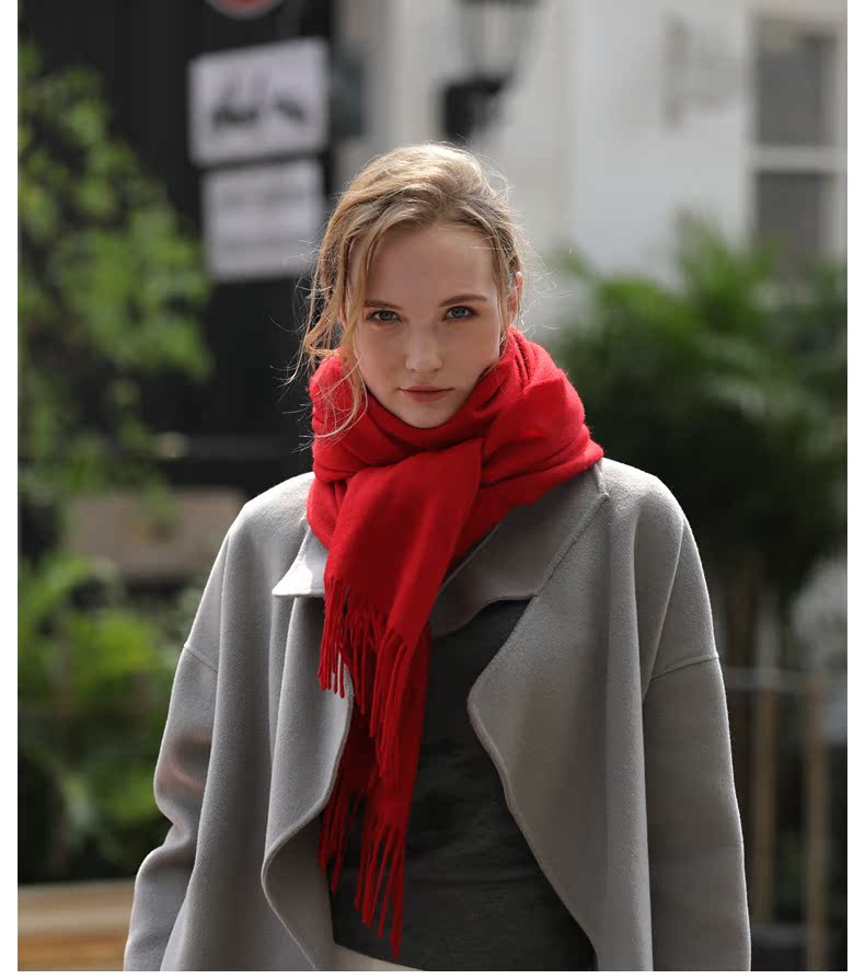 酒紅色圍巾女冬百搭洋氣歐美時尚氣質純色加厚保暖棗紅色圍巾秋冬1入