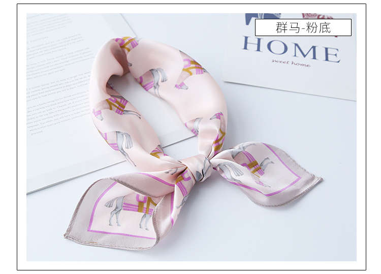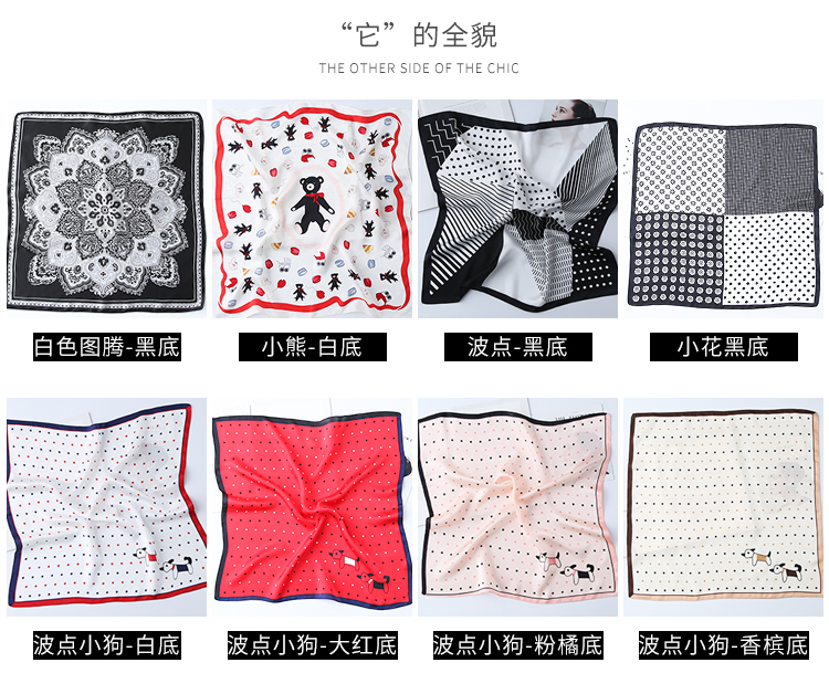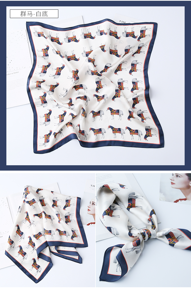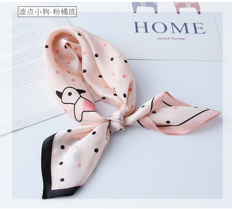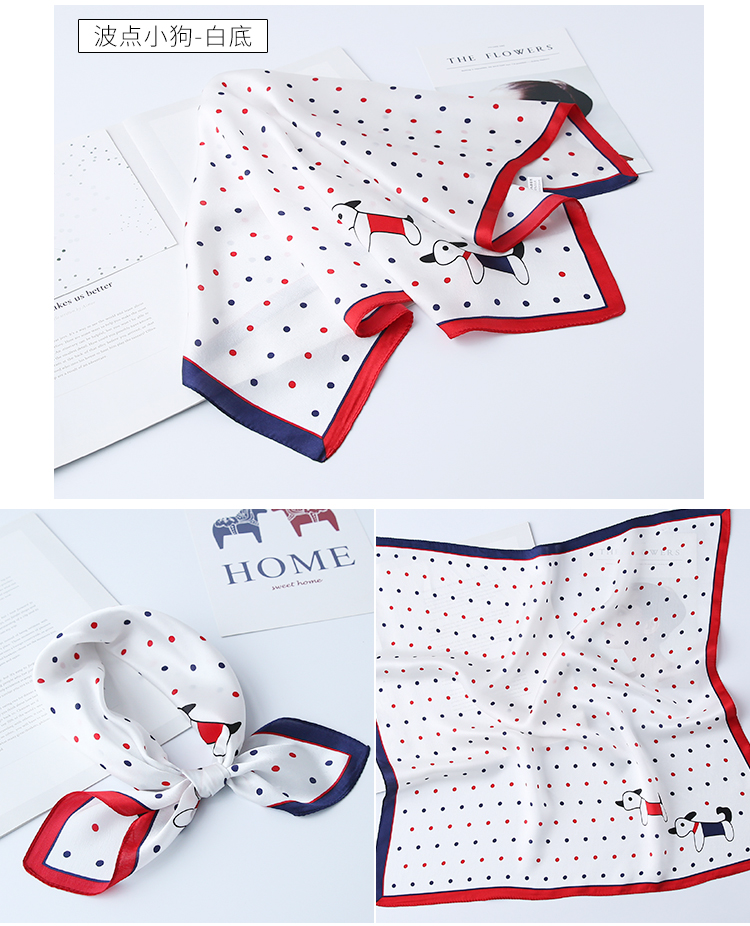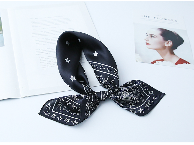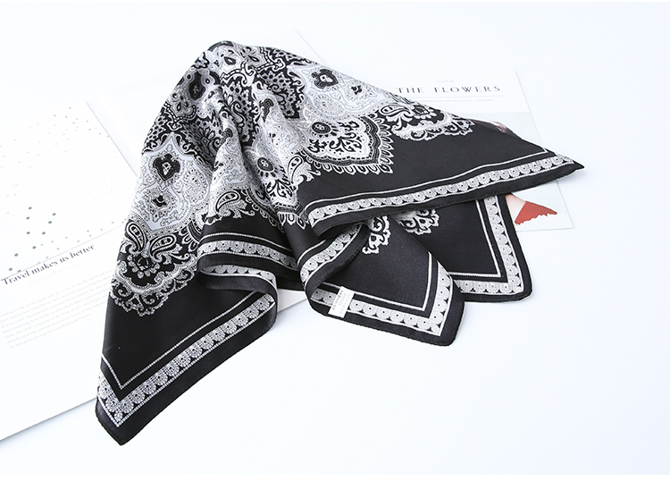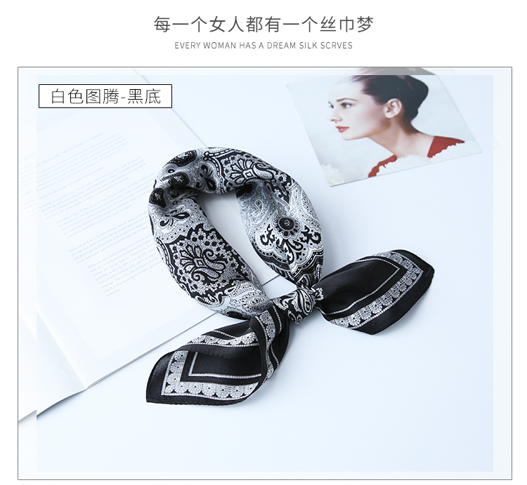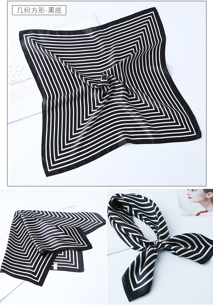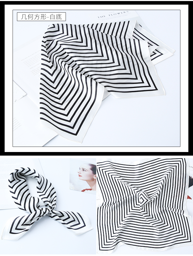 黑白小絲巾女春秋款圍巾百搭簡約時尚蠶絲職業裝飾領巾真絲小方巾1入