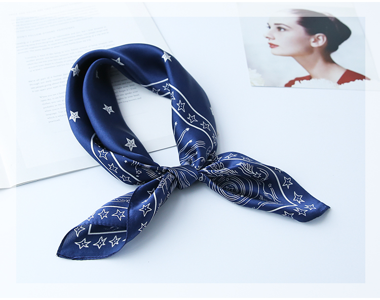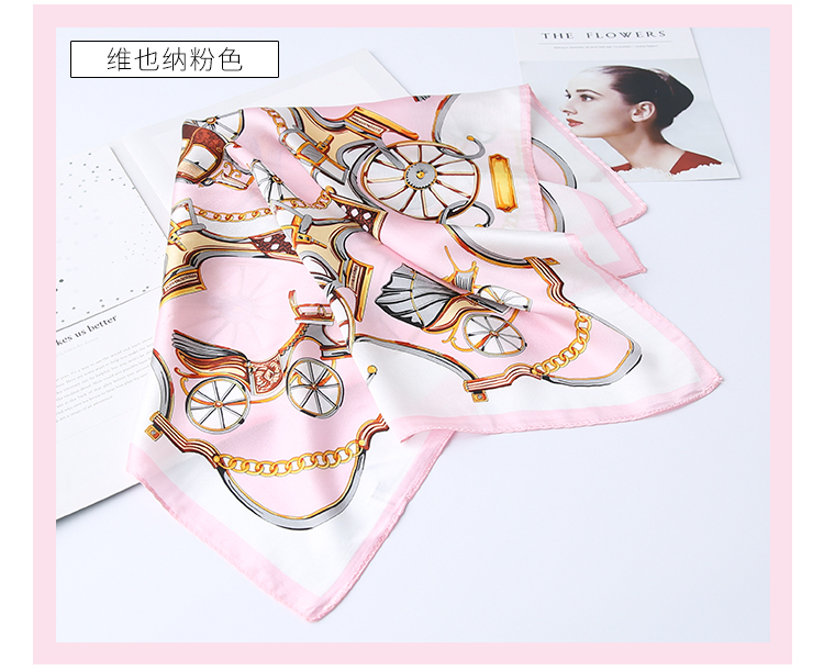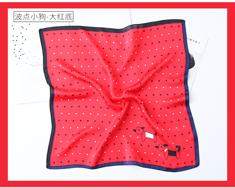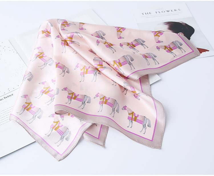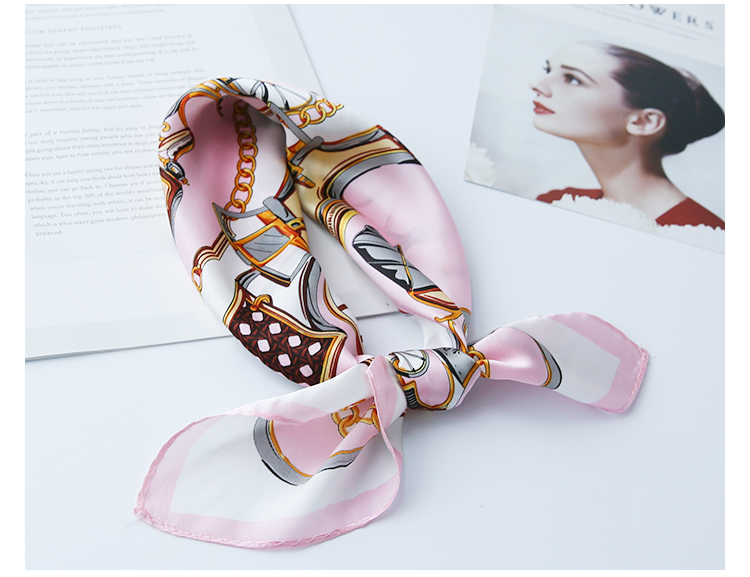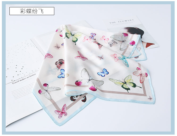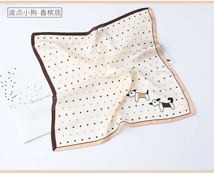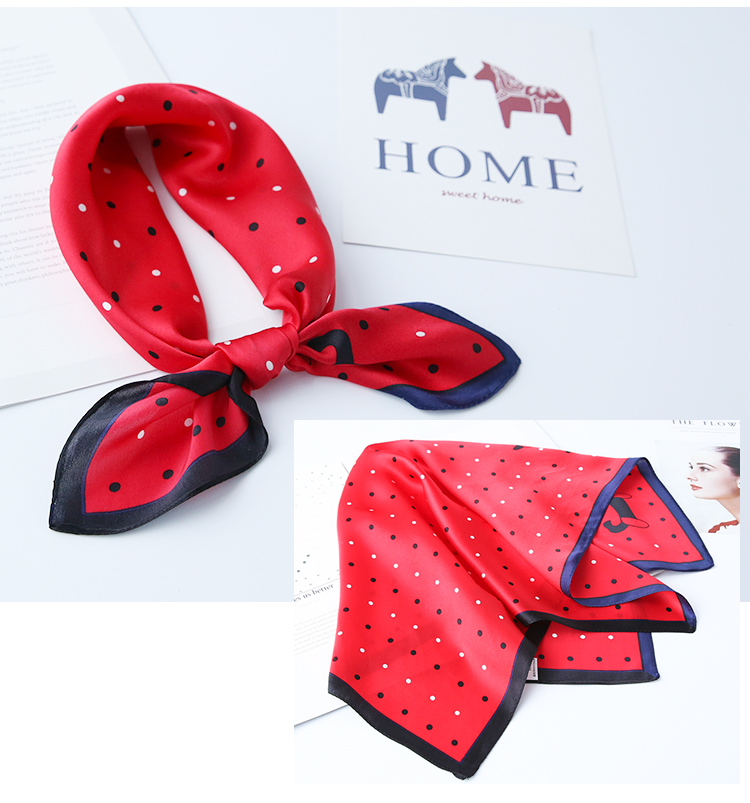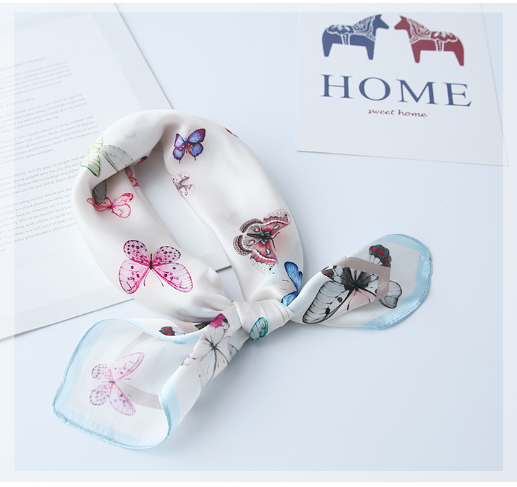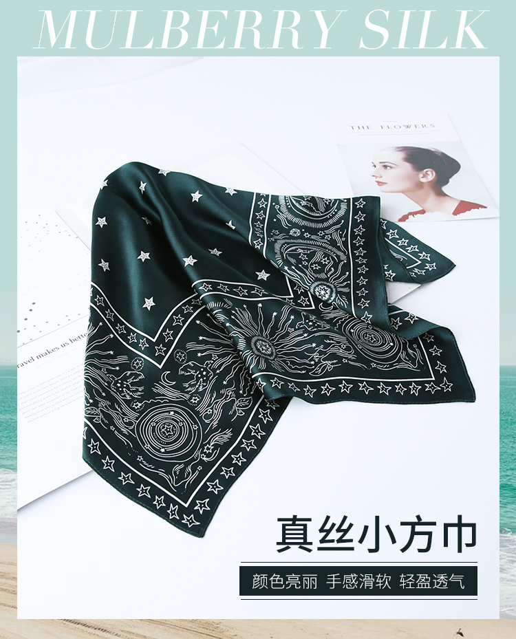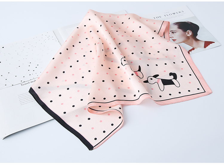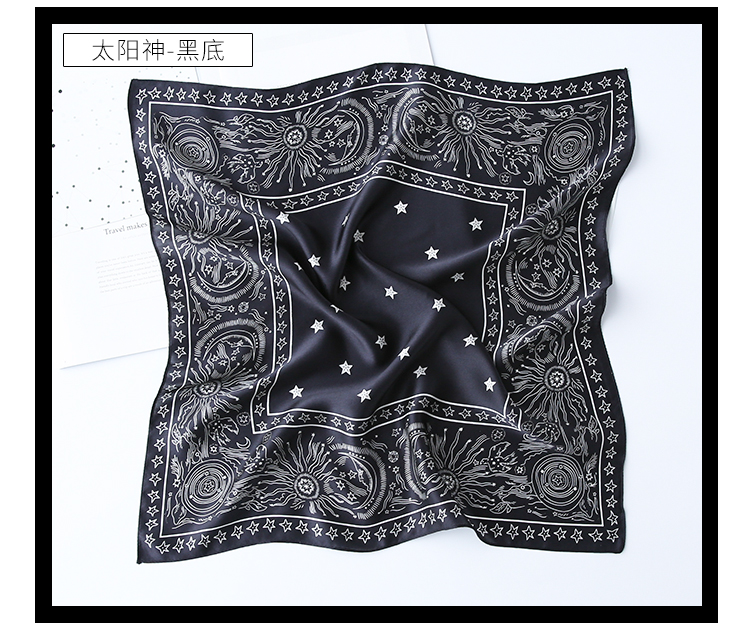 黑白小絲巾女春秋款圍巾百搭簡約時尚蠶絲職業裝飾領巾真絲小方巾1入