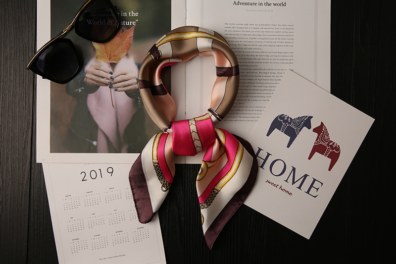 2019秋冬新款女士歐式復古裝飾小圍巾女氣質小絲巾職業百搭小領巾1入