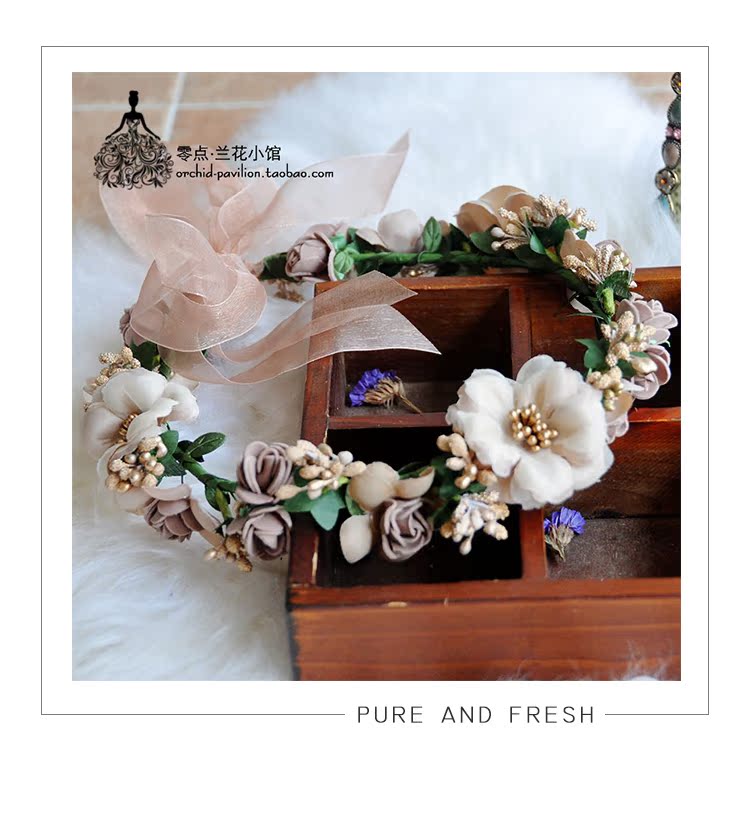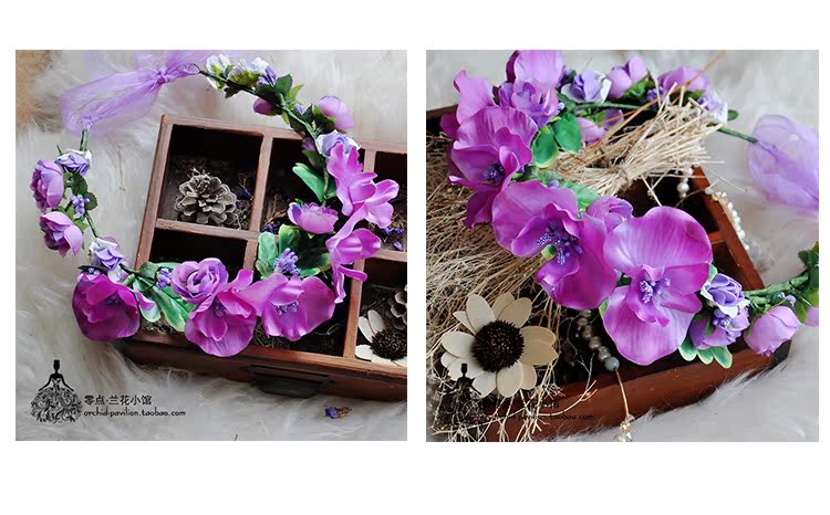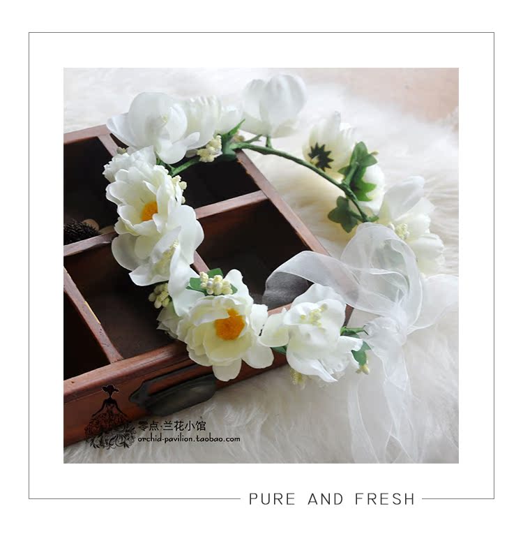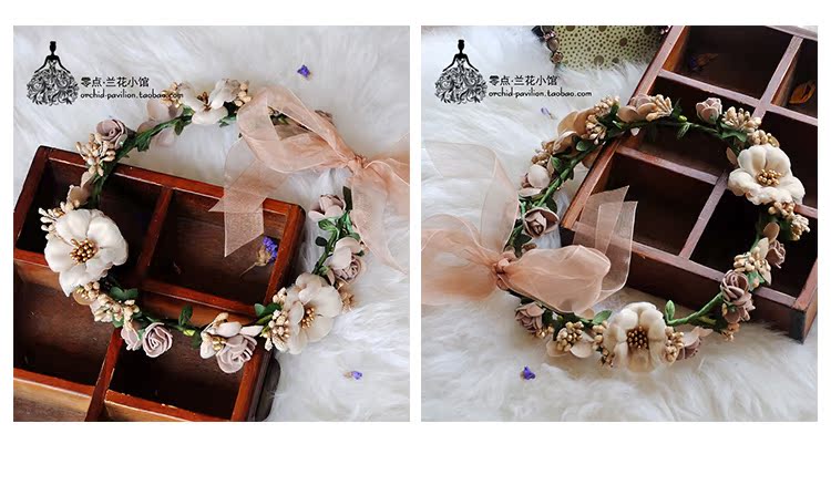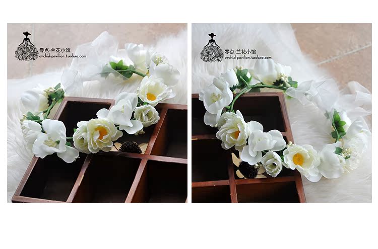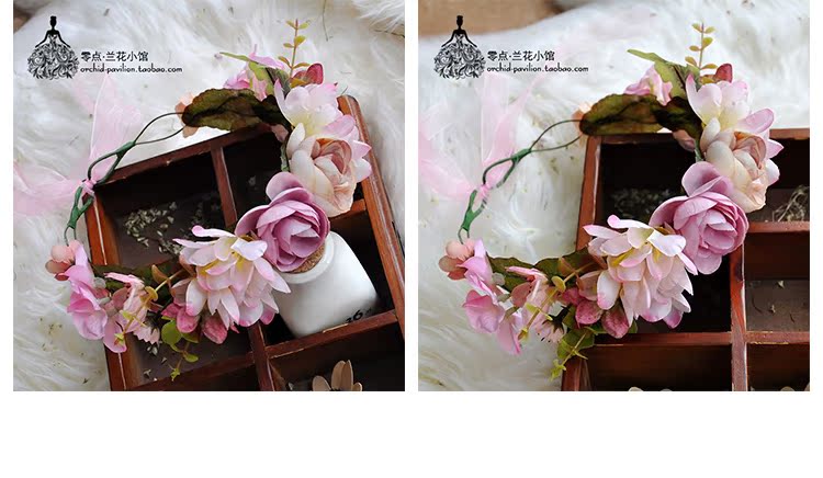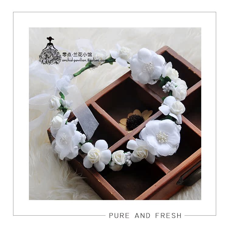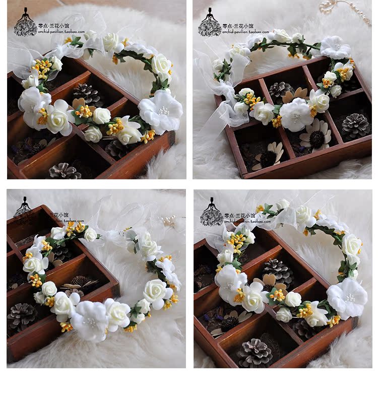 韓式仿真唯美新娘花環 攝影頭飾度假海邊婚紗寫真 伴娘頭花帽飾女1入