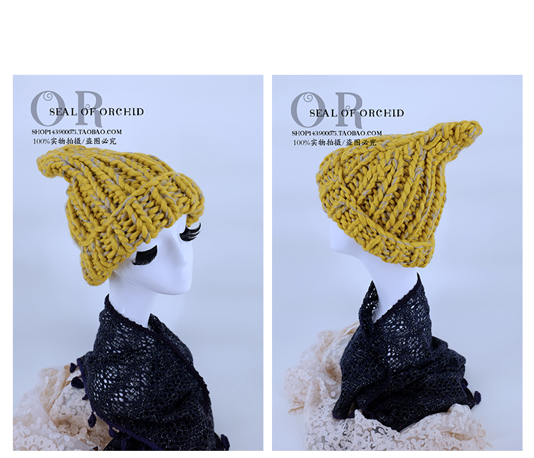 韓版混色針織帽冬季保暖三角形尖頭帽子卷邊護耳毛線帽女月子帽1入