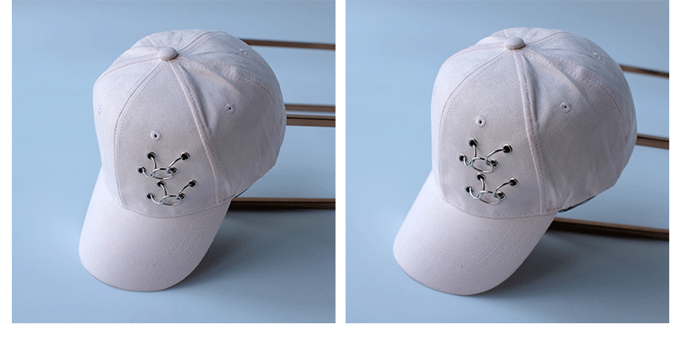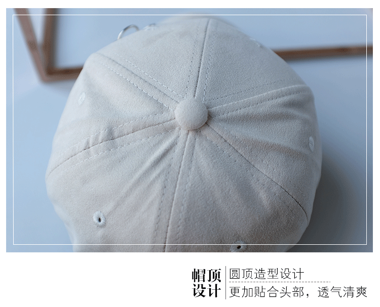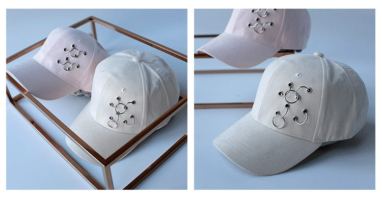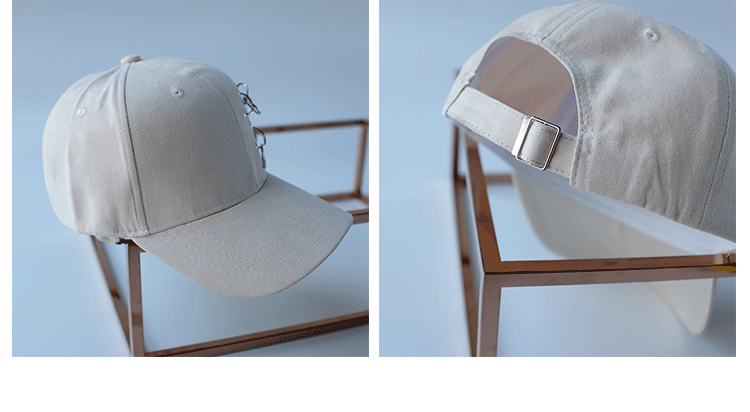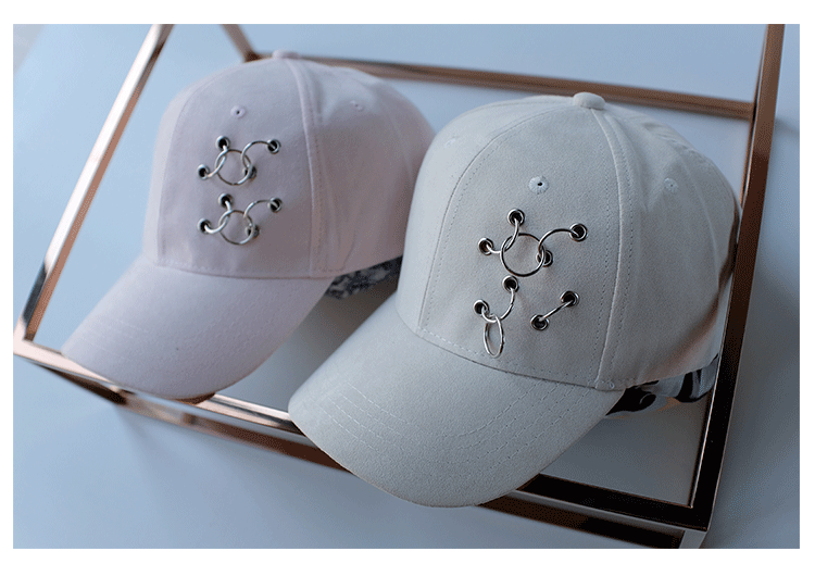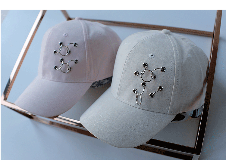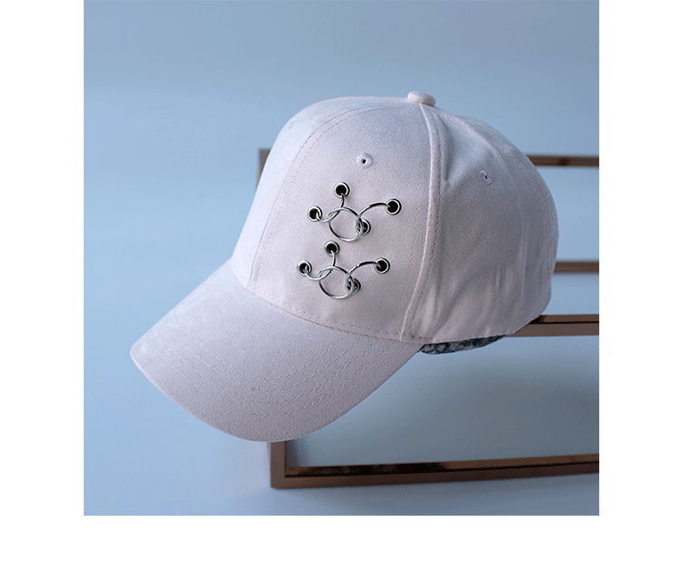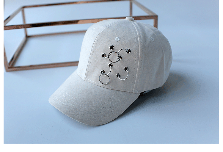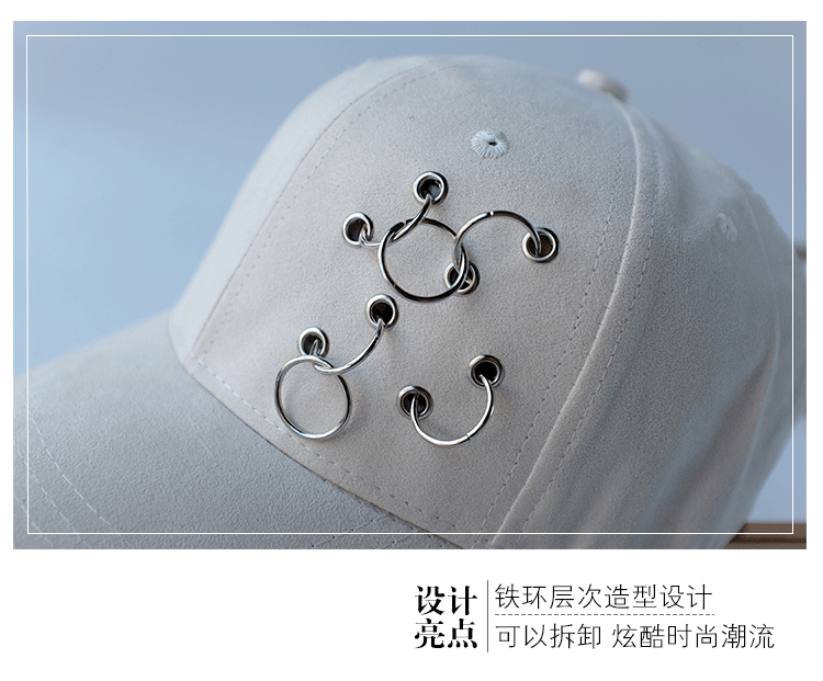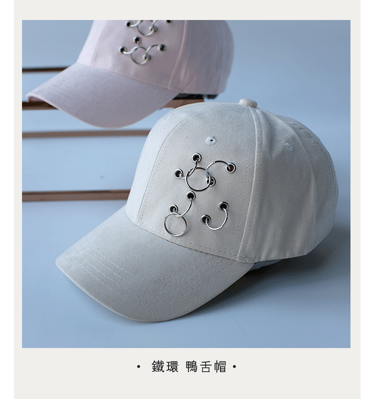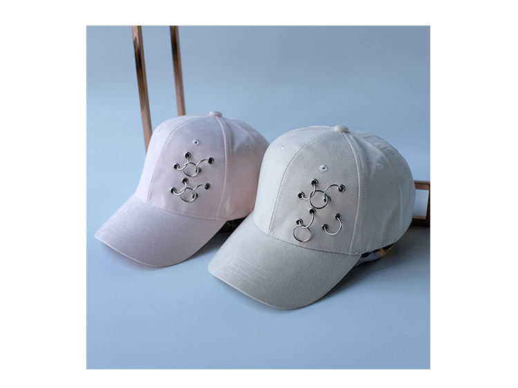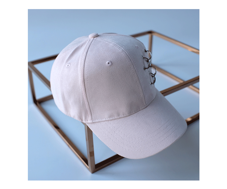 韓版嘻哈鐵環棒球帽純色麂皮絨休閑時尚鴨舌帽女春夏秋冬四季帽子1入