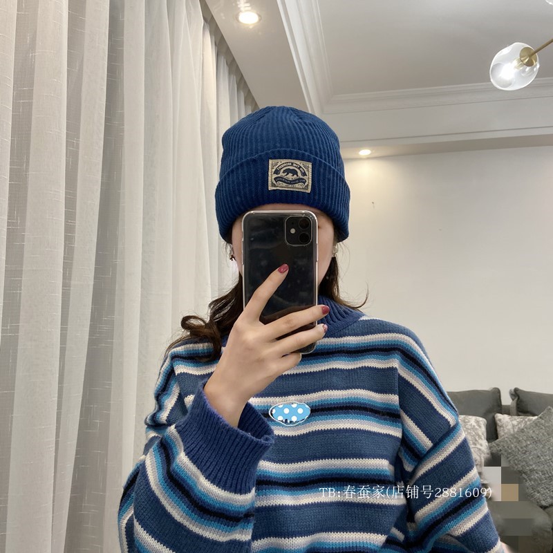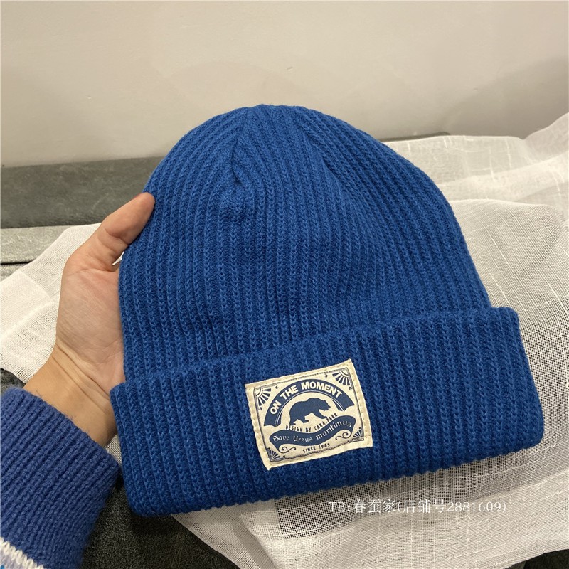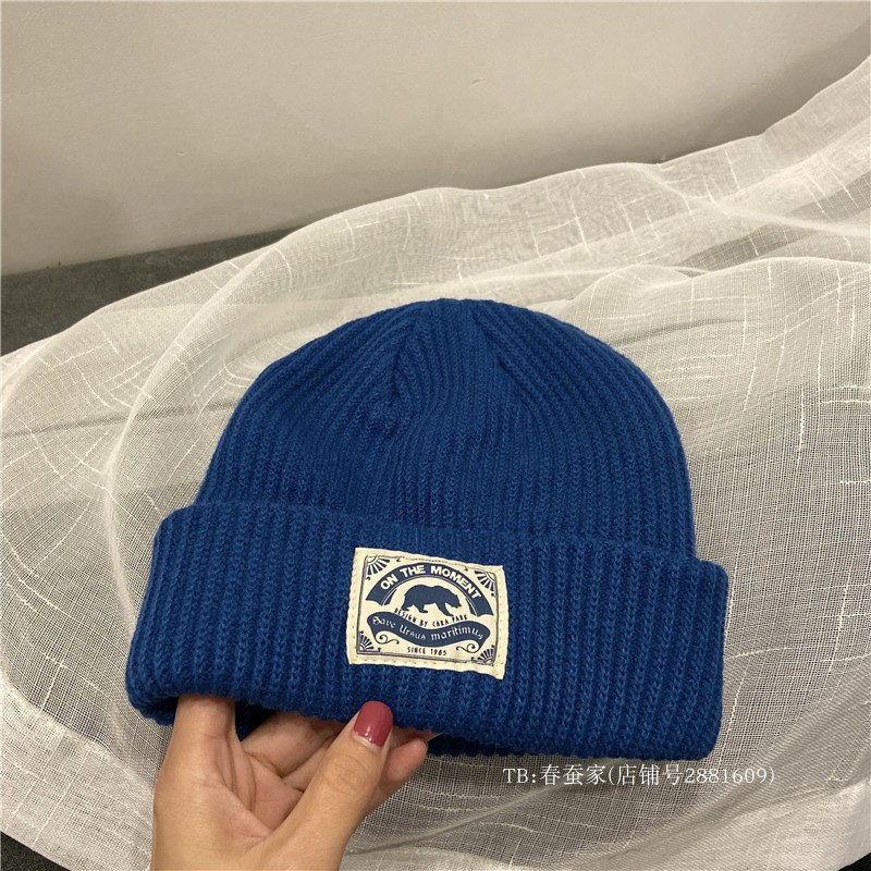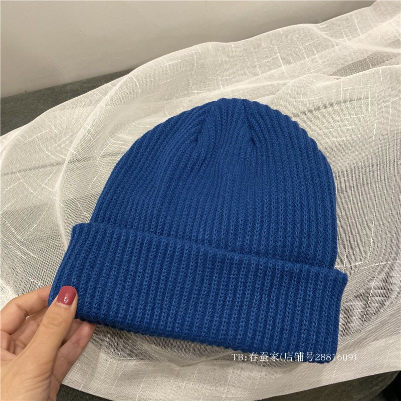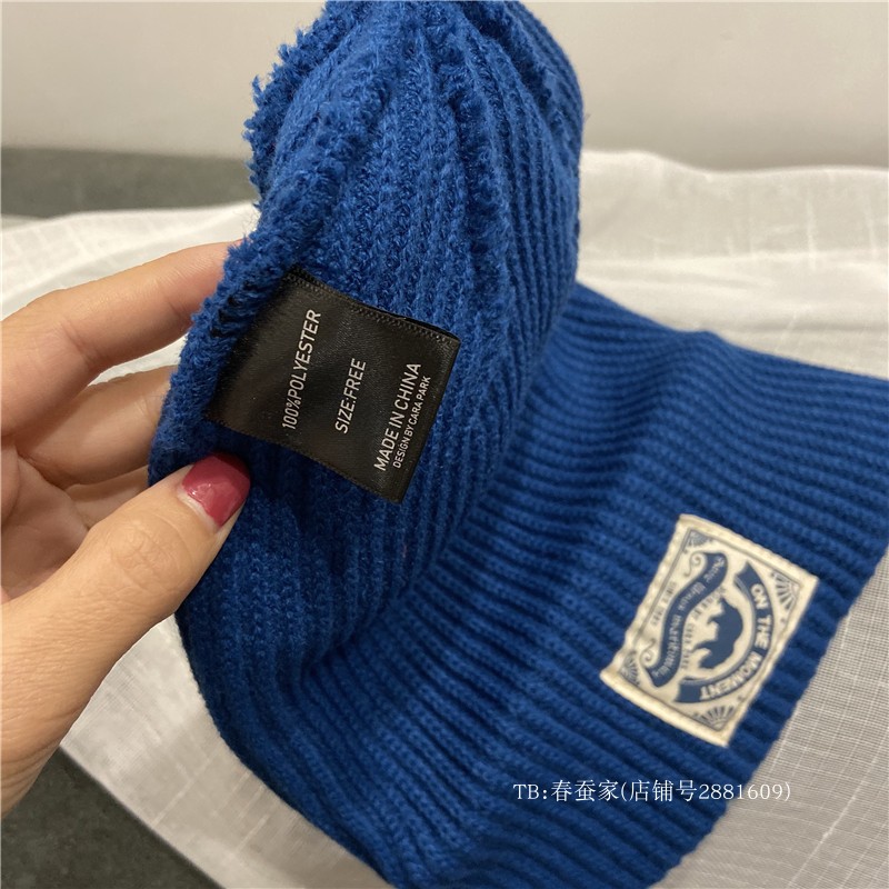 顯白寶藍色~針織帽女韓版ins日系顯臉小貼布帽子秋冬天保暖毛線帽1入