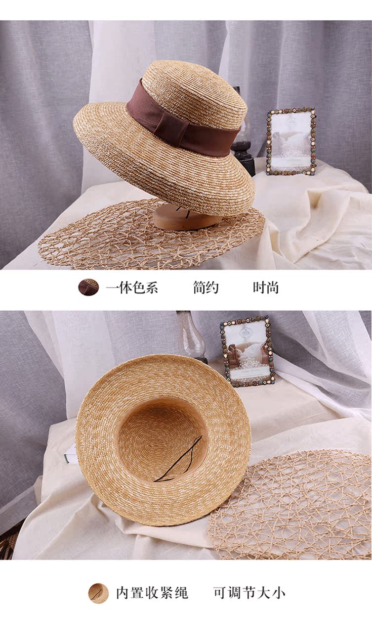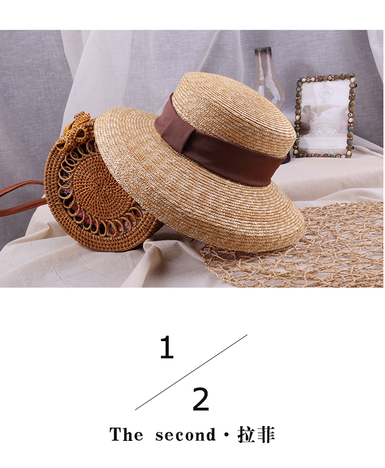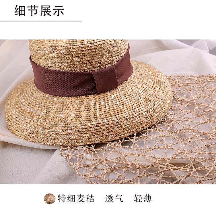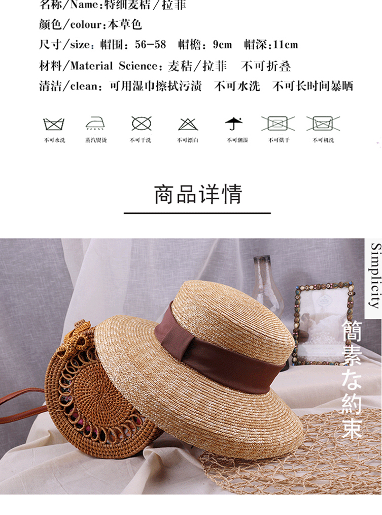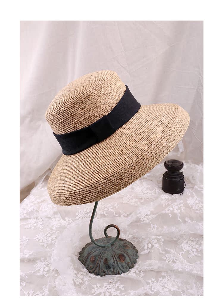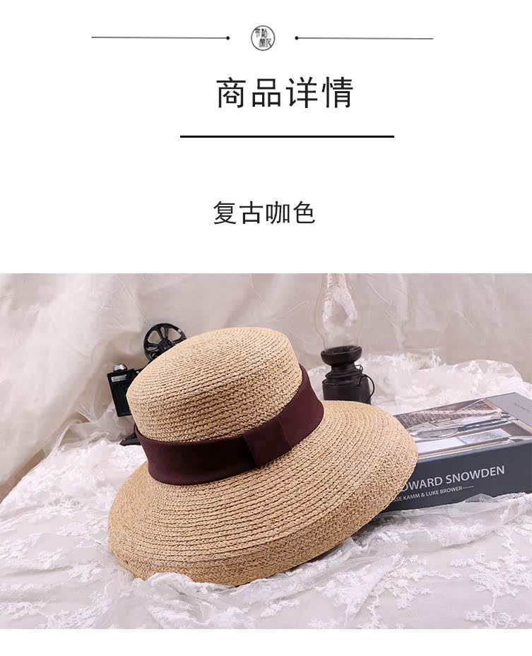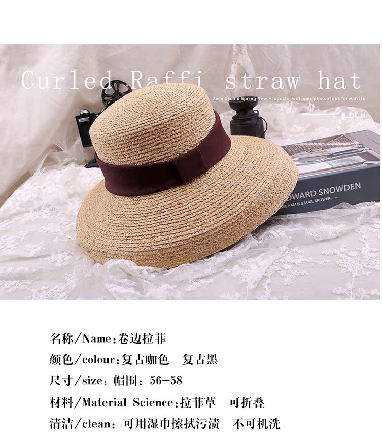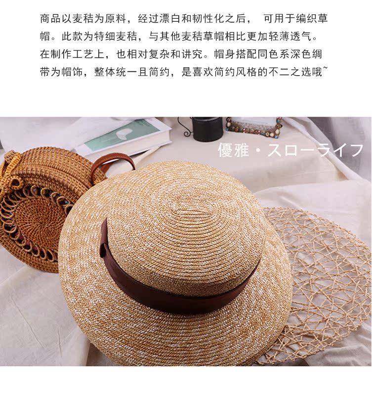 設計師輕奢日系麥秸大檐帽女士春夏沙灘旅游度假遮陽防曬拉菲草帽1入