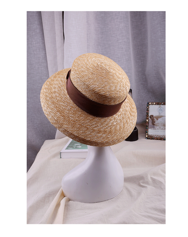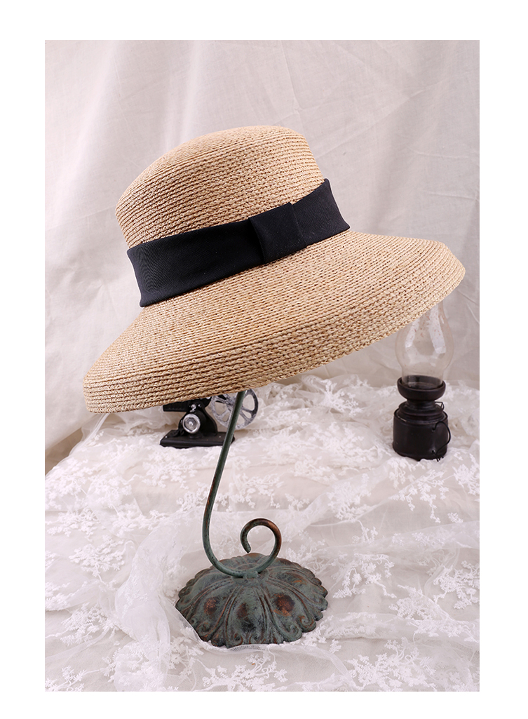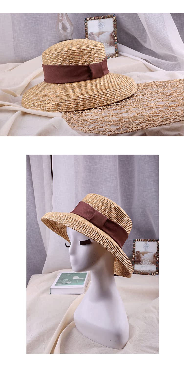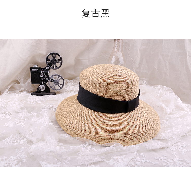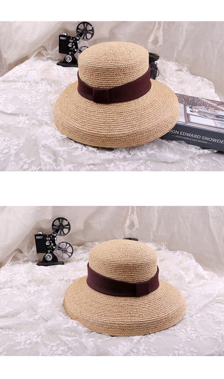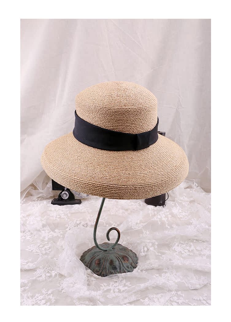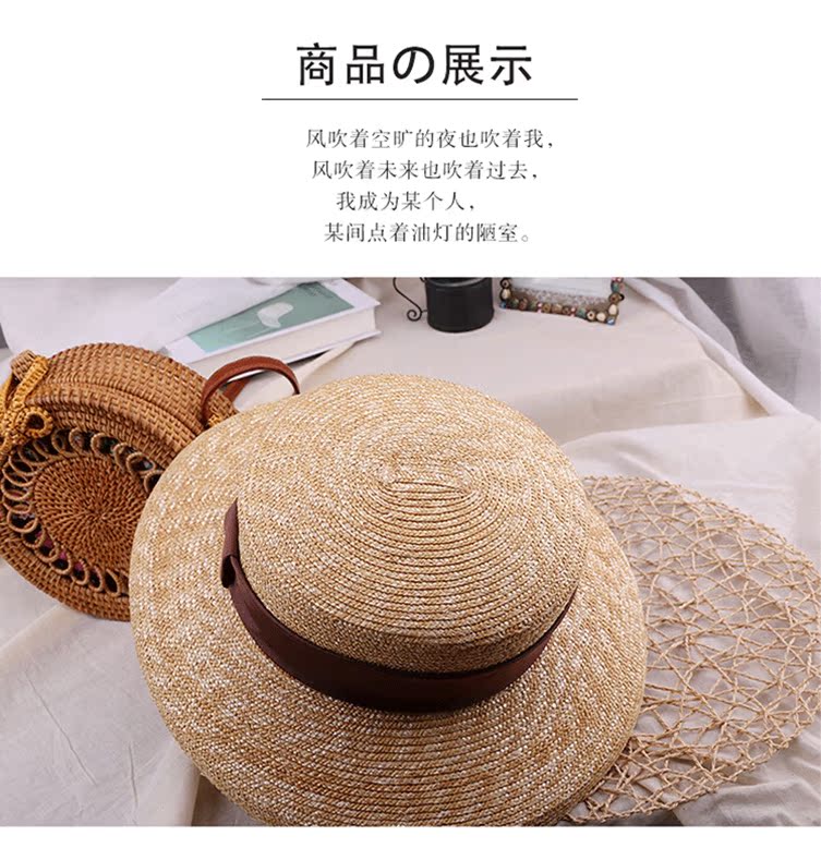 設計師輕奢日系麥秸大檐帽女士春夏沙灘旅游度假遮陽防曬拉菲草帽1入