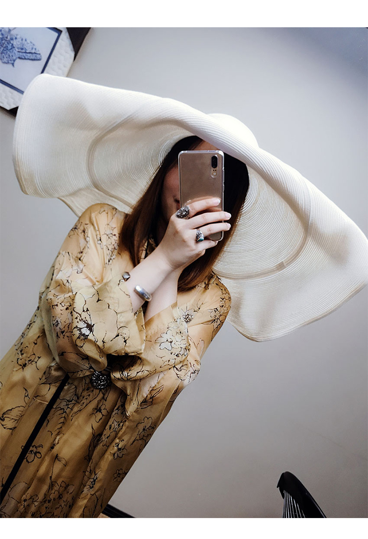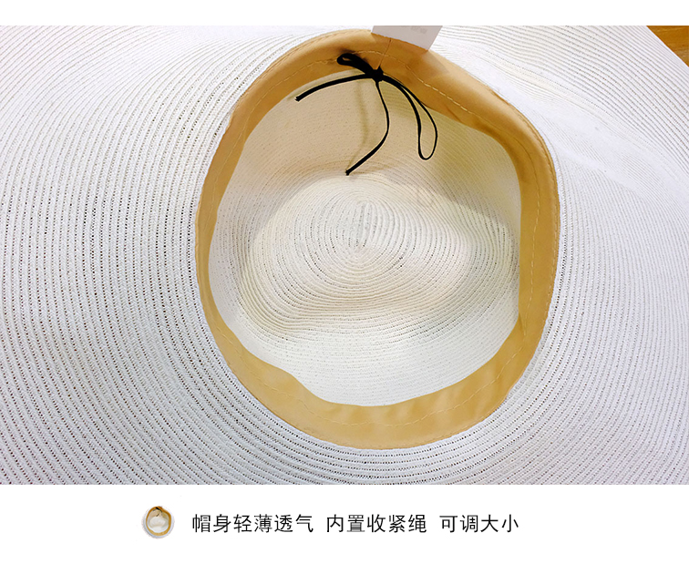 設計師款超大沿進口紙草草帽女士春夏簡約輕奢出游海邊遮陽防曬帽1入