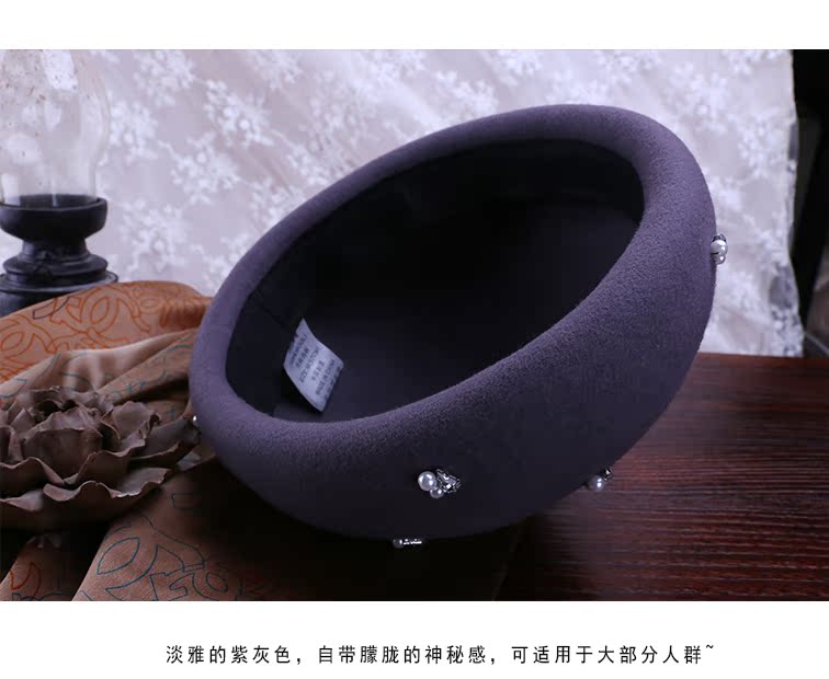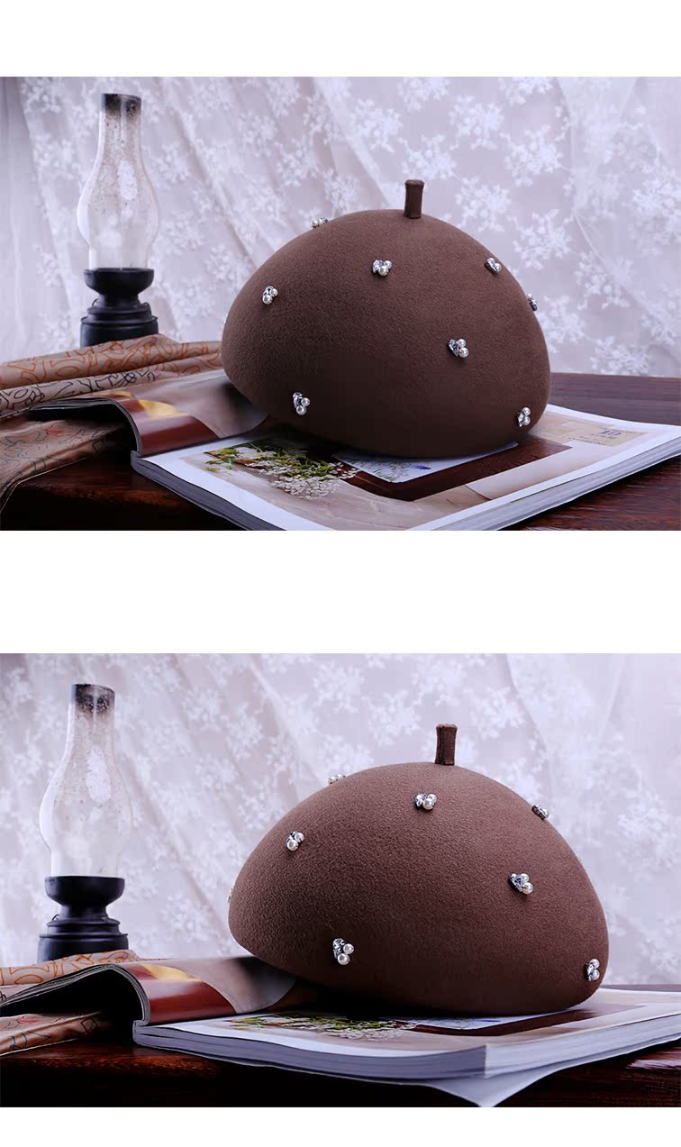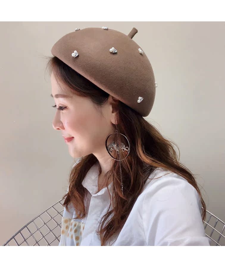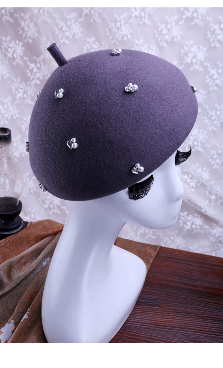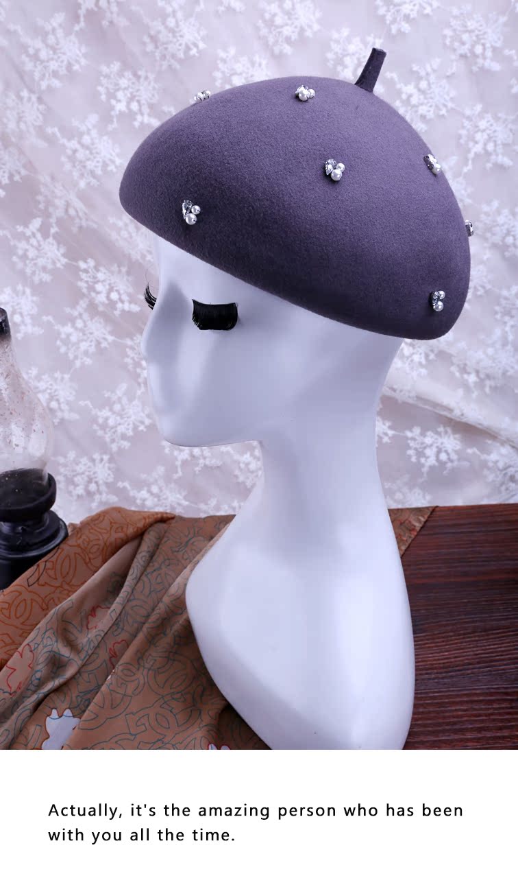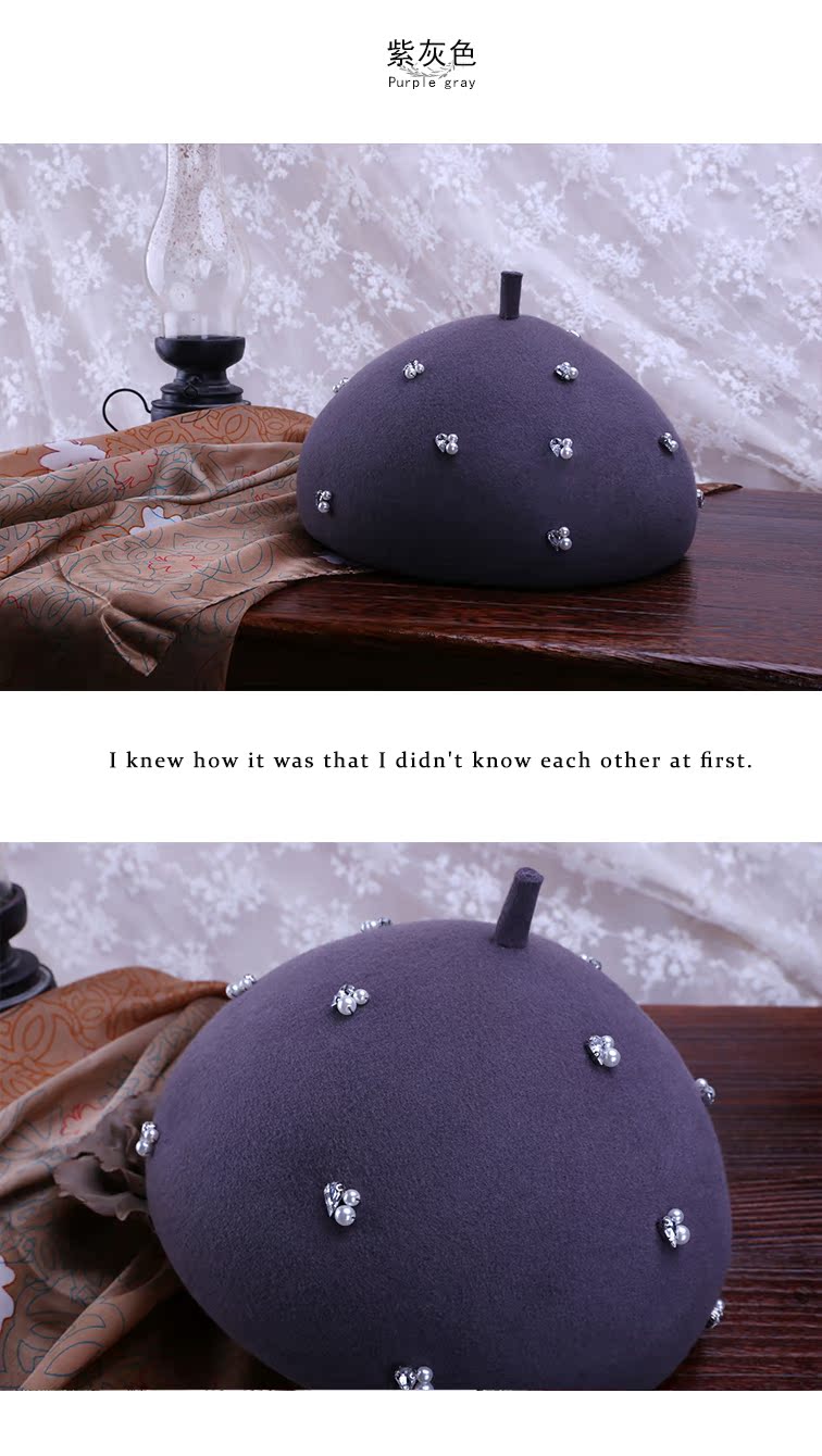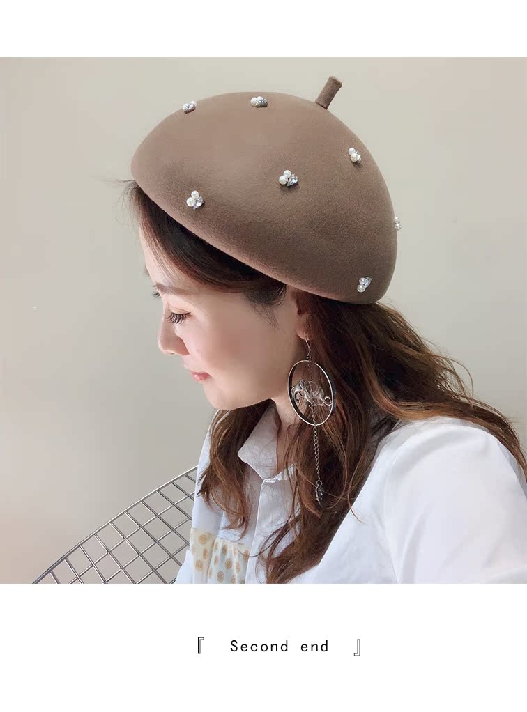 設計師款秋冬ins水鉆貝雷帽女精致清新純毛呢保暖百搭款蓓蕾帽1入