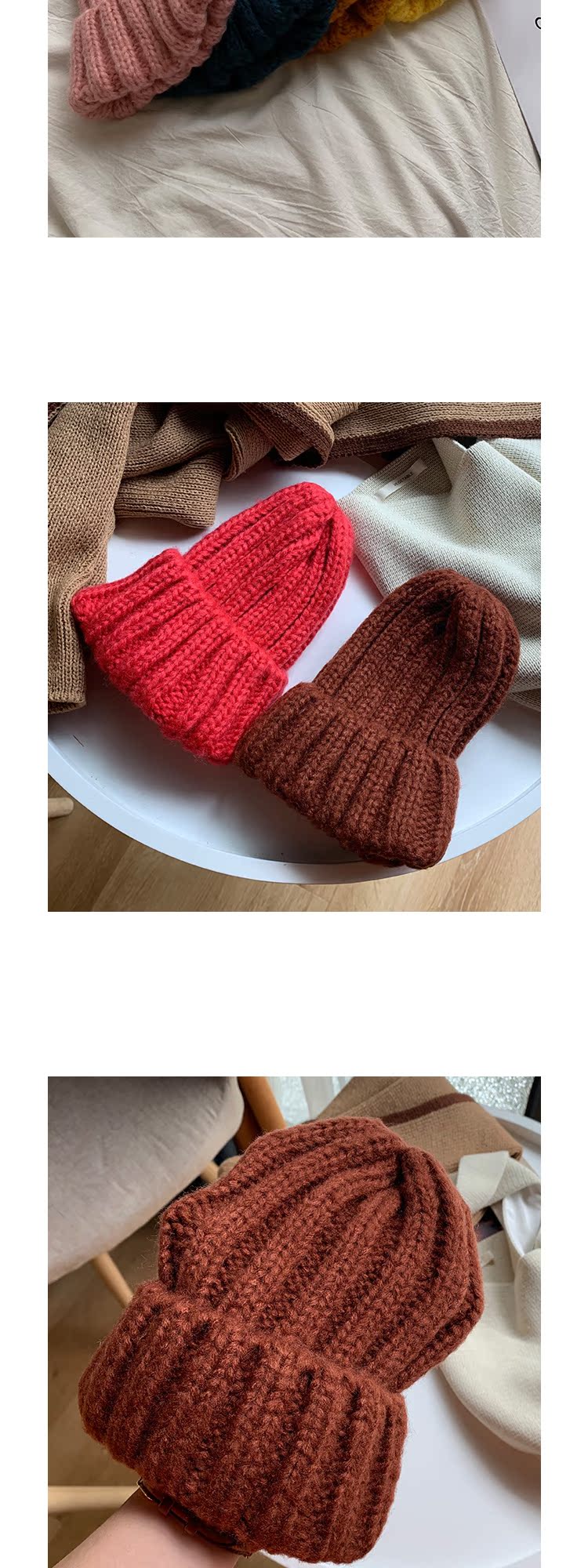 重磅推薦~保暖閨蜜帽粗線針織毛線帽子女秋冬厚實韓版百搭冷帽潮1入