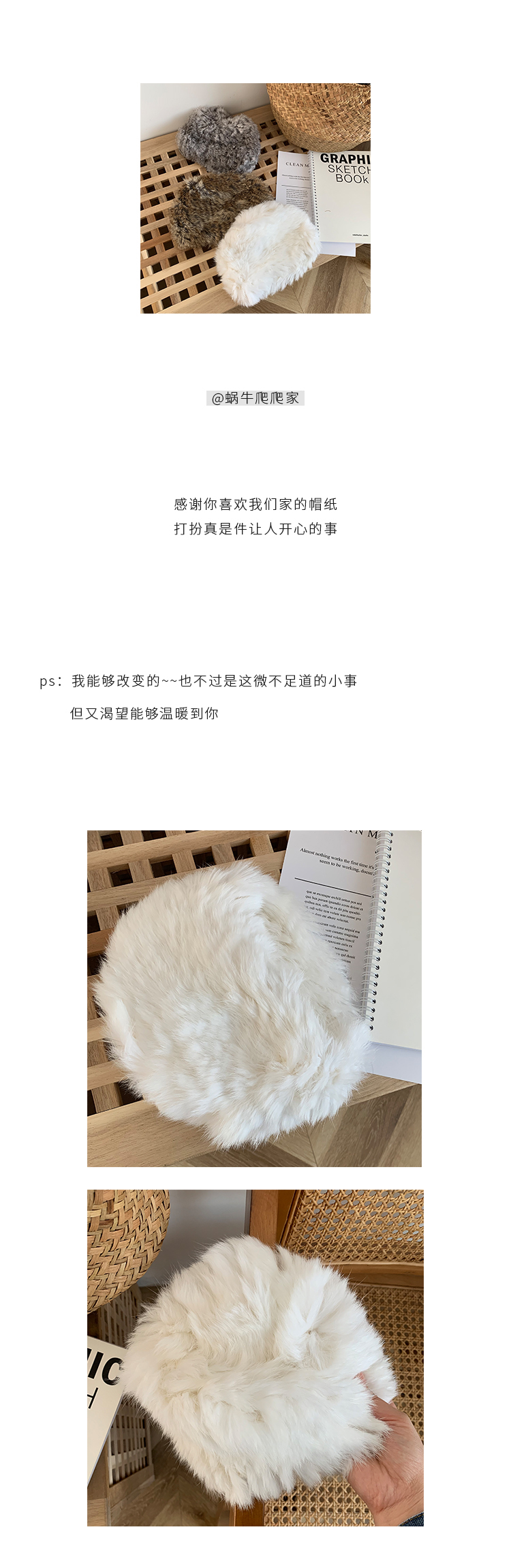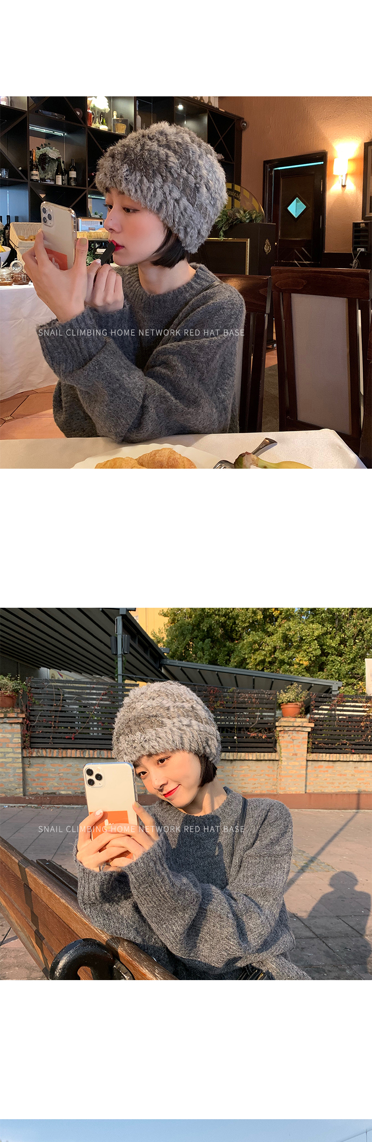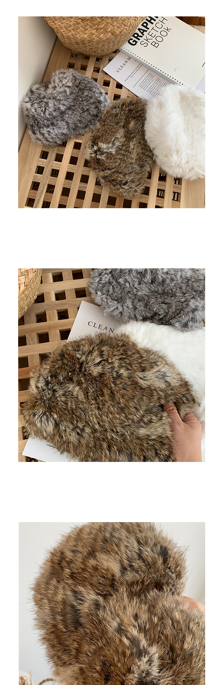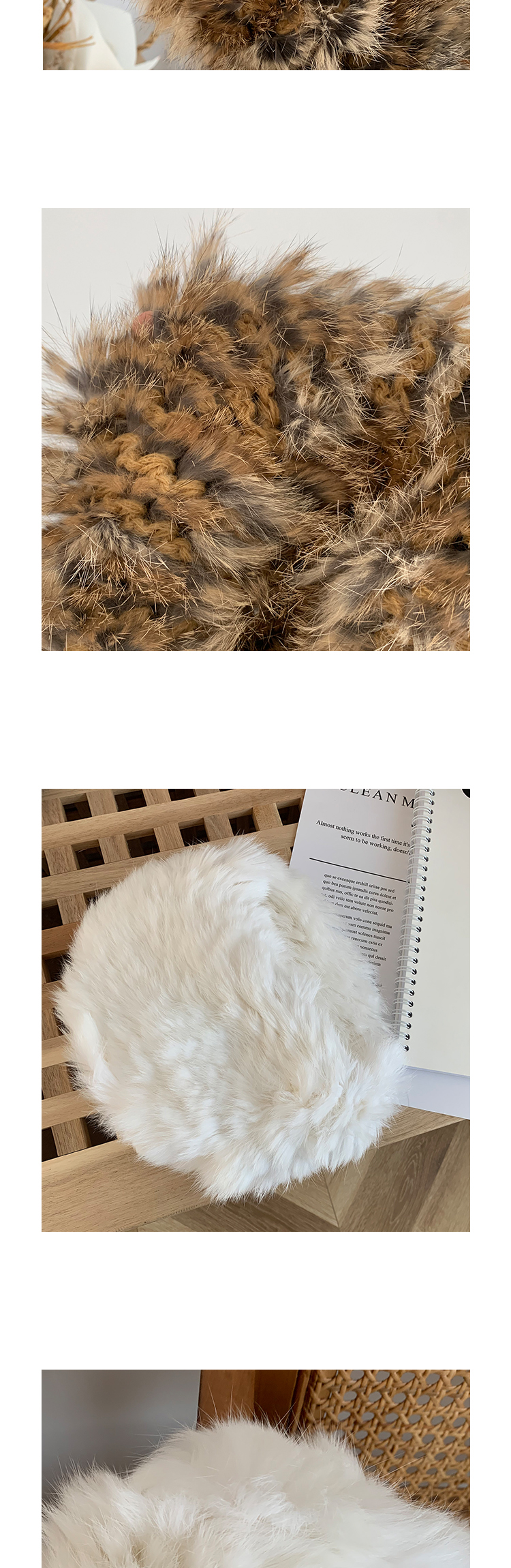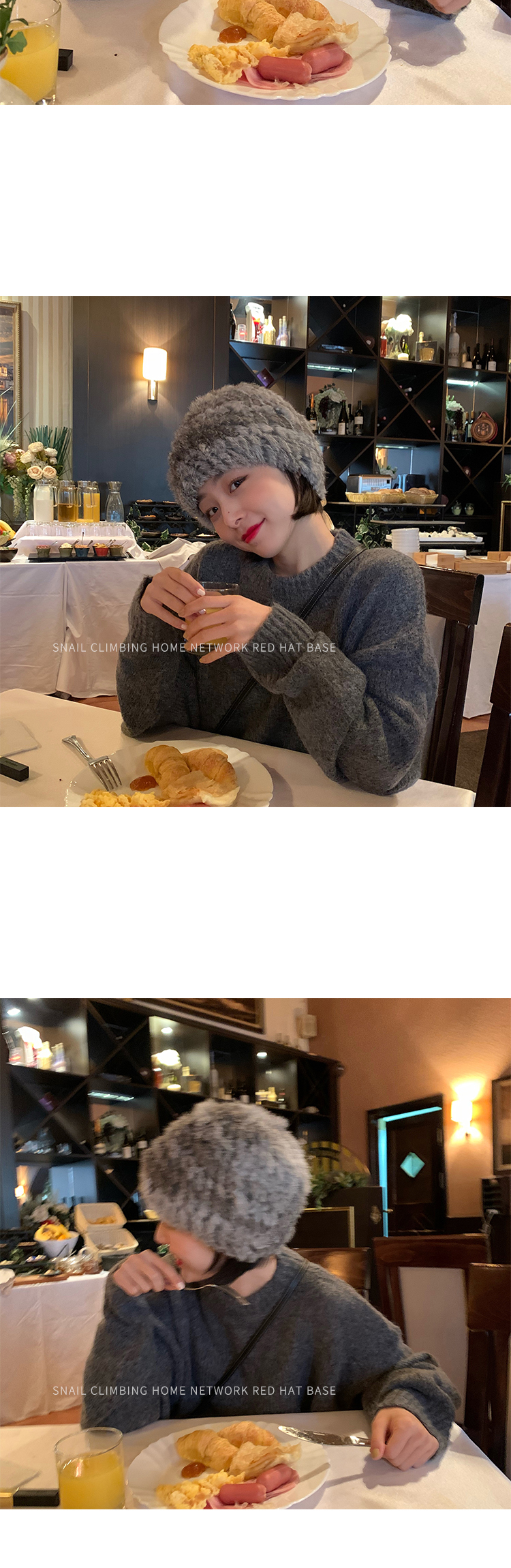 重工品質款!純手工編織真兔毛皮草帽秋冬保暖網紅同款純色針織帽1入