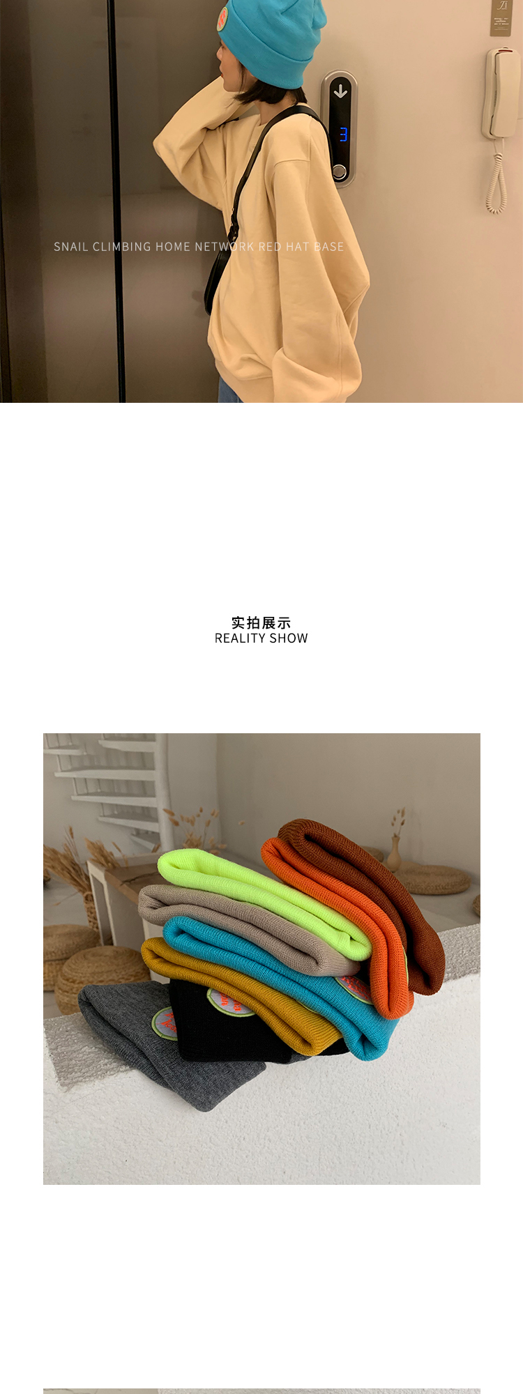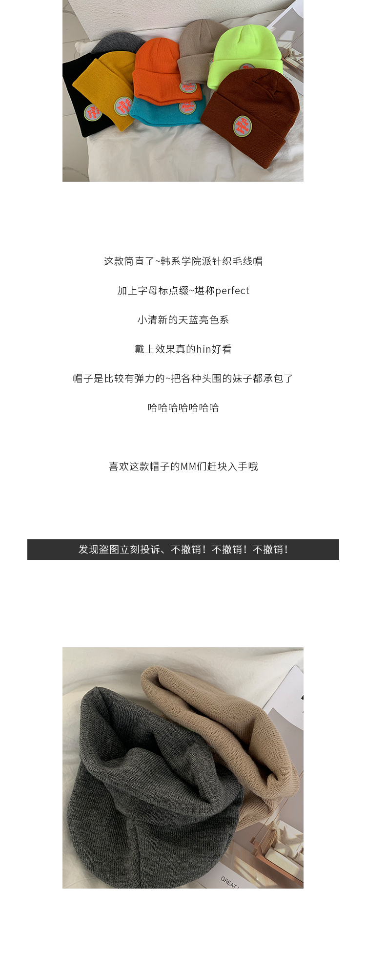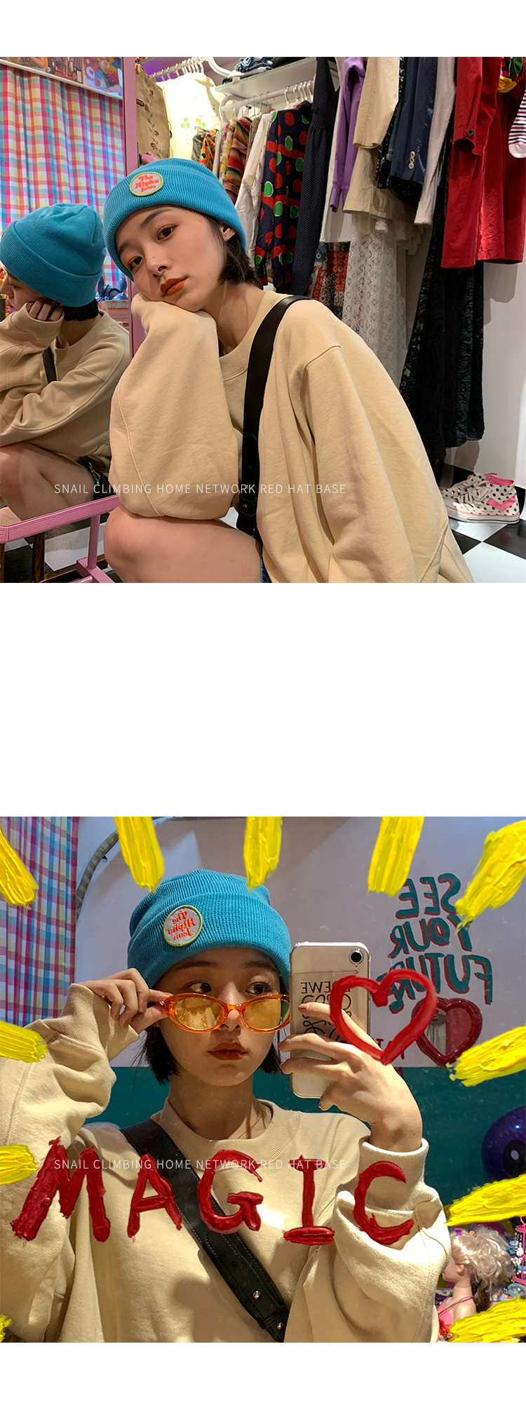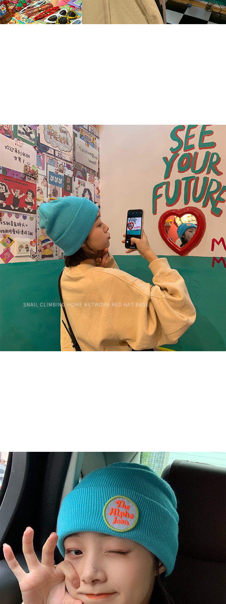 蝸牛爬爬家/學院風字母標針織毛線帽女秋冬韓版情侶保暖瓜皮冷帽1入