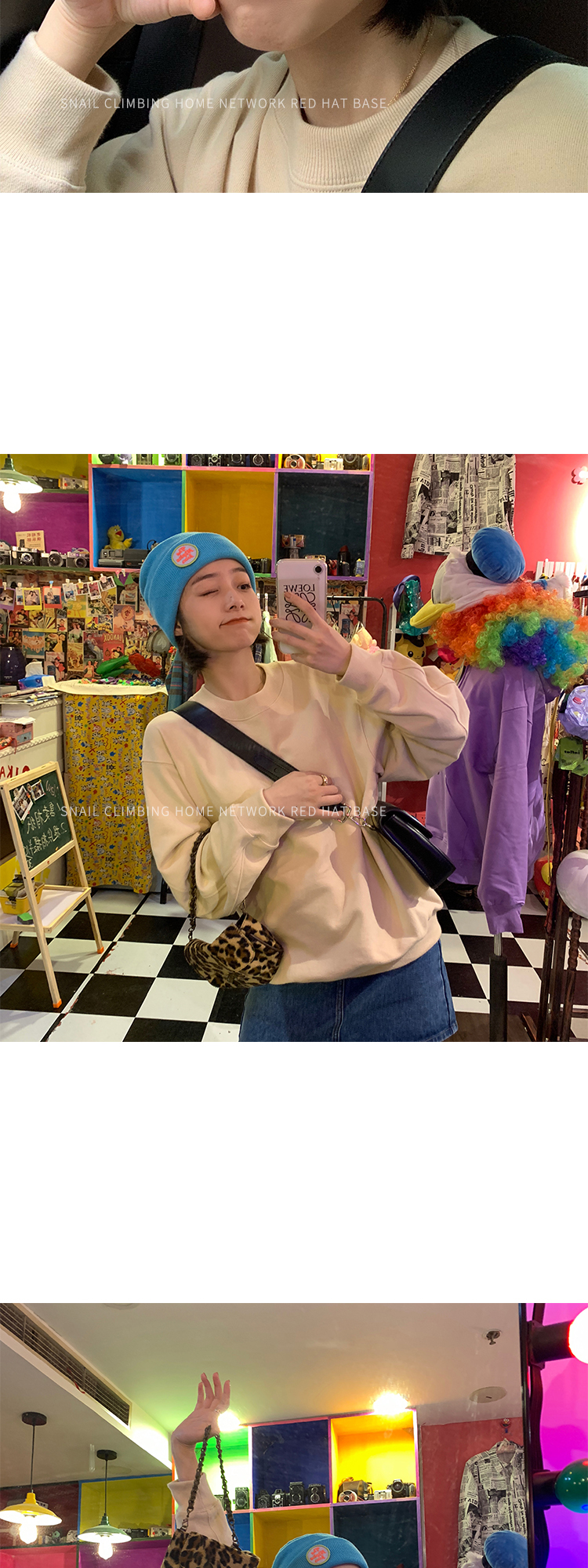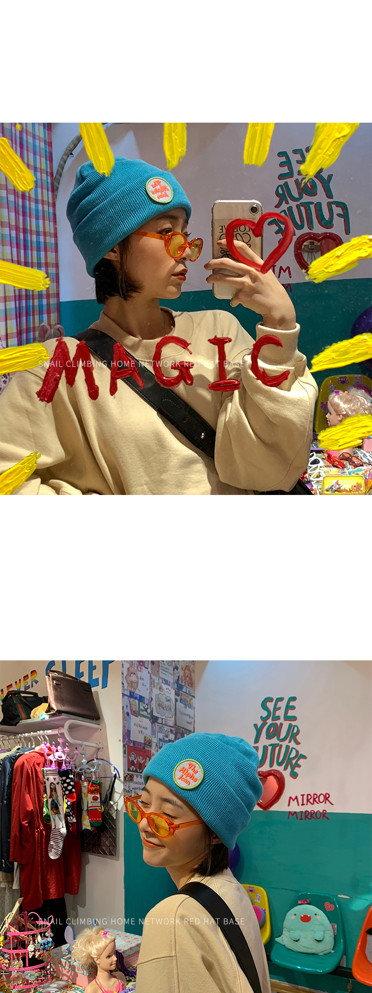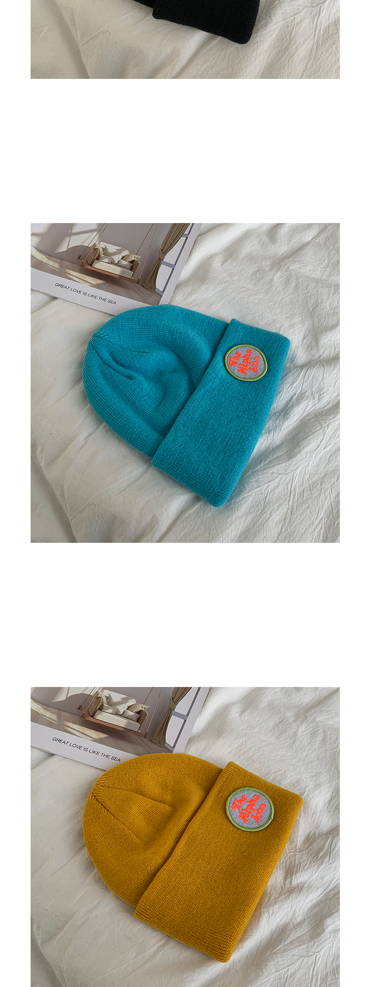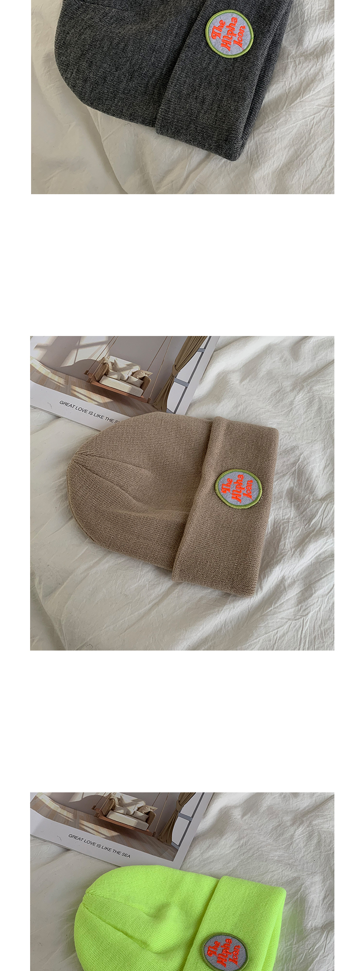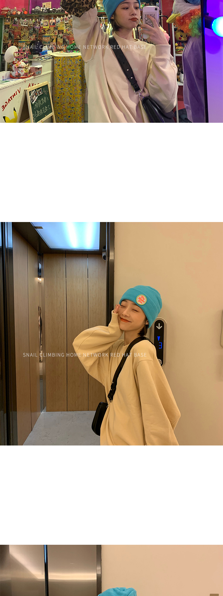 蝸牛爬爬家/學院風字母標針織毛線帽女秋冬韓版情侶保暖瓜皮冷帽1入