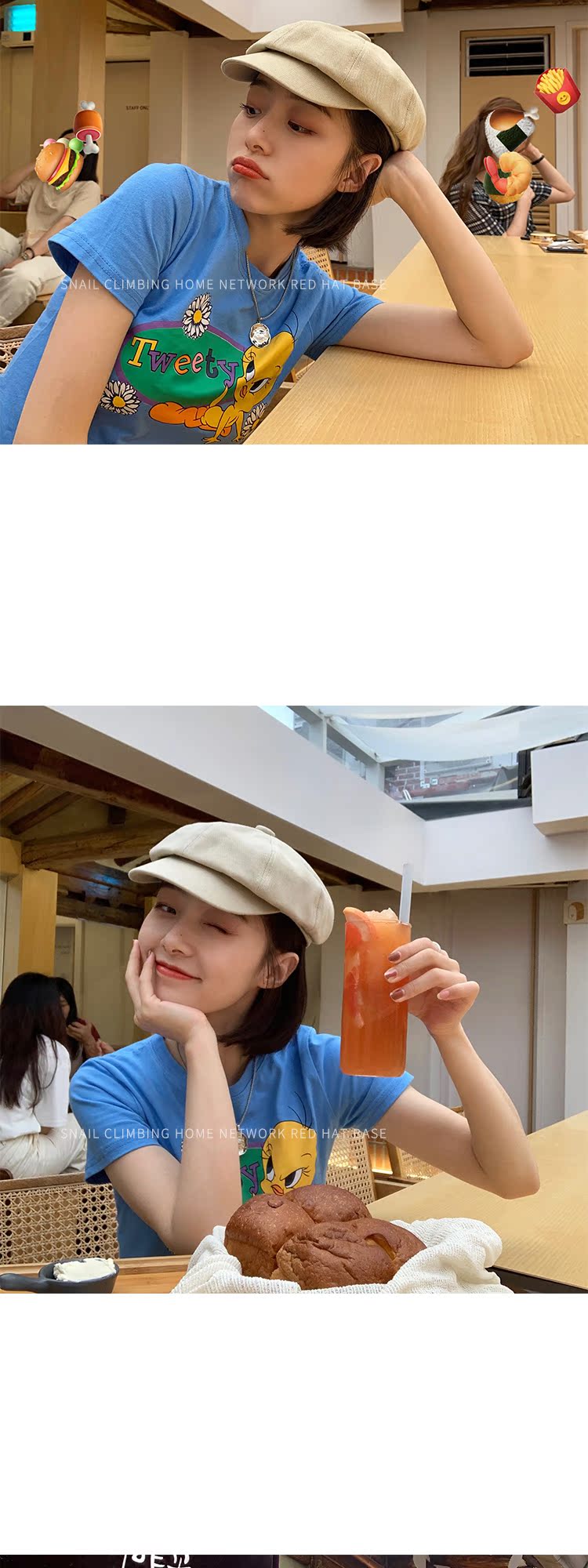 蝸牛爬爬家韓版百搭貝雷帽女文藝日系畫家帽八角帽春秋短檐鴨舌帽1入