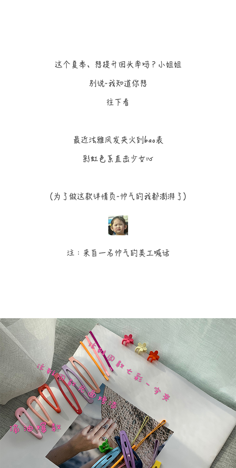 蝸牛爬爬家網紅泫雅同款糖果色發夾劉海側邊bb夾一字夾小發卡夾子1入