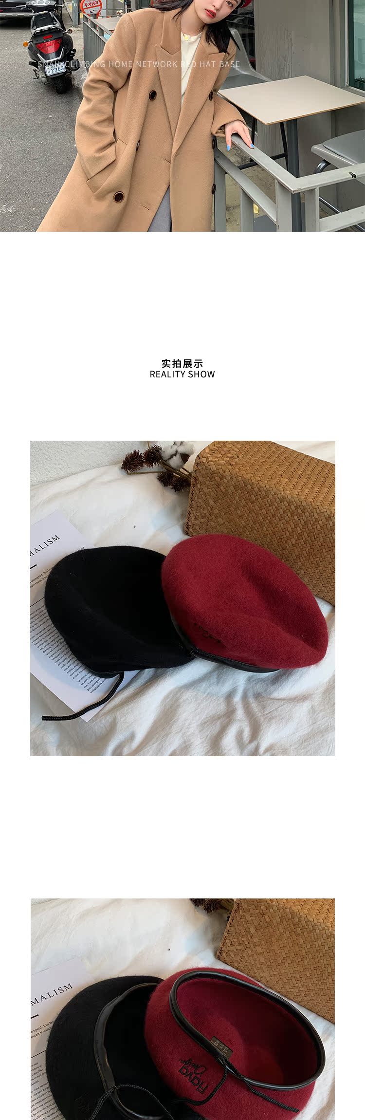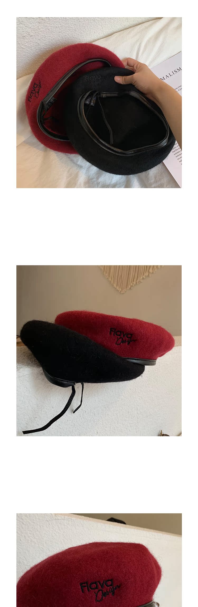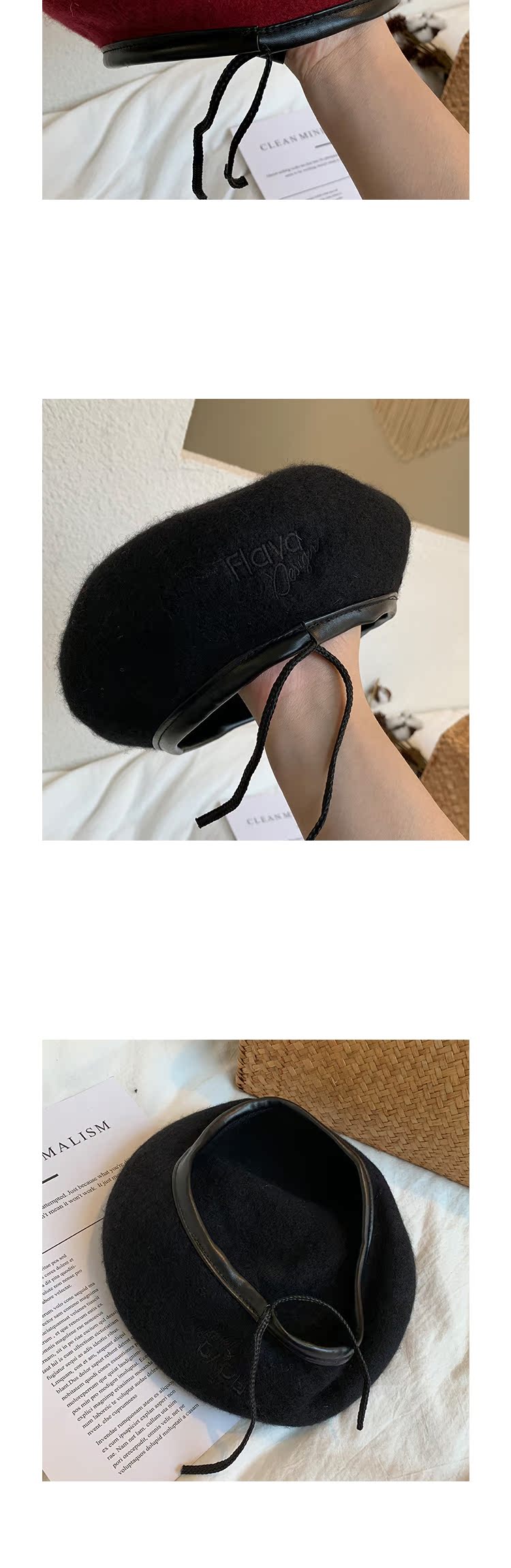 蝸牛爬爬家/羊毛呢貝雷帽子字母刺繡港風少女秋冬百搭文藝畫家帽1入
