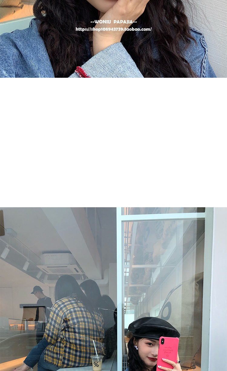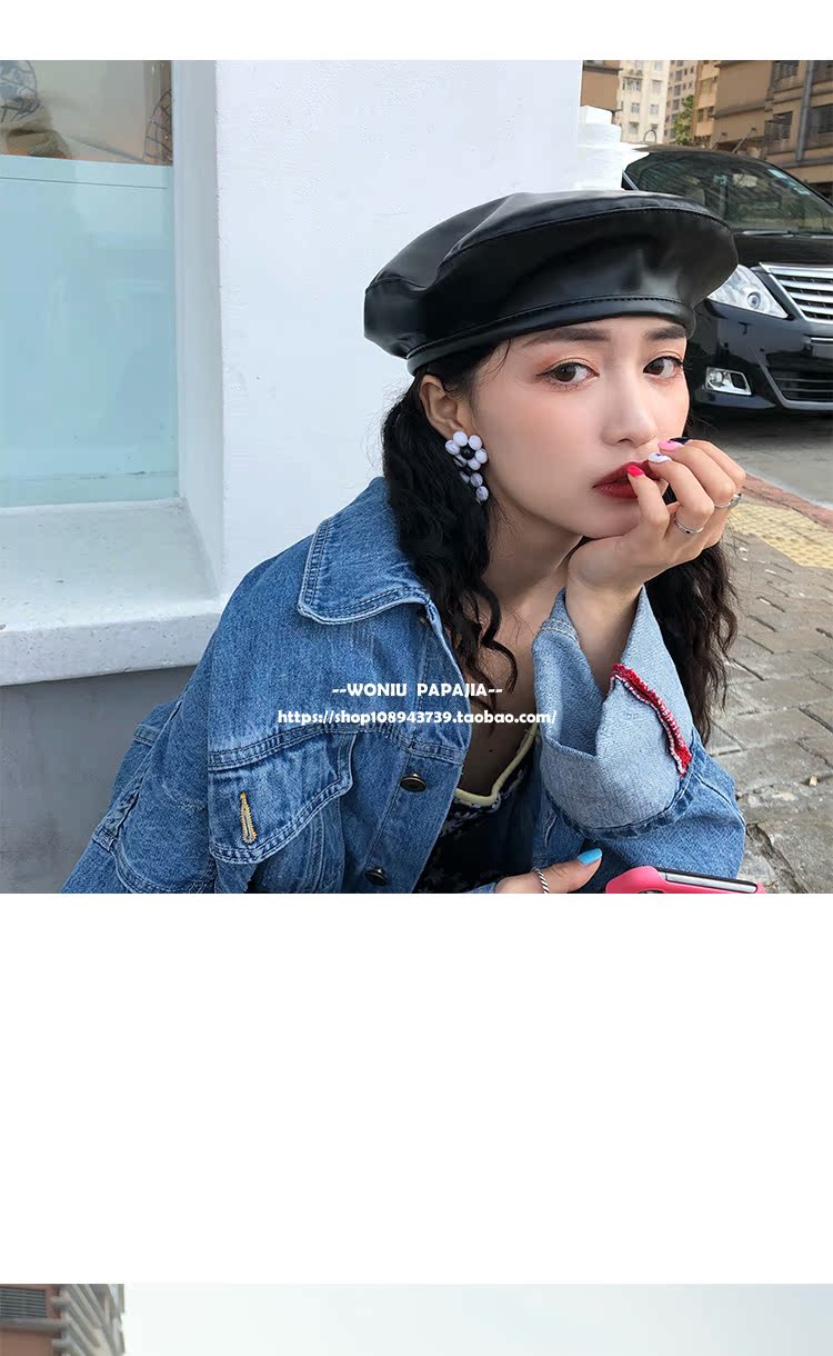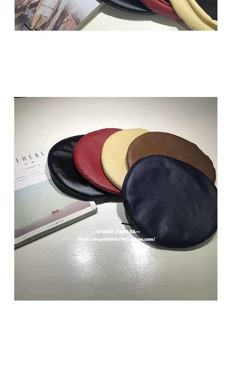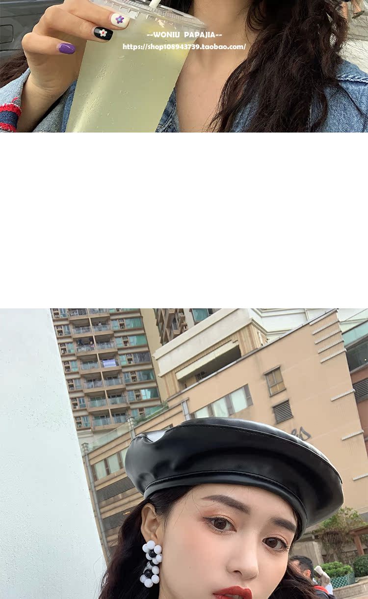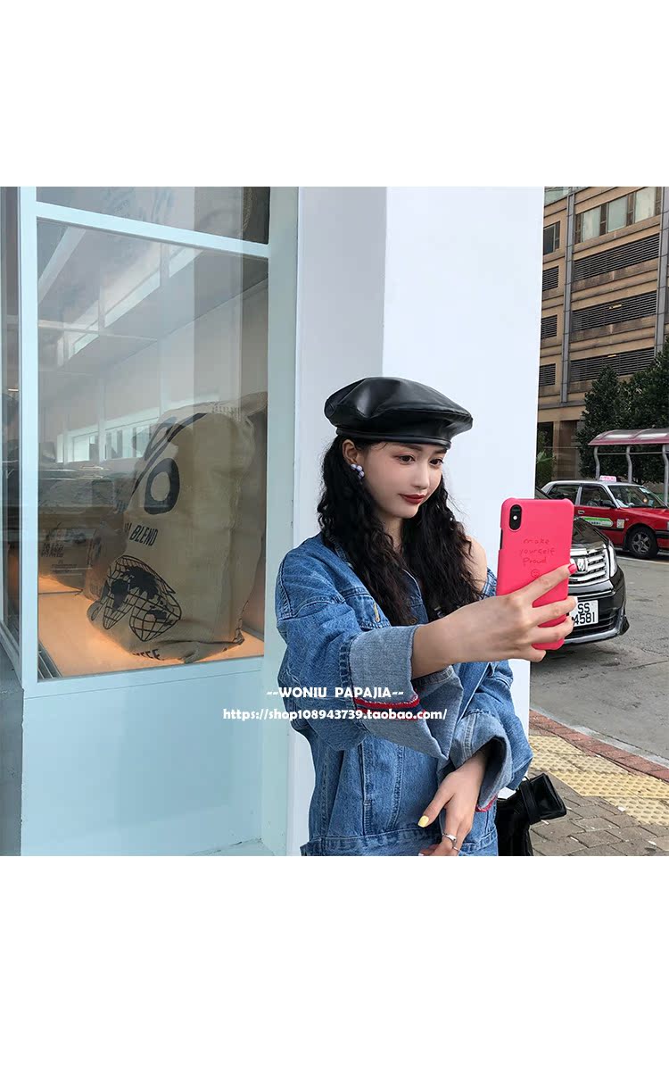 貝雷帽女英倫復古韓版百搭春秋天PU皮質畫家帽女生街頭黑色小皮帽1入