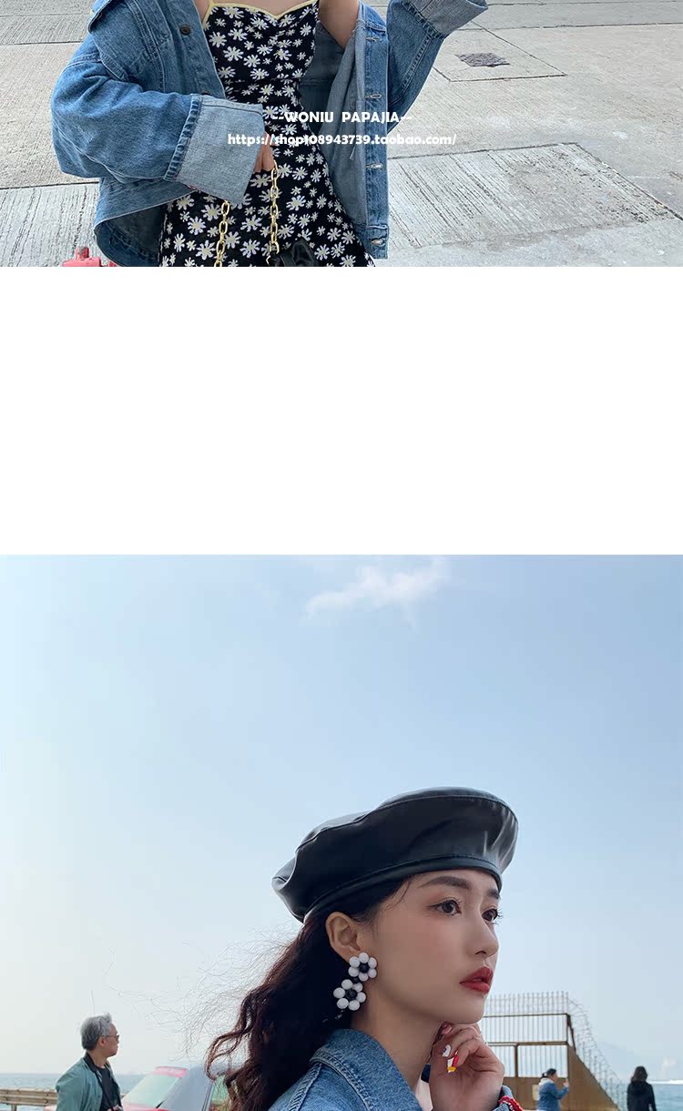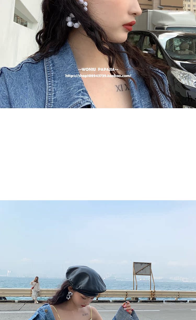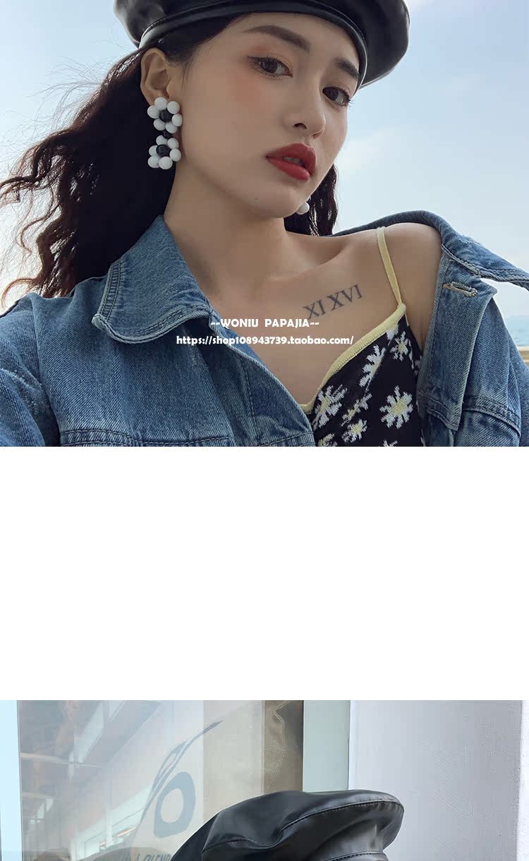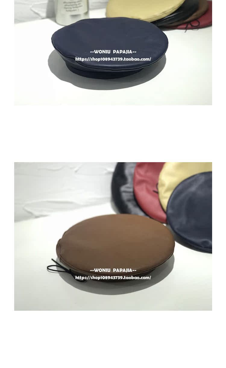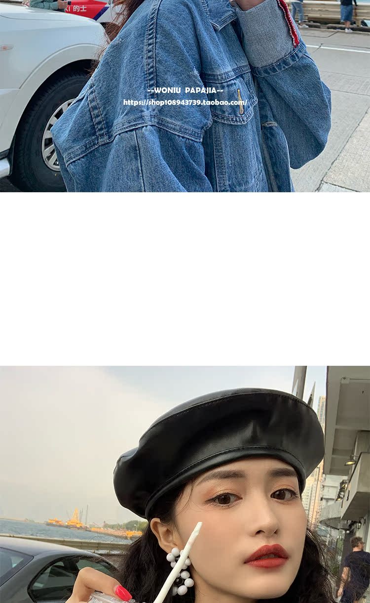 貝雷帽女英倫復古韓版百搭春秋天PU皮質畫家帽女生街頭黑色小皮帽1入