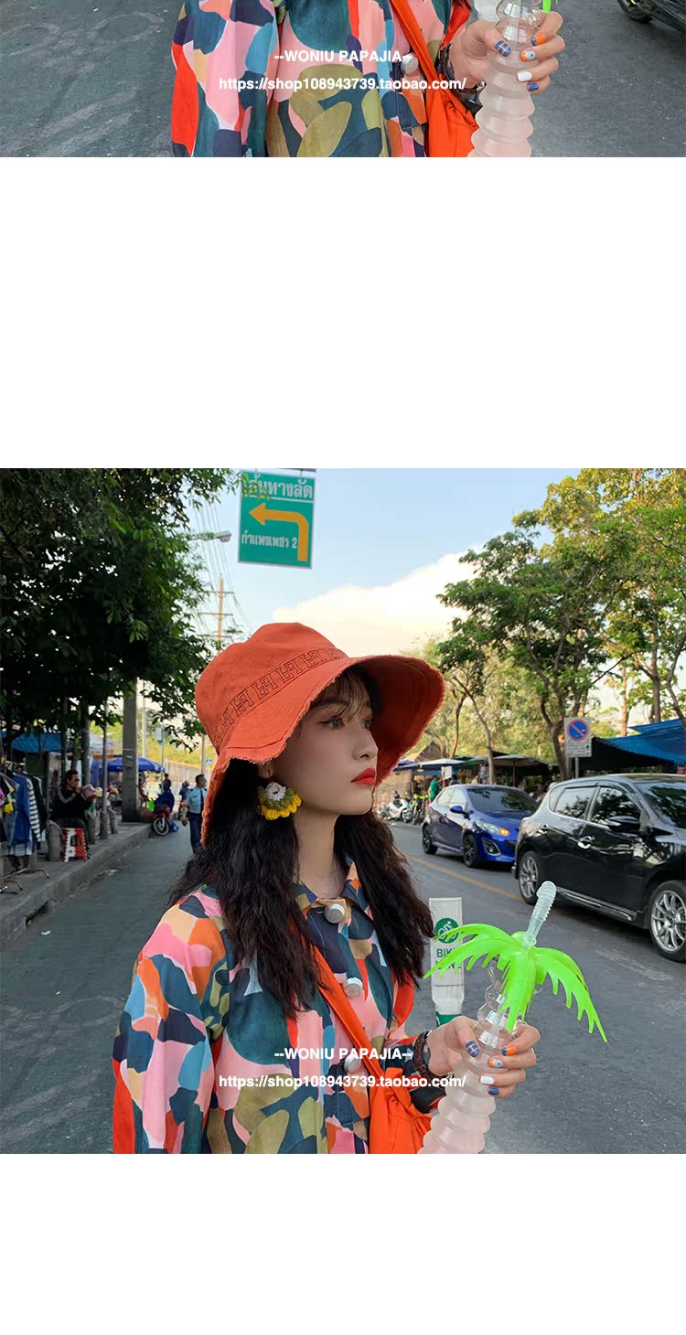 蝸牛爬爬家韓版棉布漁夫帽女夏季日系休閑簡約出游遮陽可折疊盆帽1入