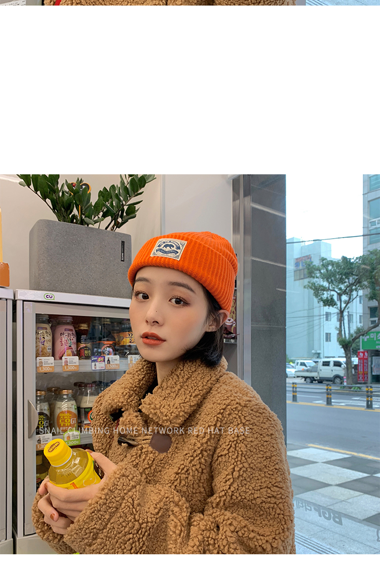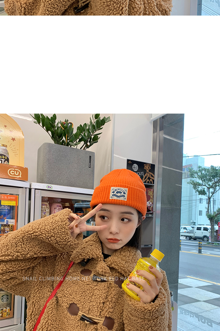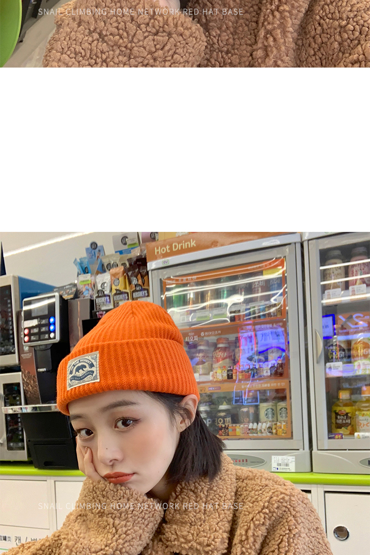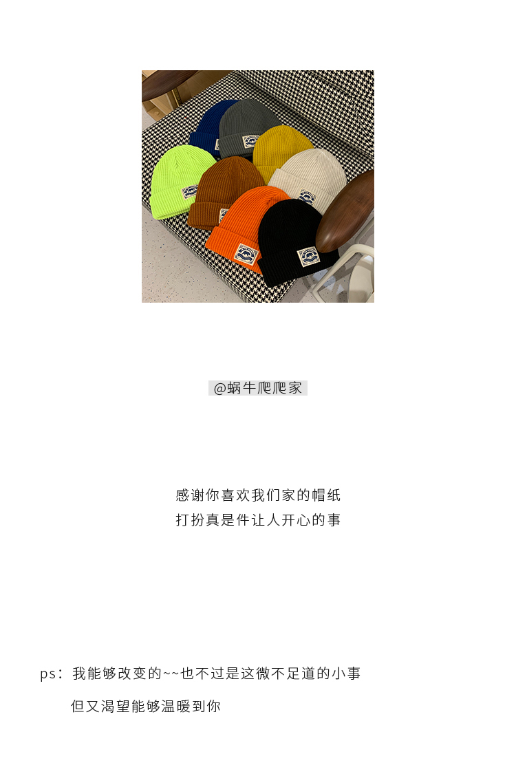 蝸牛爬爬家/日系卡通貼布毛線帽子女秋冬韓版潮保暖針織冷帽情侶1入