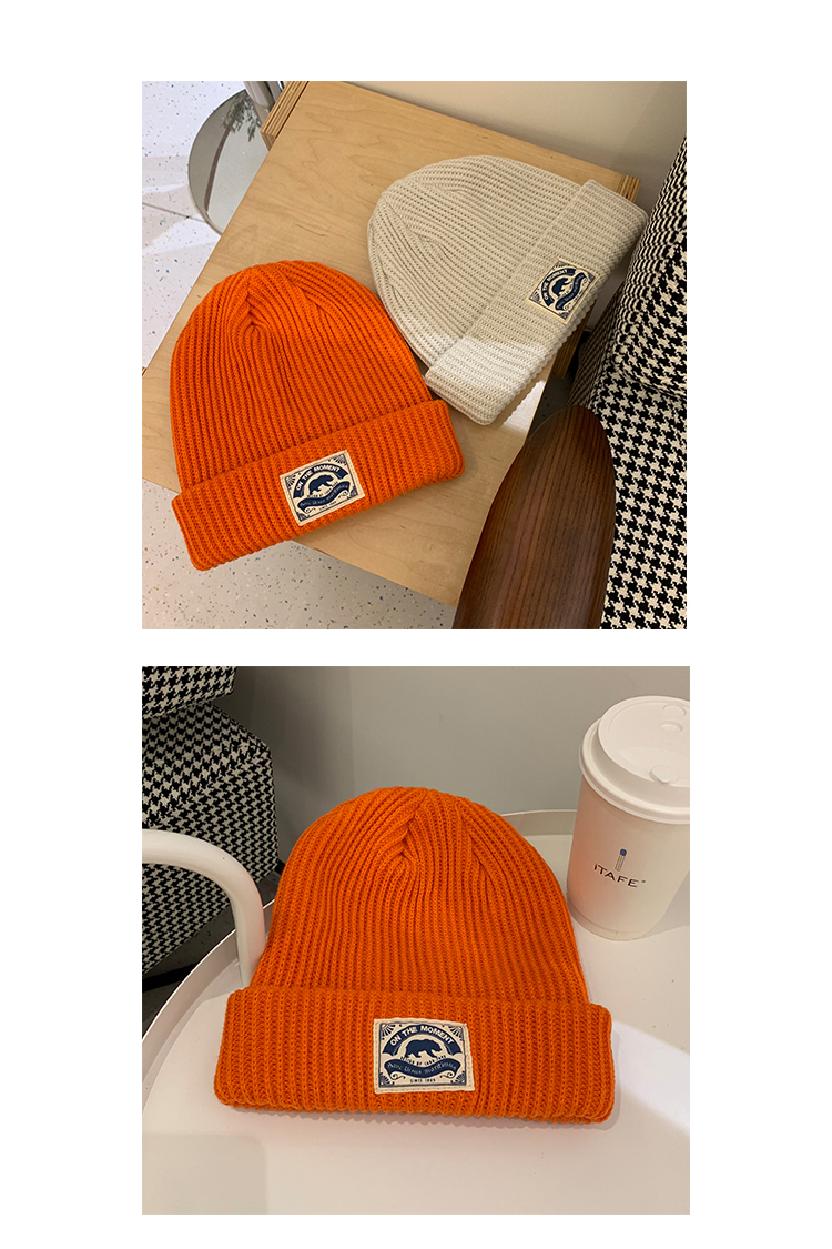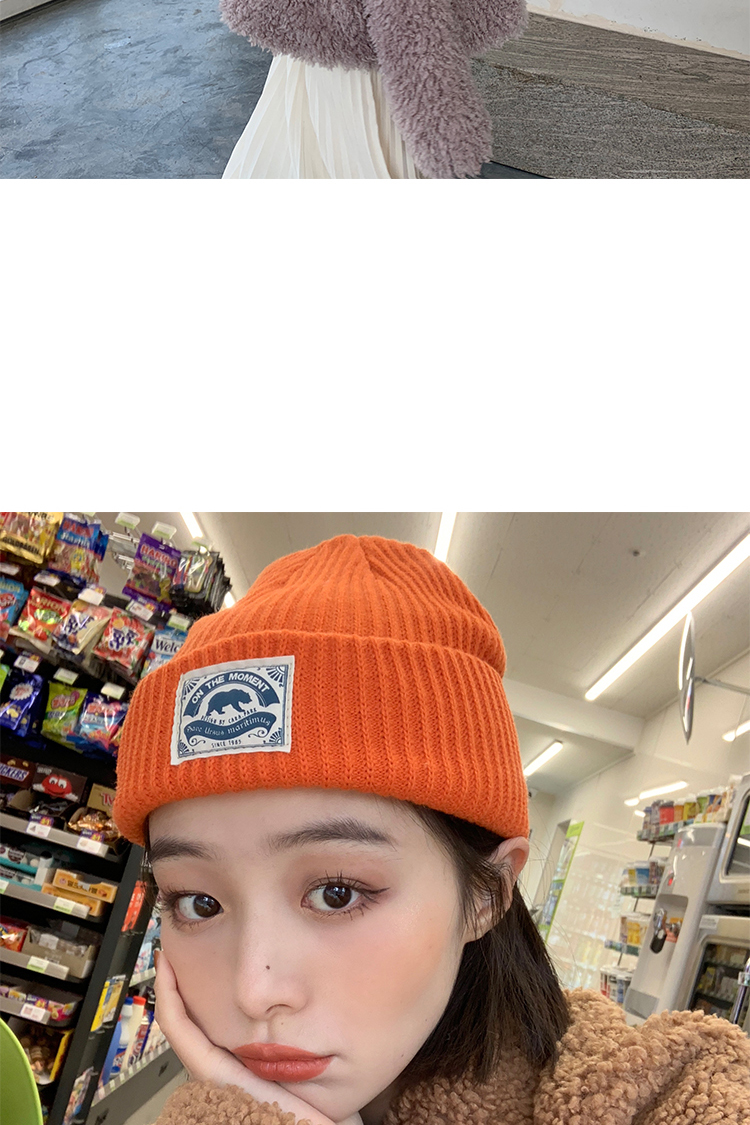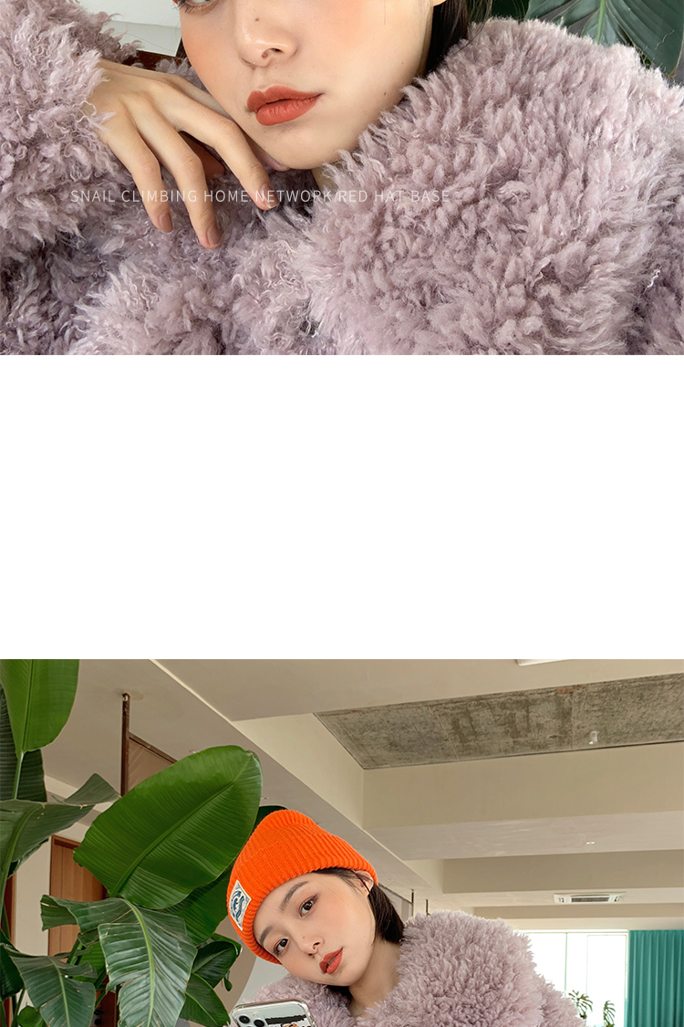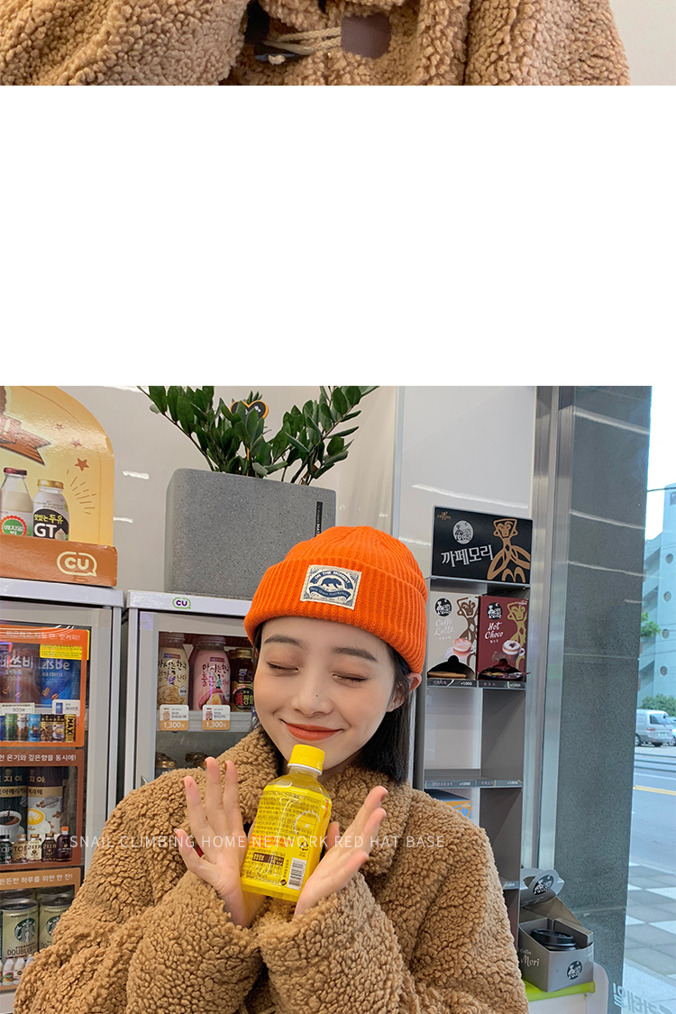 蝸牛爬爬家/日系卡通貼布毛線帽子女秋冬韓版潮保暖針織冷帽情侶1入