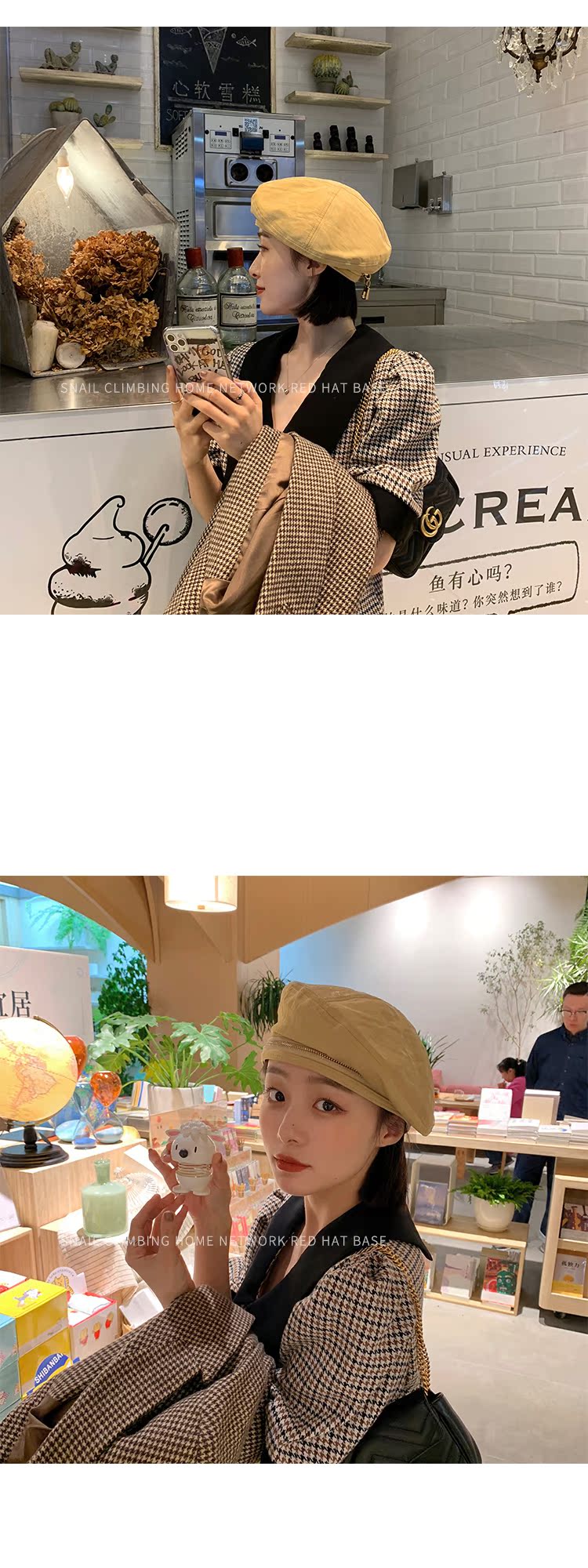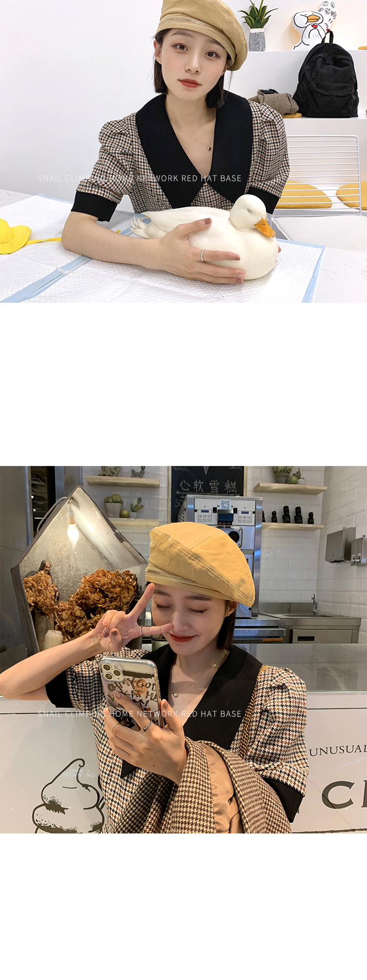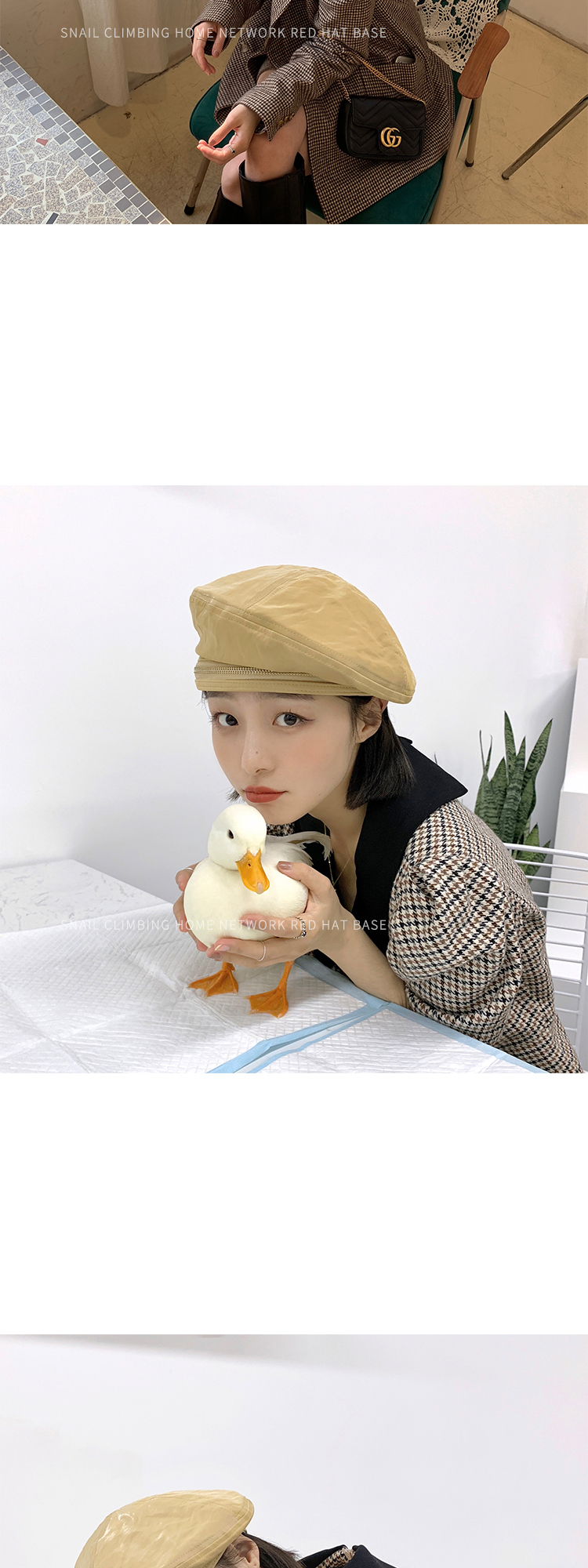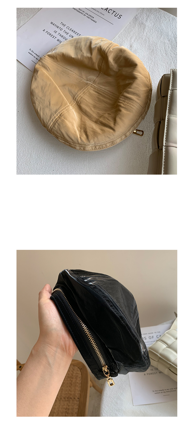 貝雷帽女英倫復古春秋天pu皮質爆款畫家帽子春季亮色街頭黑色皮帽1入