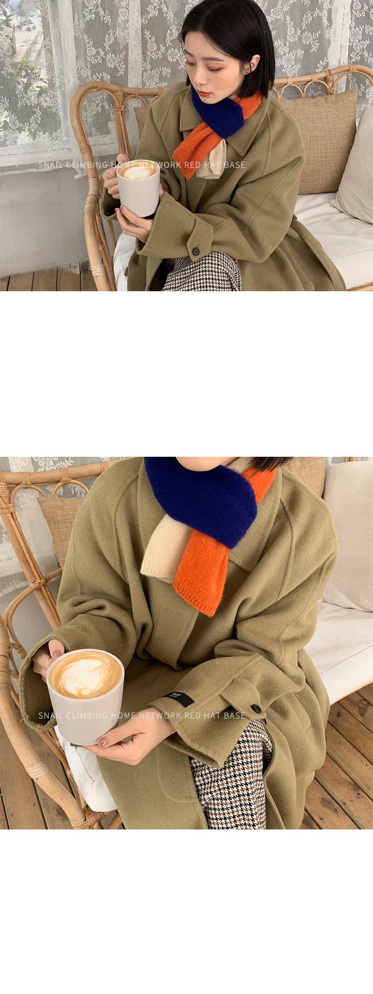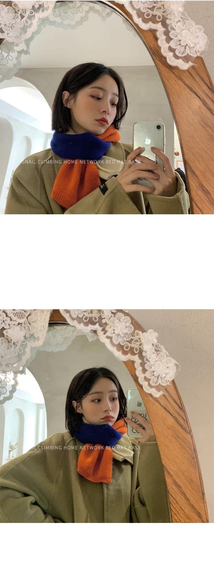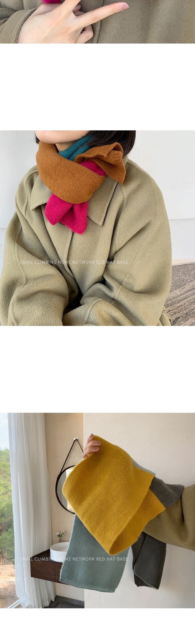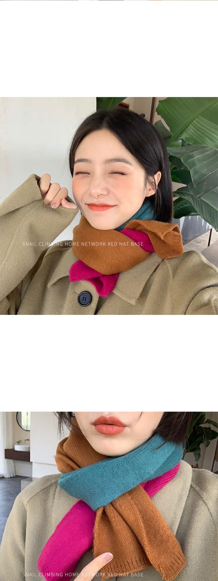 蝸牛爬爬家/ins學院風小圍巾女秋冬日系撞色短款針織學生保暖圍脖1入