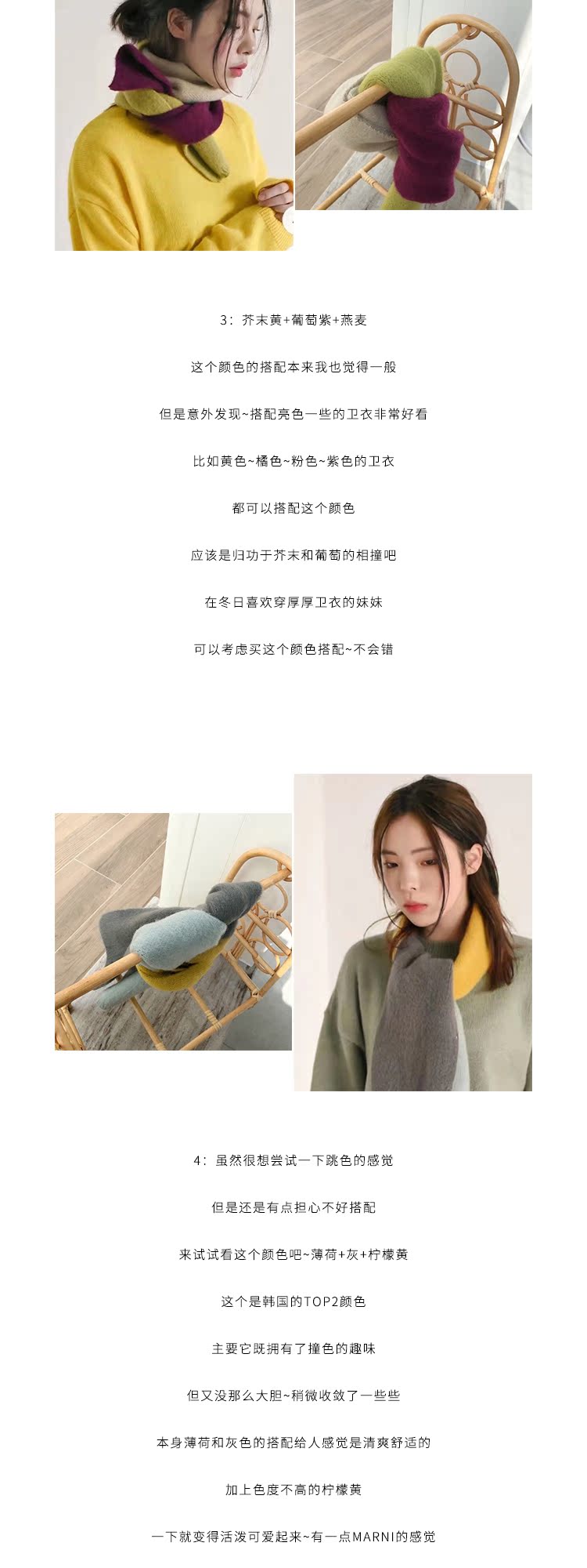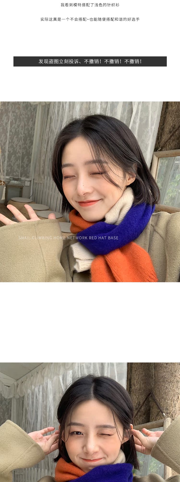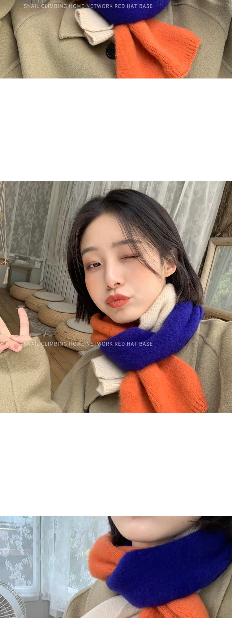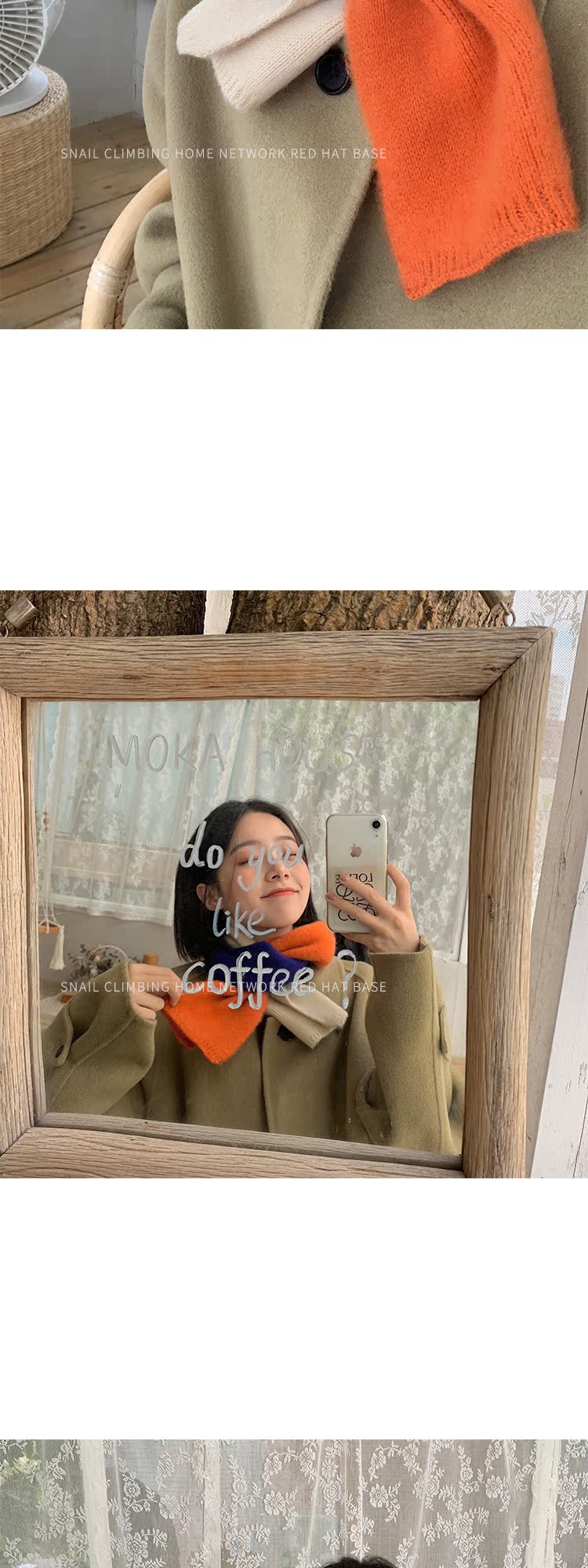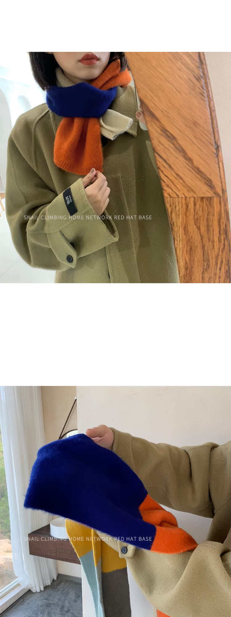 蝸牛爬爬家/ins學院風小圍巾女秋冬日系撞色短款針織學生保暖圍脖1入