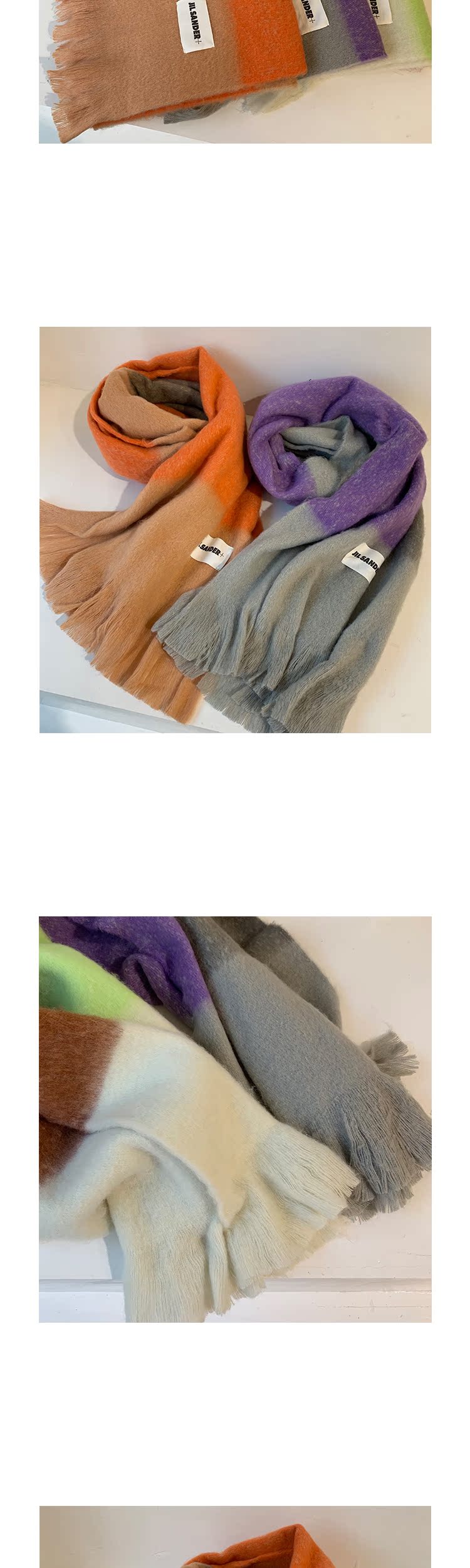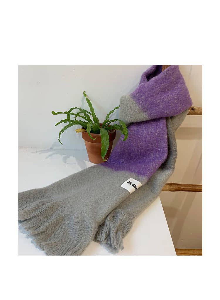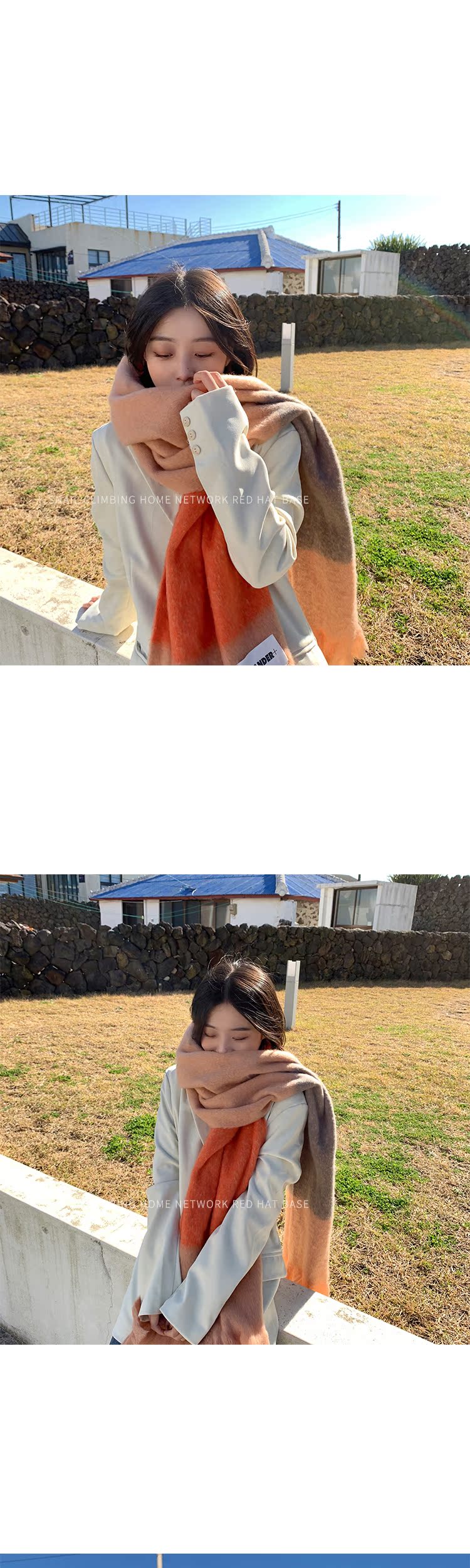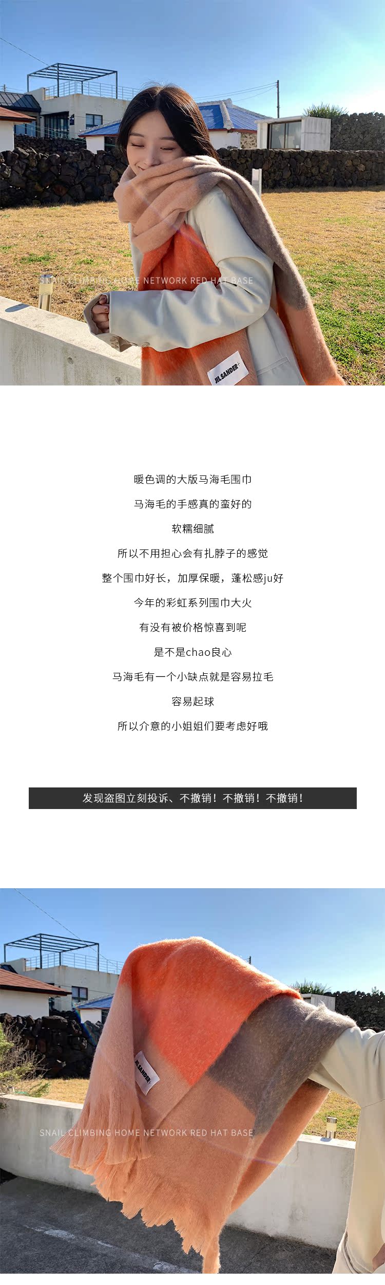 蝸牛爬爬家/網紅同款馬海毛拼色羊絨圍巾女冬季長款加厚保暖圍脖1入