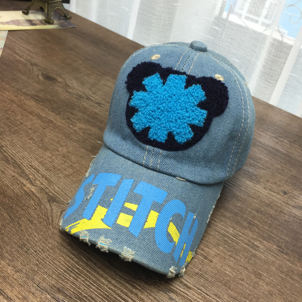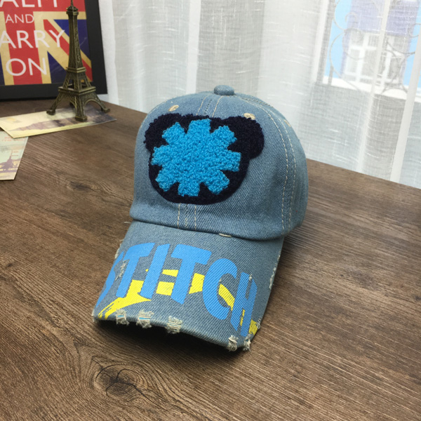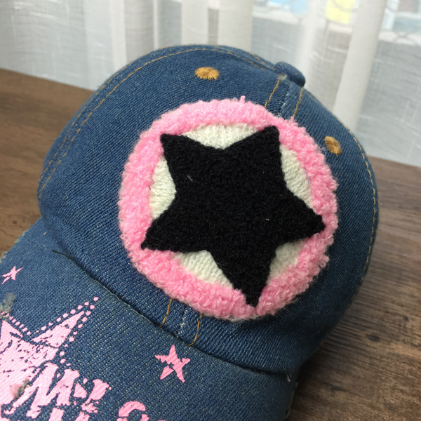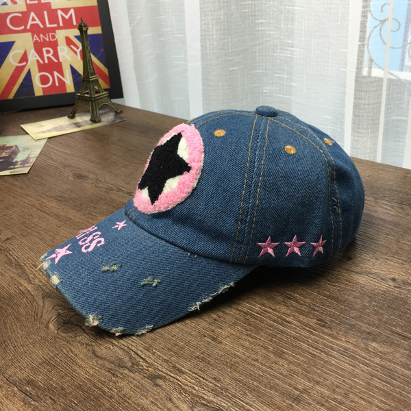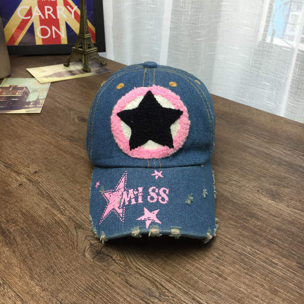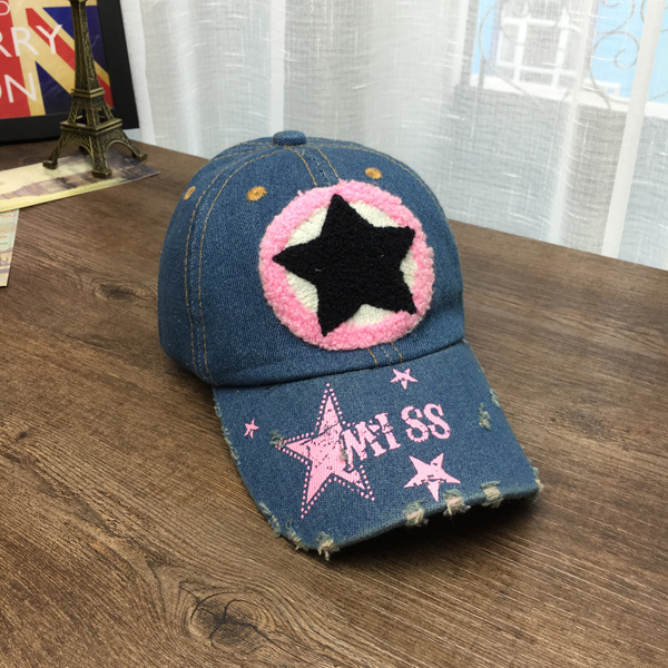 韓版春夏天男女兒童棒球帽五角星磨破牛仔布帽子寶寶遮陽鴨舌帽子1入
