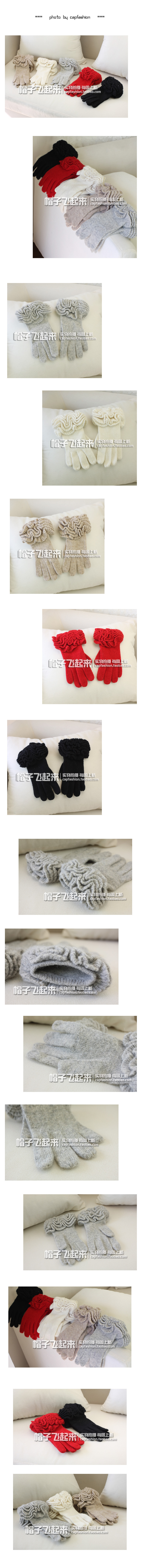 韓國堆堆波浪花邊公主手套兔羊毛手套保暖女士手套秋冬天1入