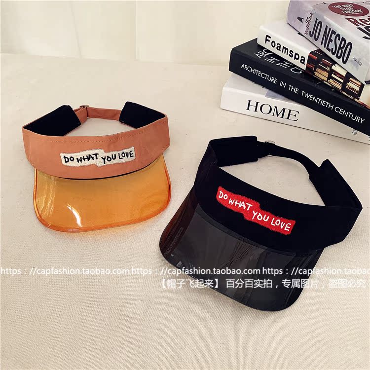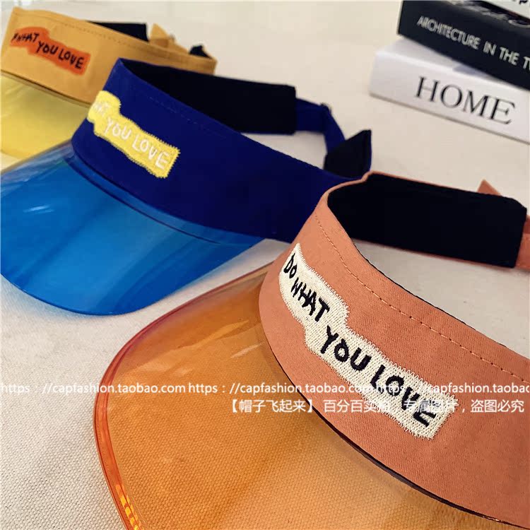 韓國字母彩色透明無頂戶外運動跑步鴨舌空頂帽夏天防曬太陽帽子潮1入