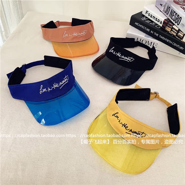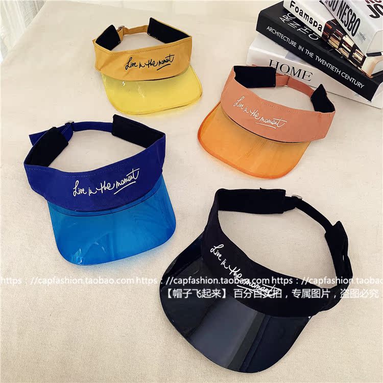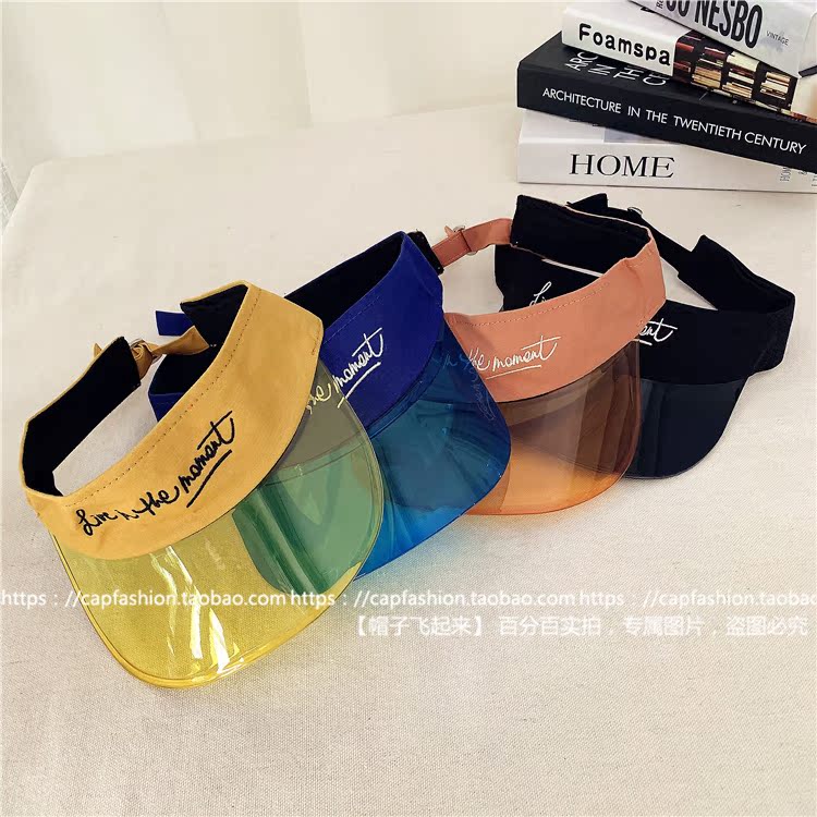 韓國夏天彩色透明無頂戶外運動跑步鴨舌空頂帽出游防曬太陽帽子潮1入