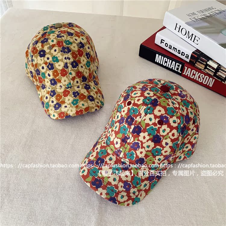韓版春夏時尚彩色小碎花棒球帽子女士遮陽旅游帽防曬鴨舌帽1入