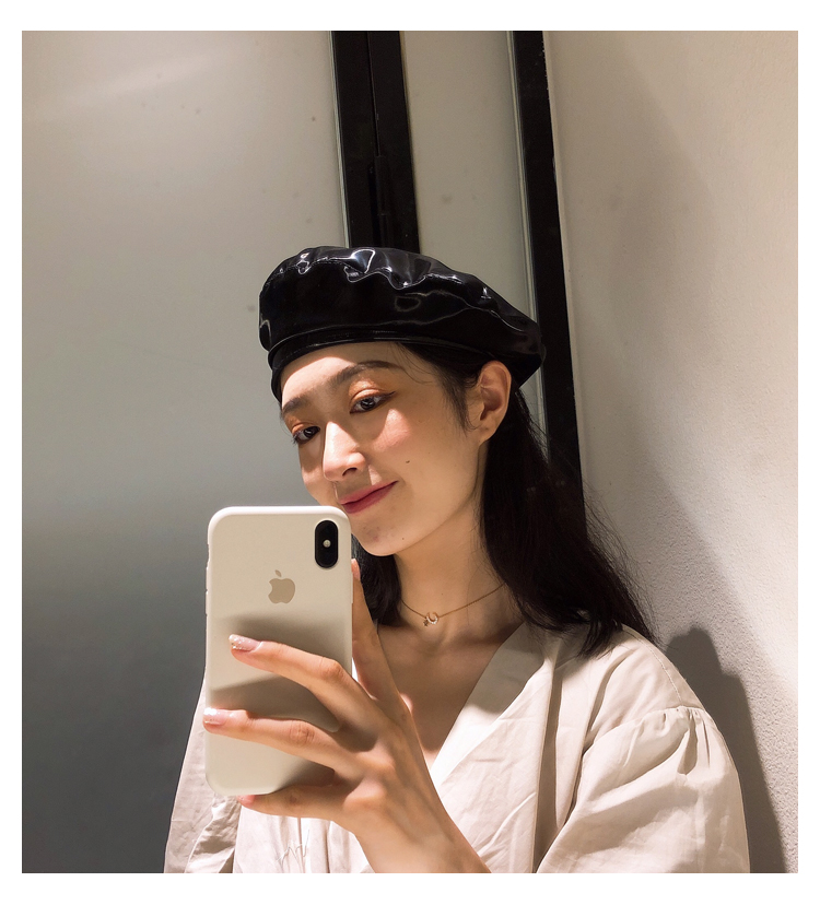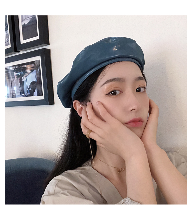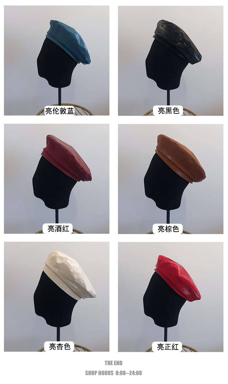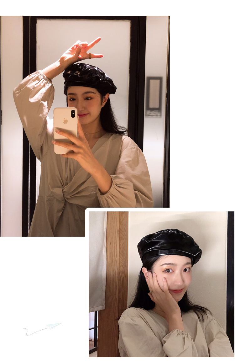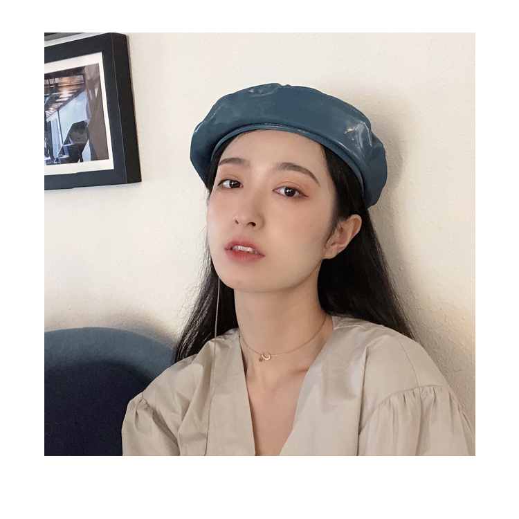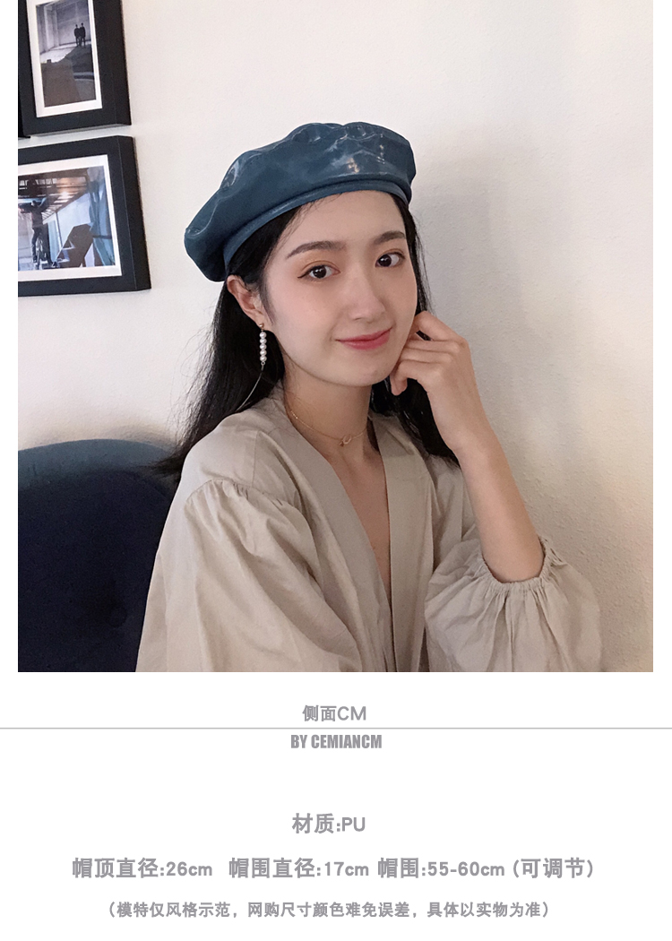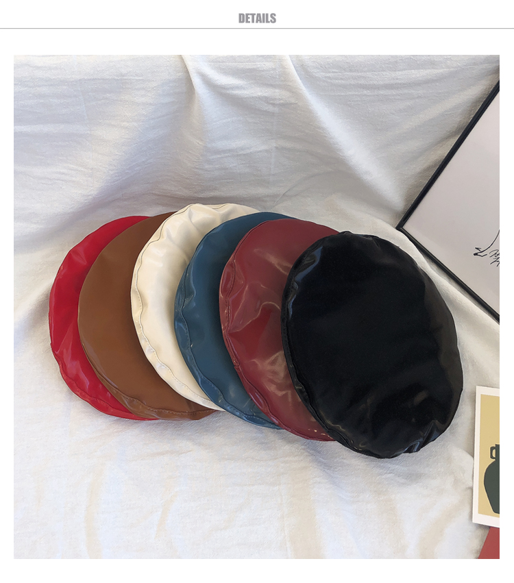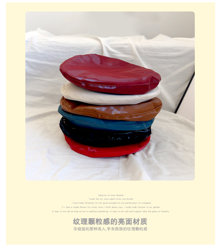 貝雷帽女時尚英倫PU光面皮帽子韓版百搭畫家帽復古氣質蓓蕾南瓜帽1入