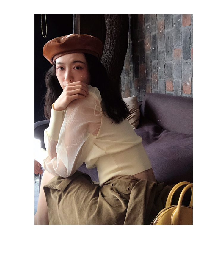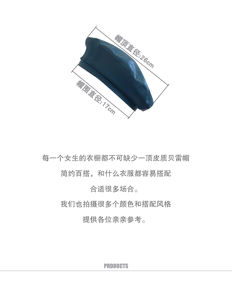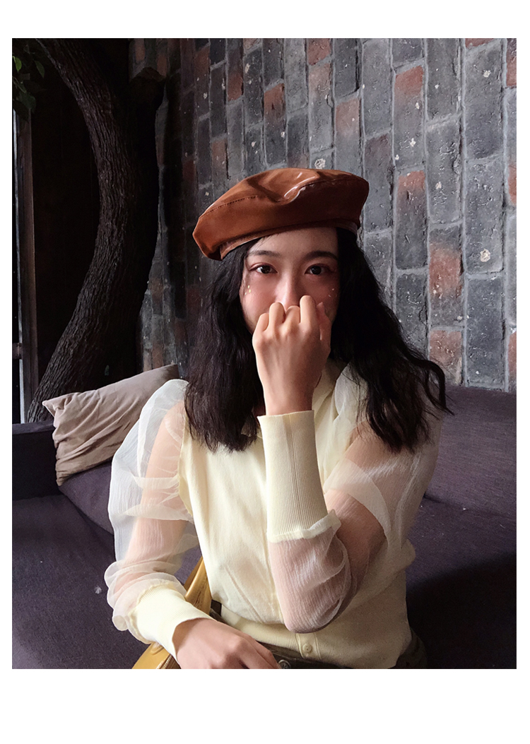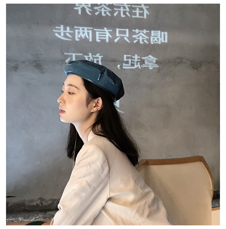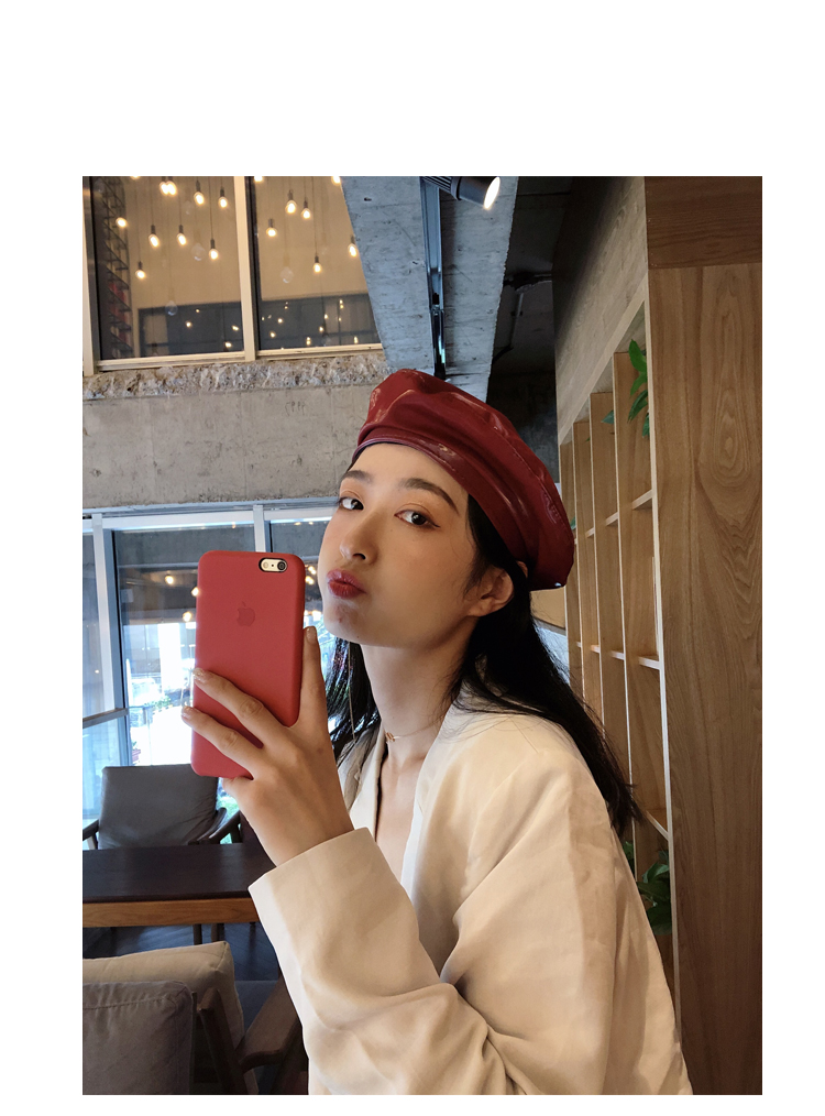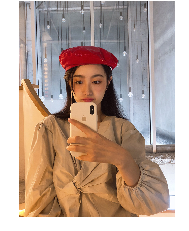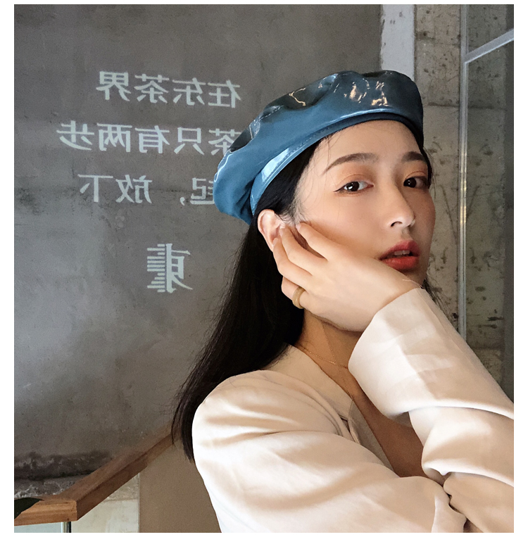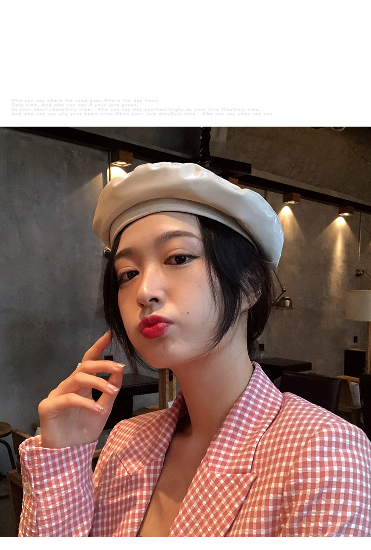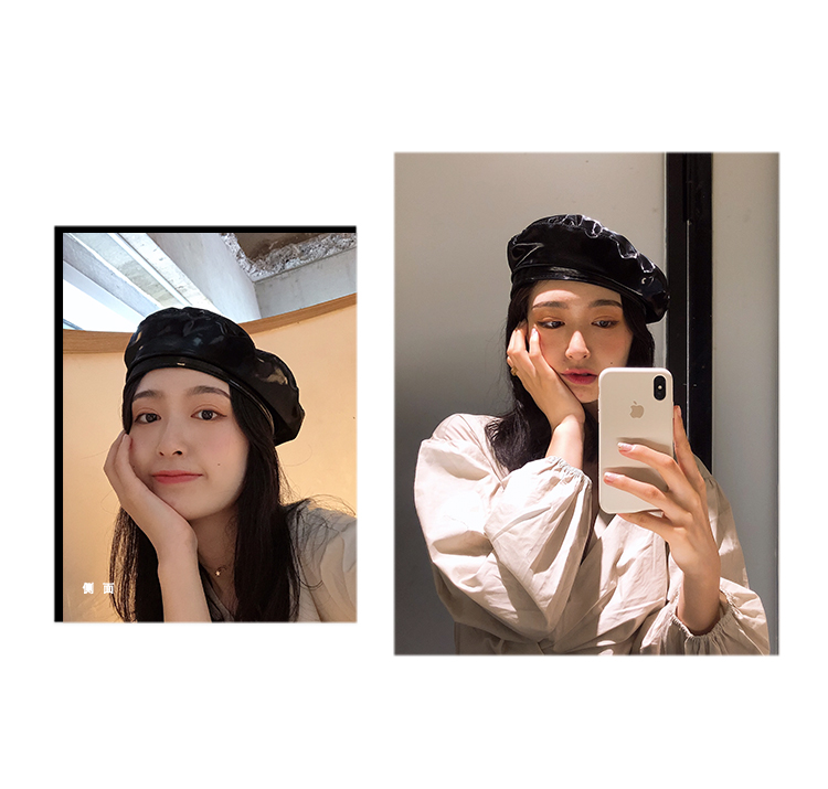 貝雷帽女時尚英倫PU光面皮帽子韓版百搭畫家帽復古氣質蓓蕾南瓜帽1入
