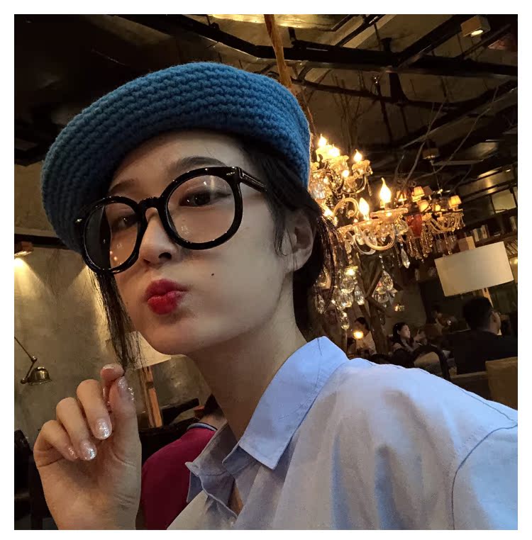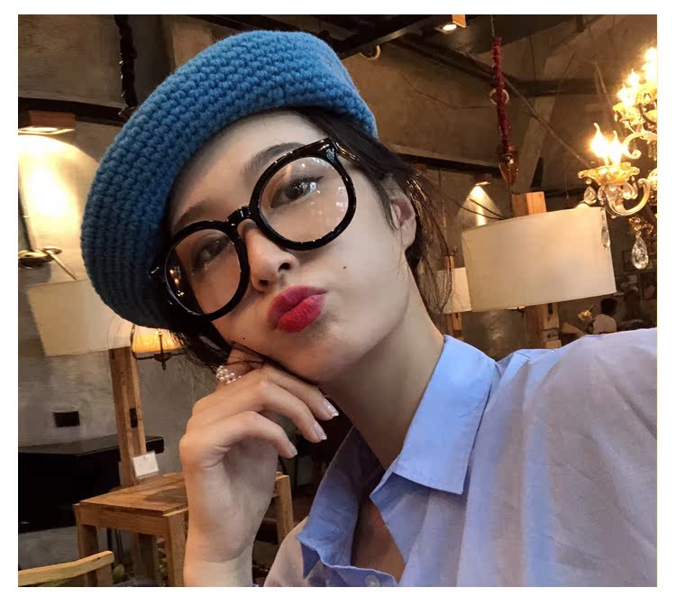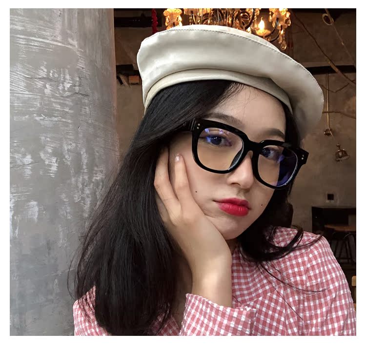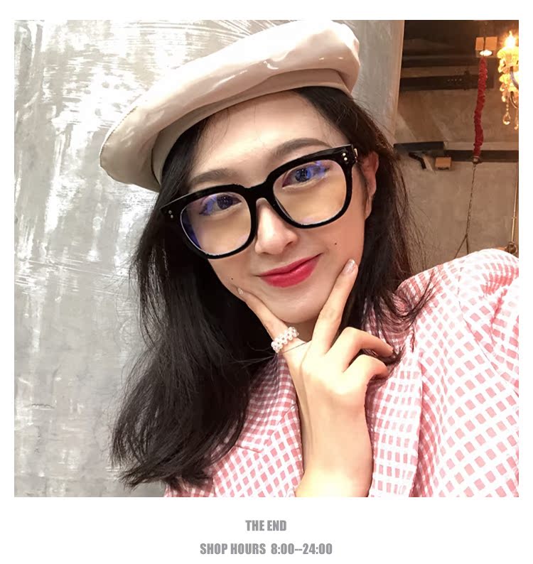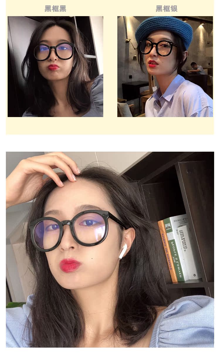 韓國黑色粗框簡約復古文藝懶人平光眼鏡框女網紅款大圓臉顯瘦新款1入
