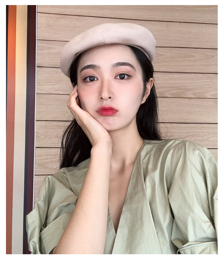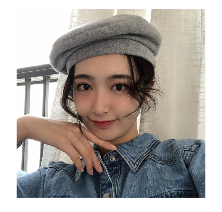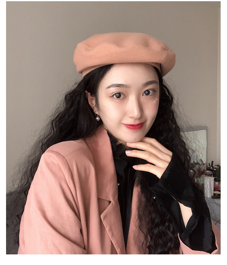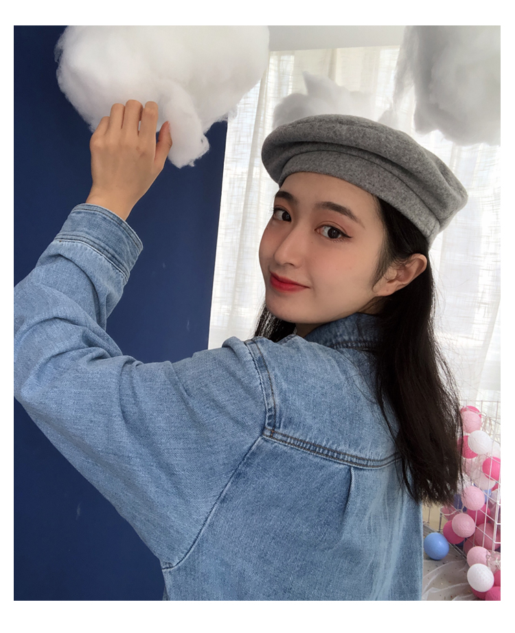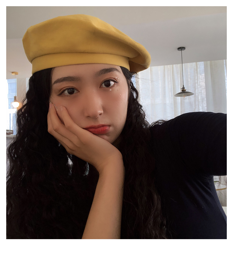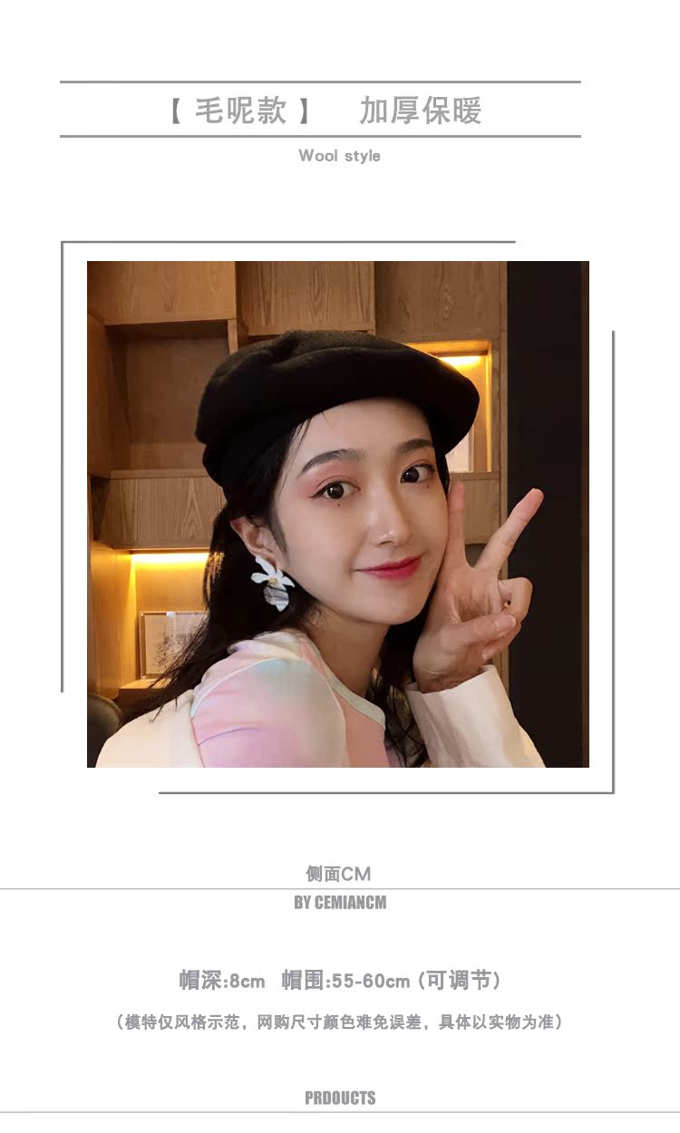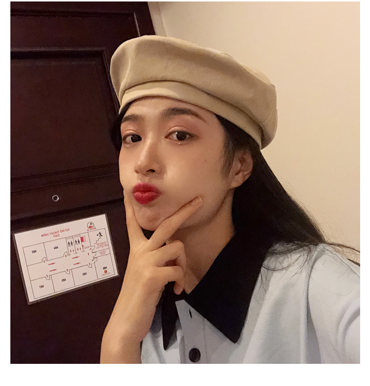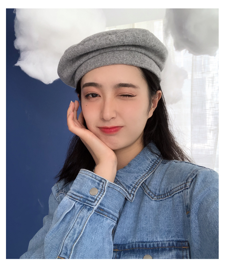 貝雷帽女秋冬毛呢日系百搭黑色八角帽子韓版潮英倫復古畫家蓓蕾帽1入