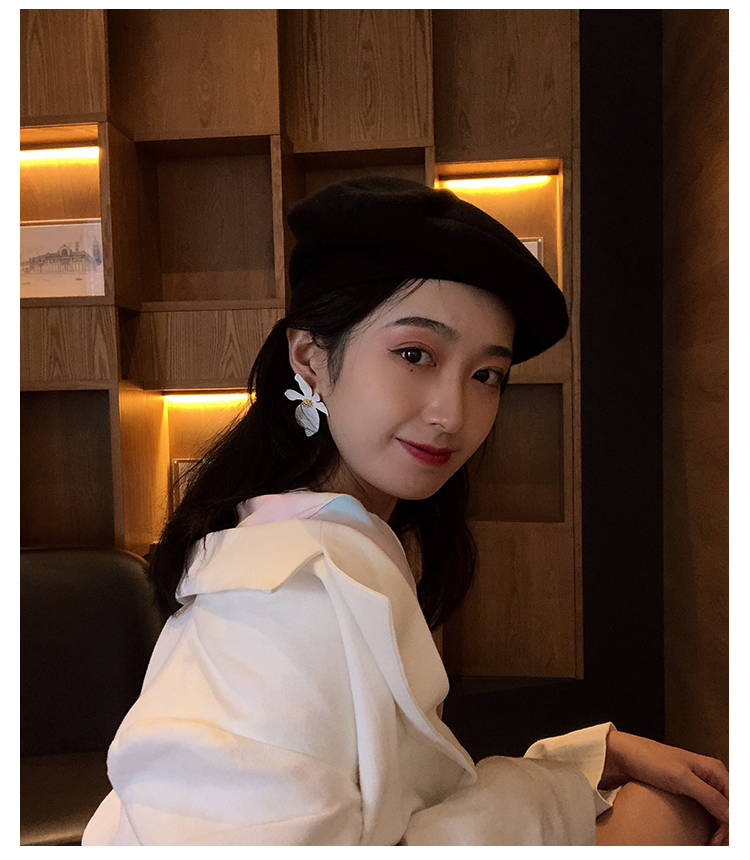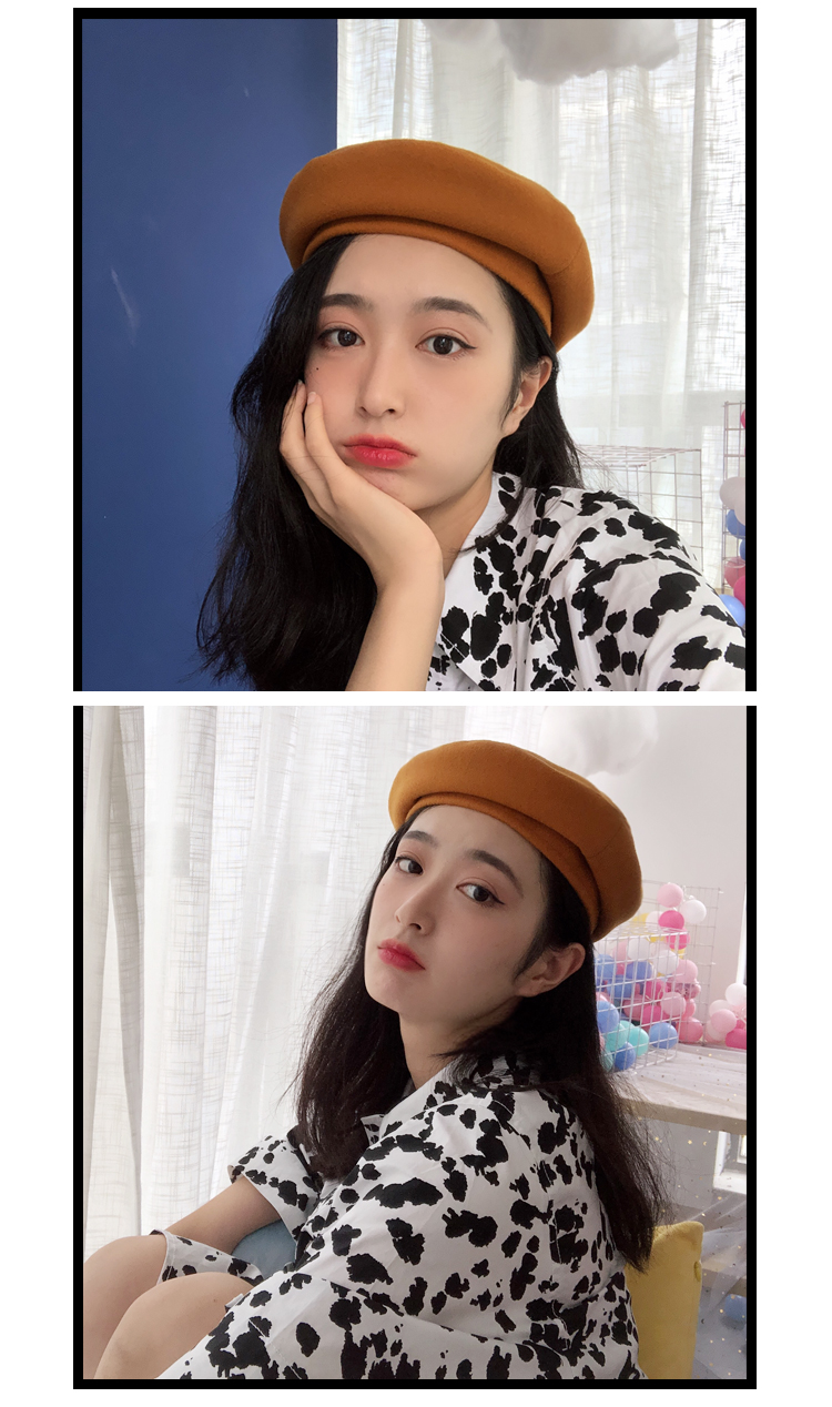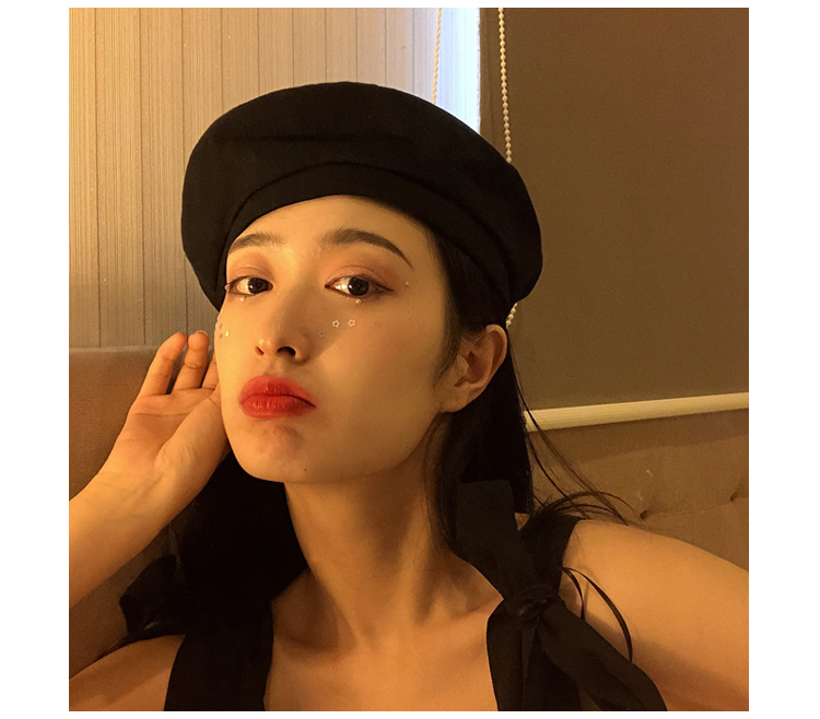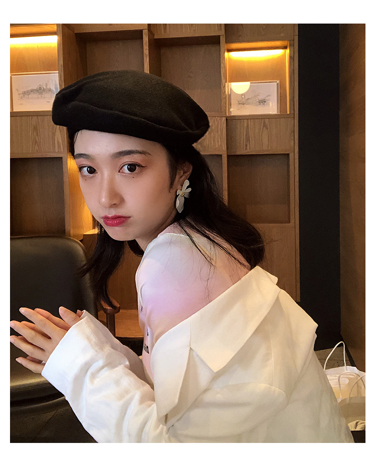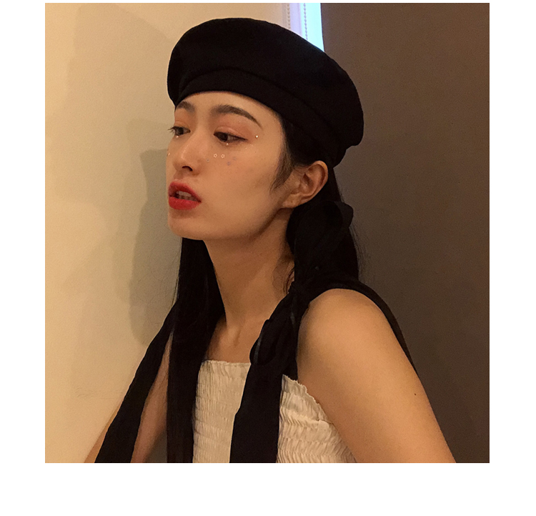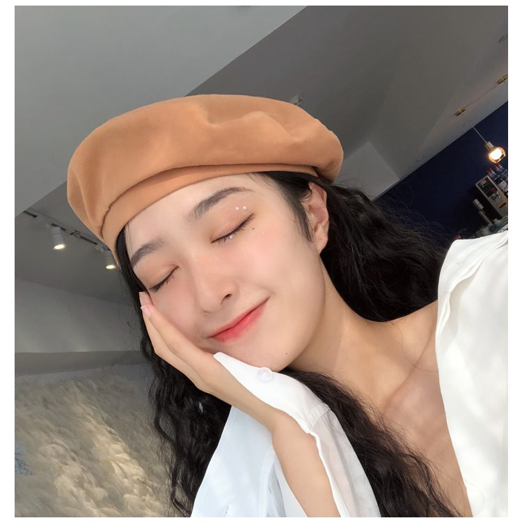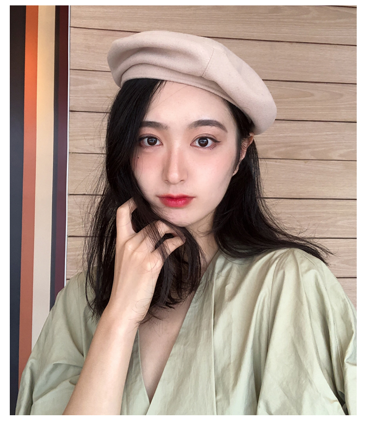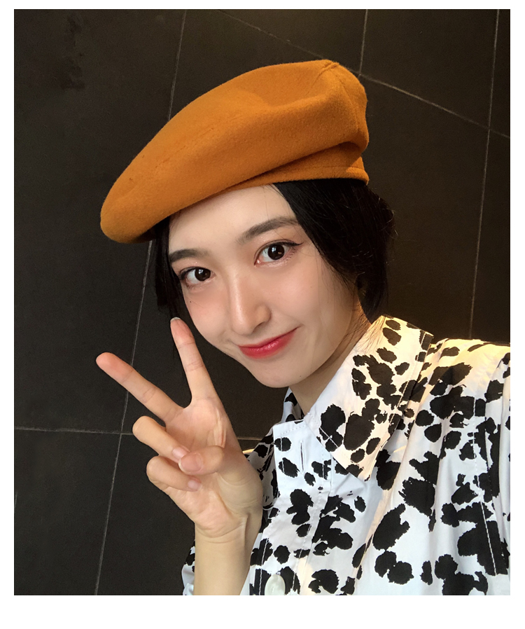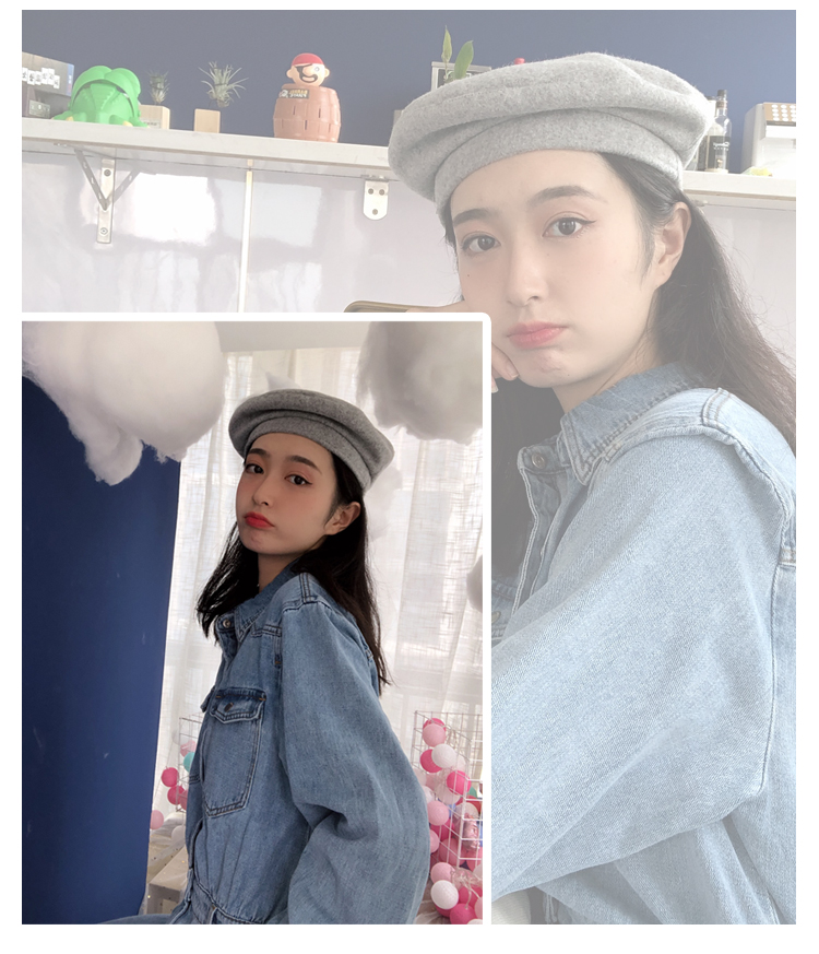 貝雷帽女秋冬毛呢日系百搭黑色八角帽子韓版潮英倫復古畫家蓓蕾帽1入