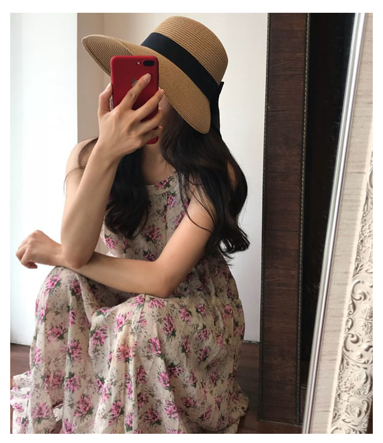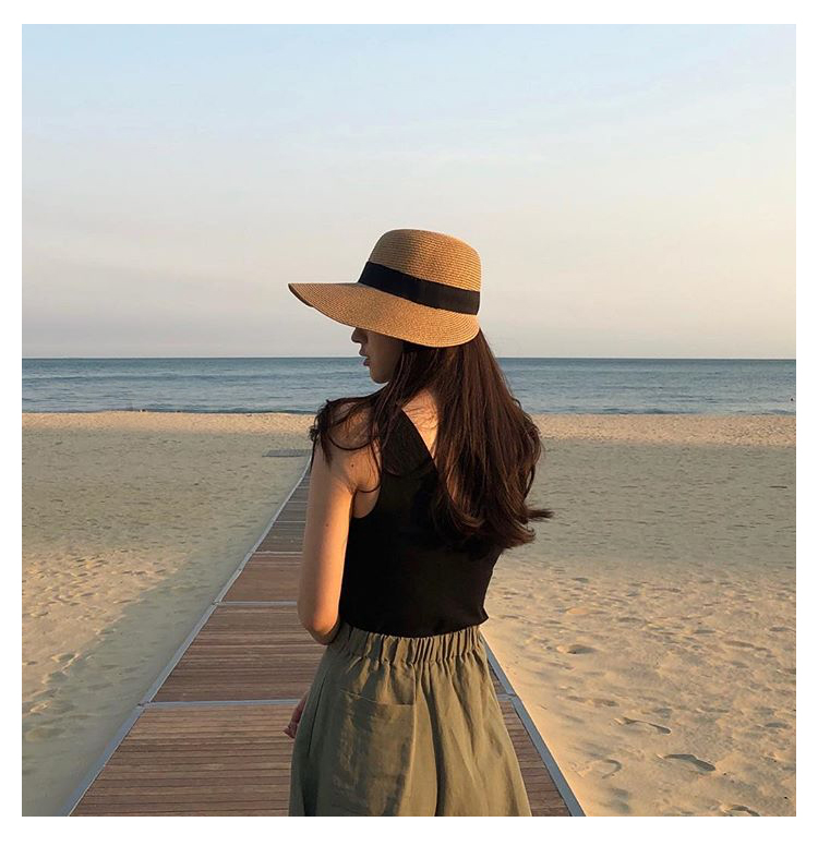 赫本風大檐草帽女夏天沙灘度假海邊韓版ins小清新防曬遮陽太陽帽1入
