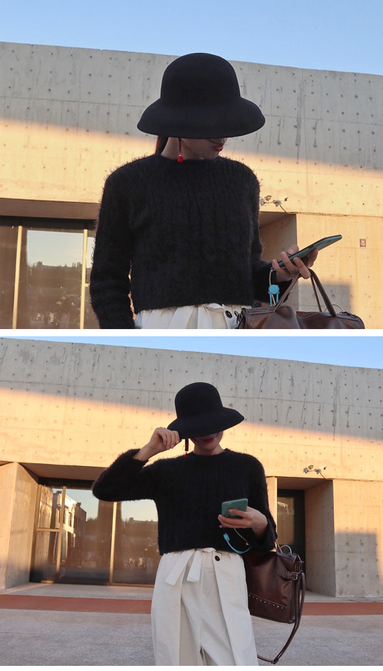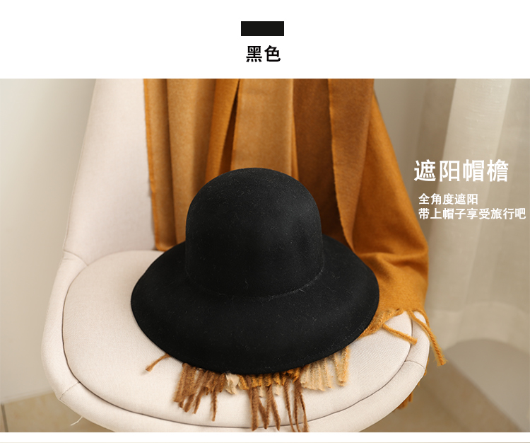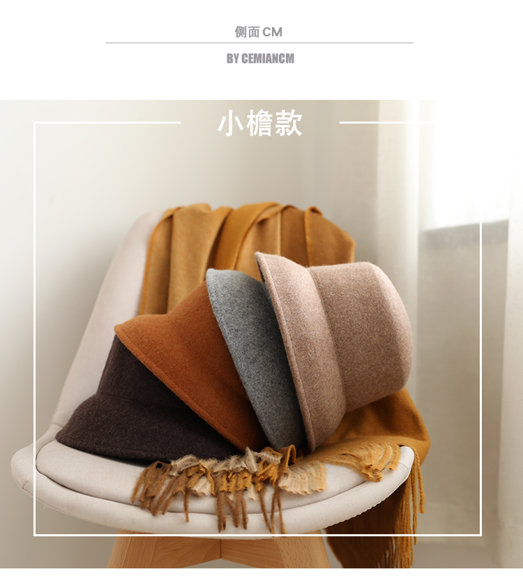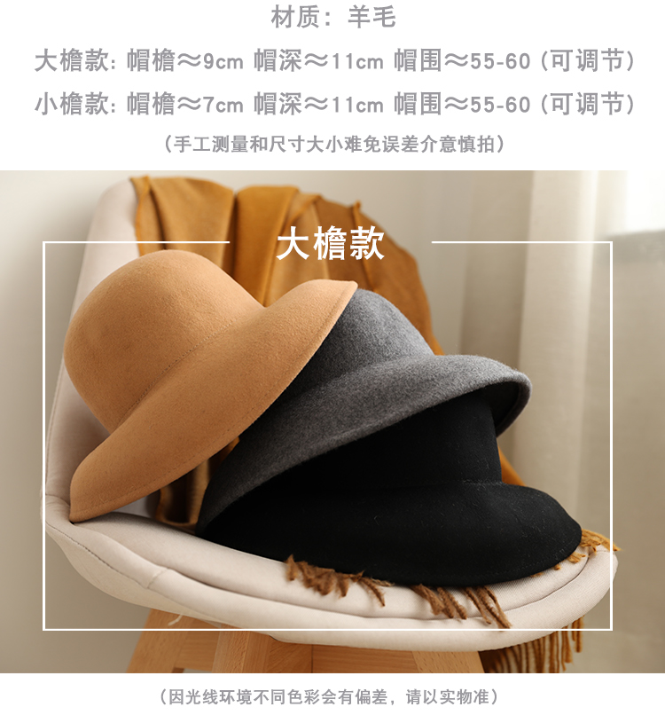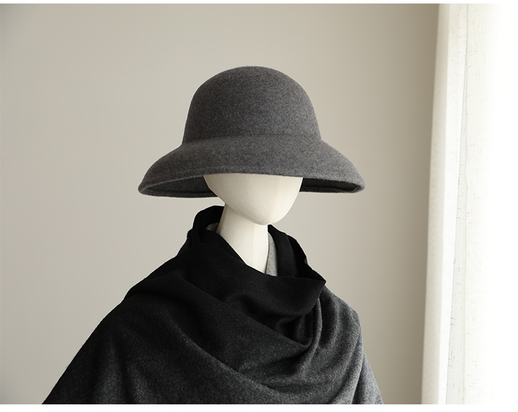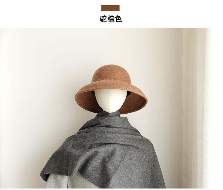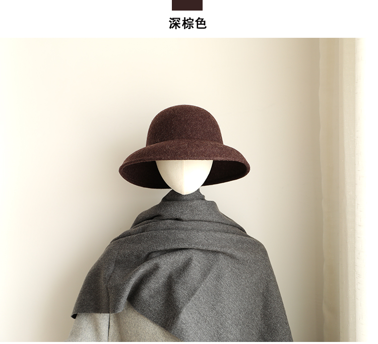 赫本毛呢帽子女秋冬韓版復古鐘形盆帽黑色漁夫帽優雅法式羊毛禮帽1入