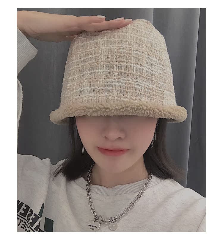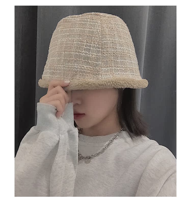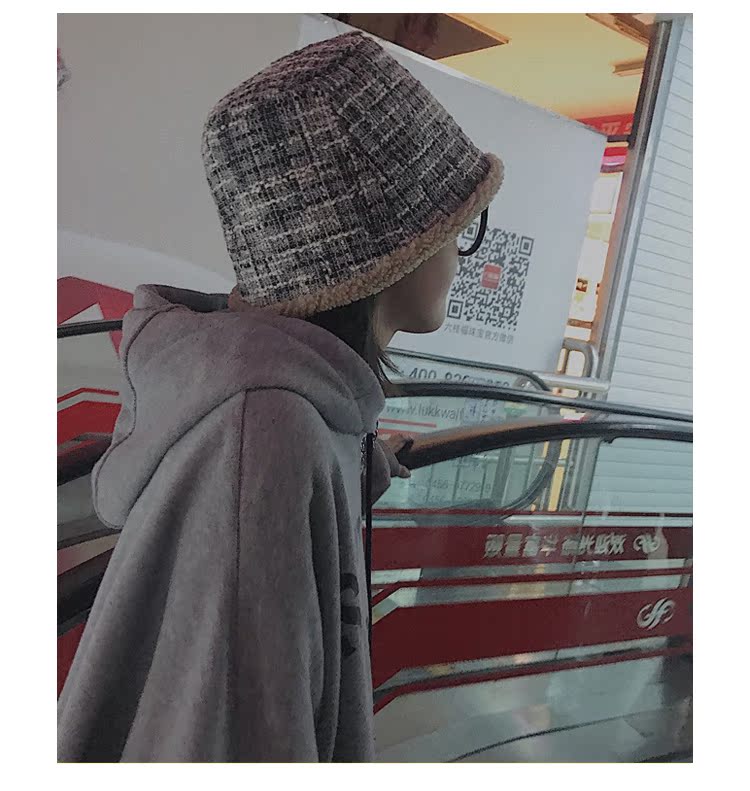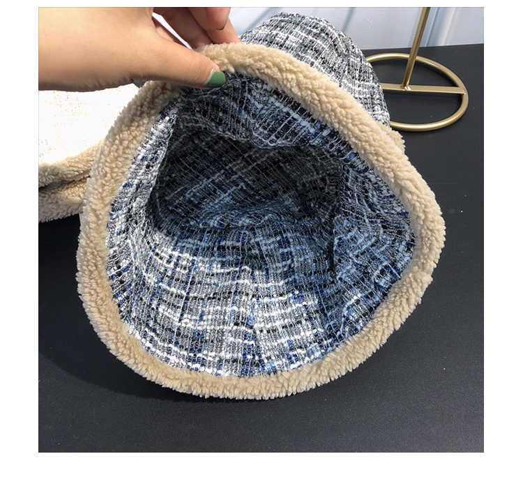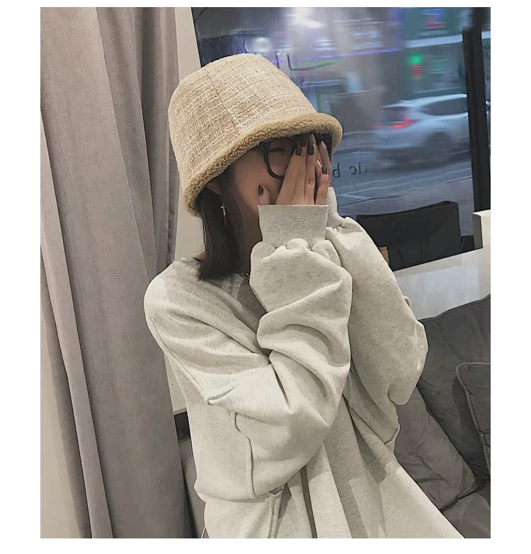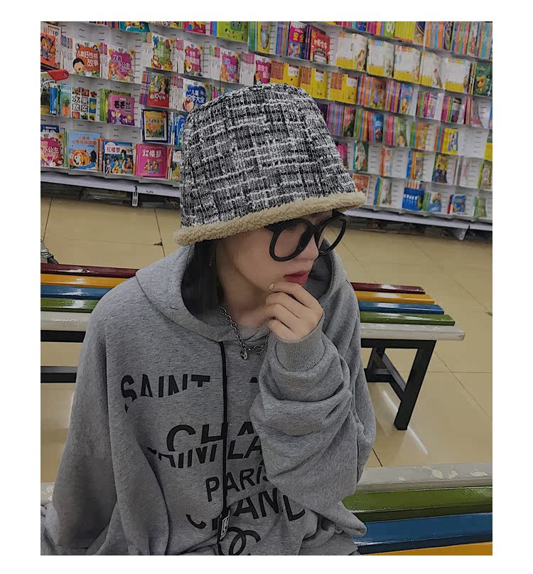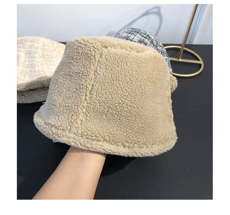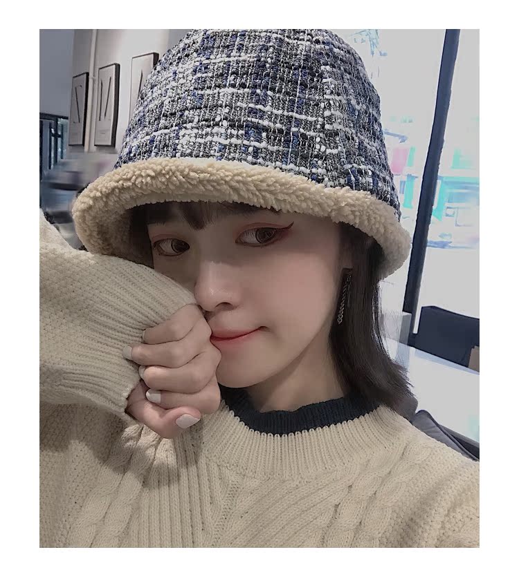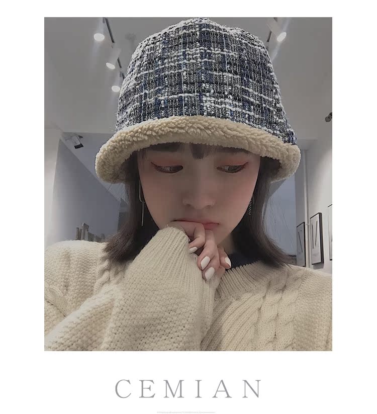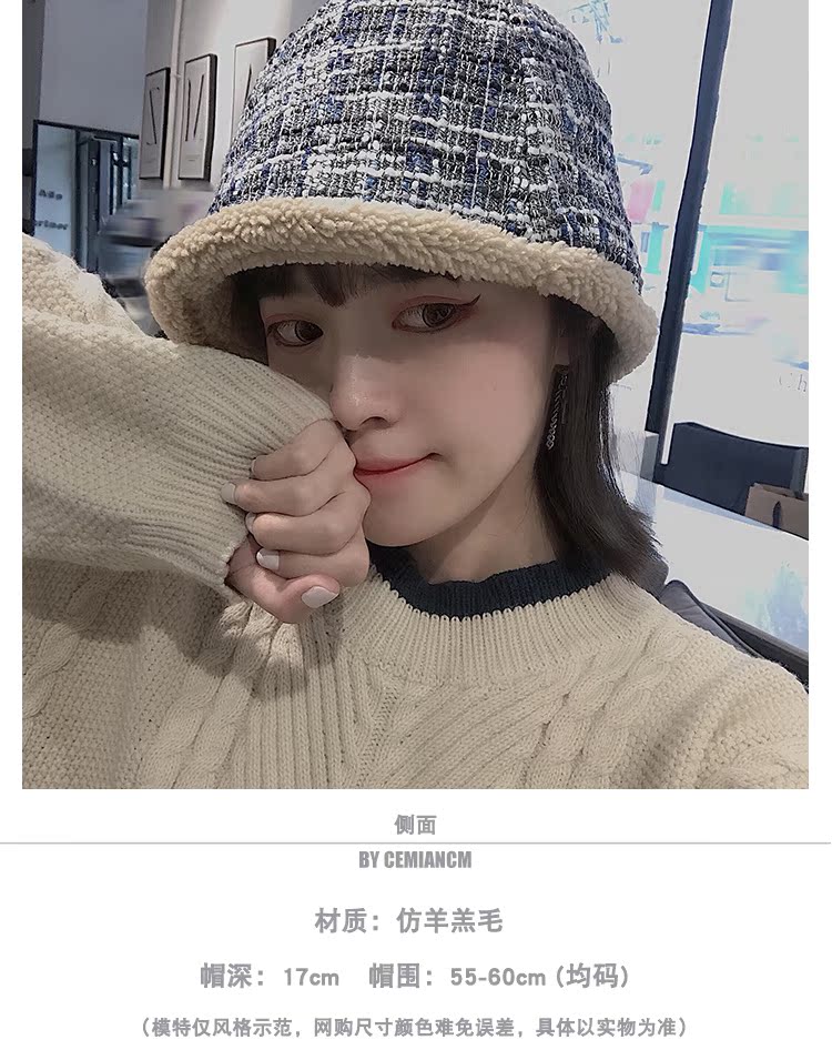 雙面戴毛絨漁夫帽子女冬韓版日系甜美可愛加絨加厚保暖小香風盆帽1入
