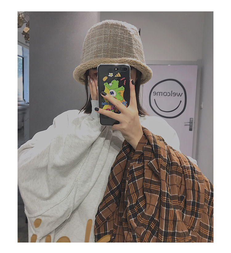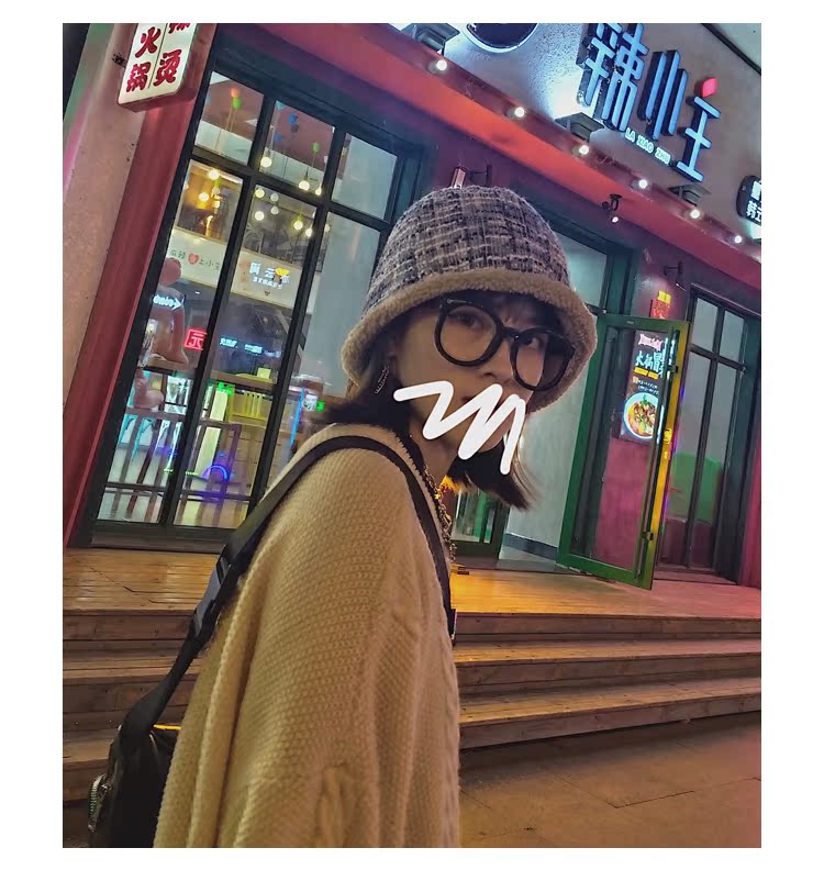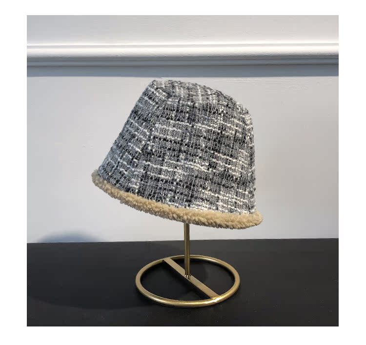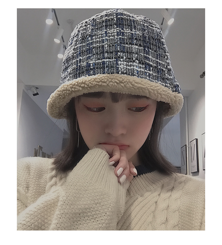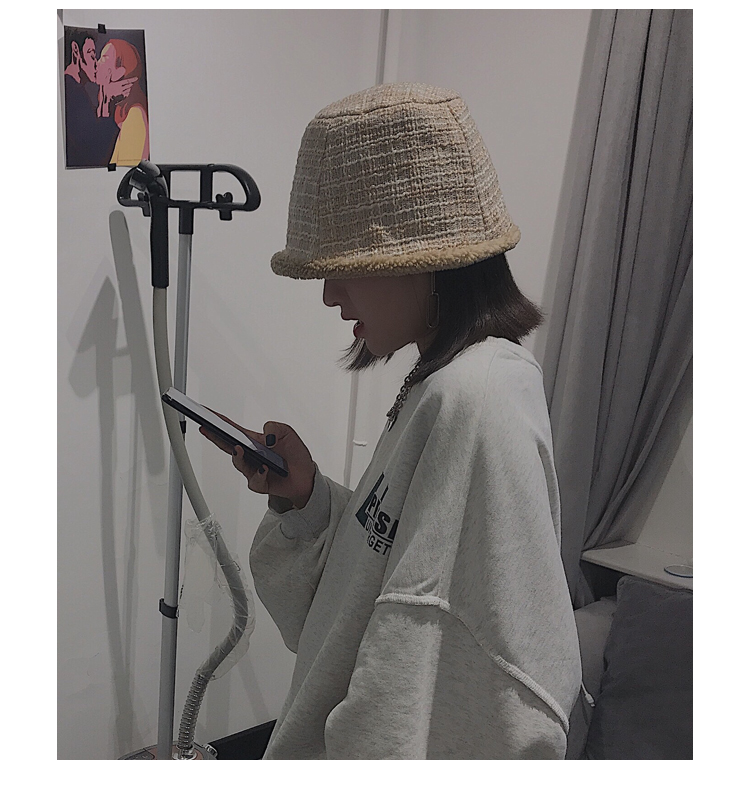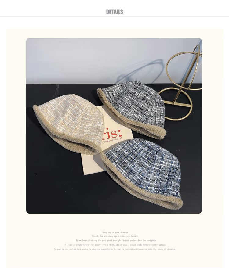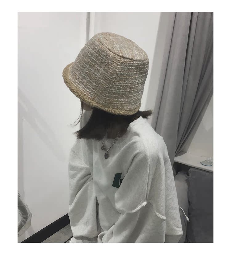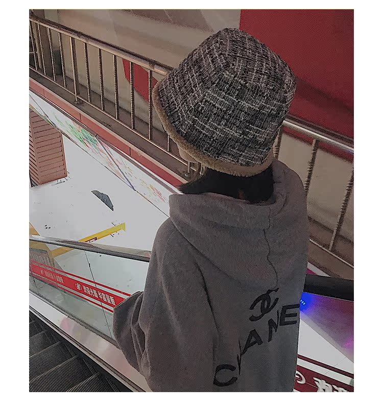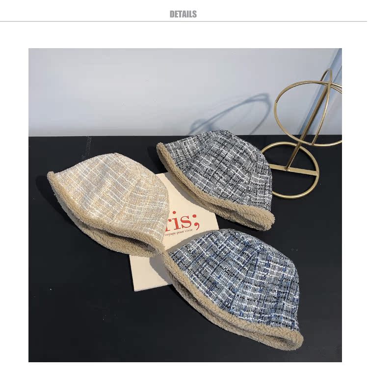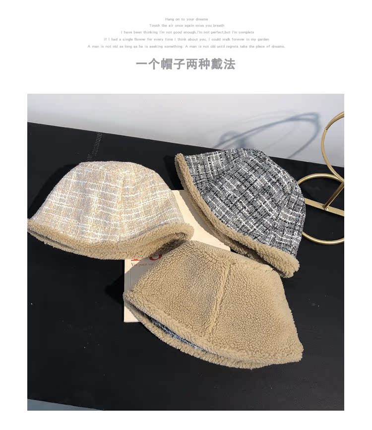 雙面戴毛絨漁夫帽子女冬韓版日系甜美可愛加絨加厚保暖小香風盆帽1入