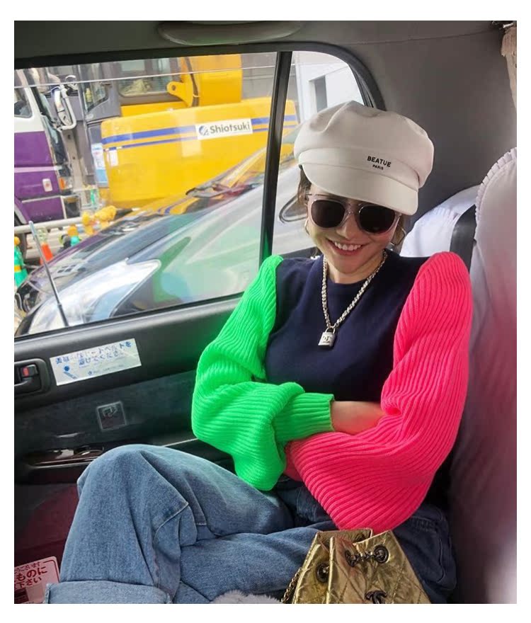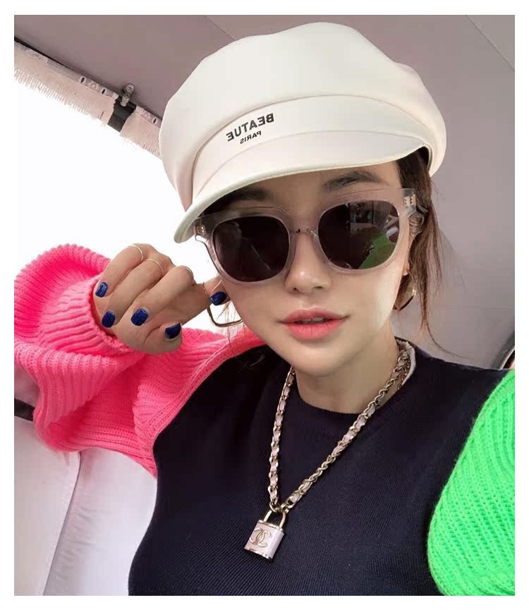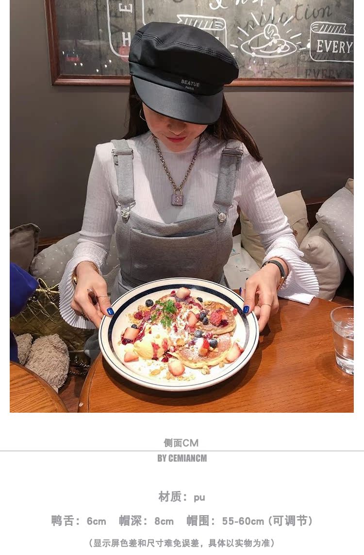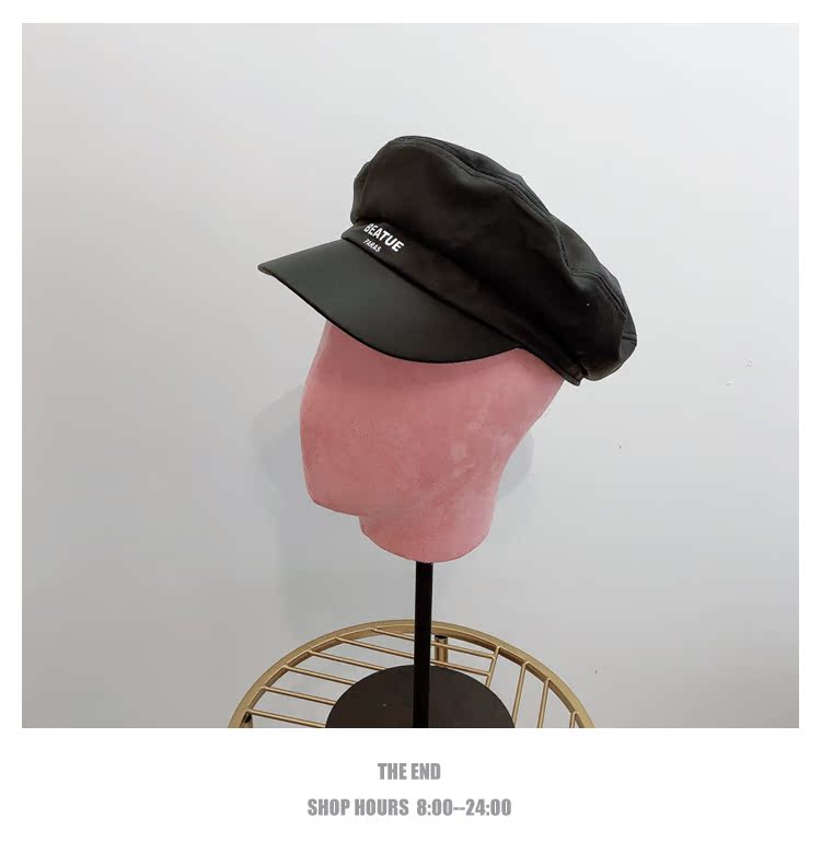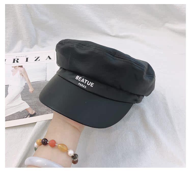 韓版字母pu皮海軍帽歐美百搭洋氣平頂八角帽女2019新款鴨舌貝雷帽1入
