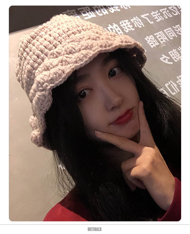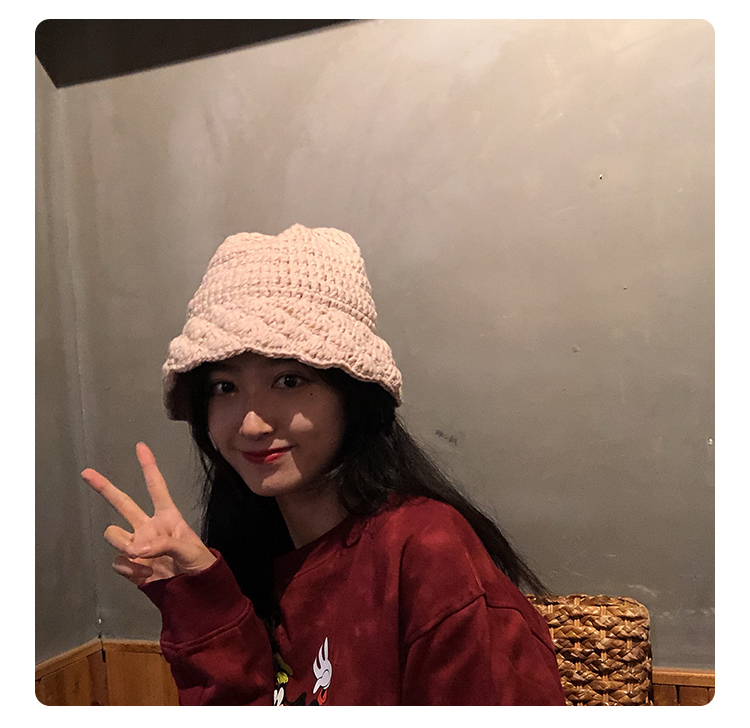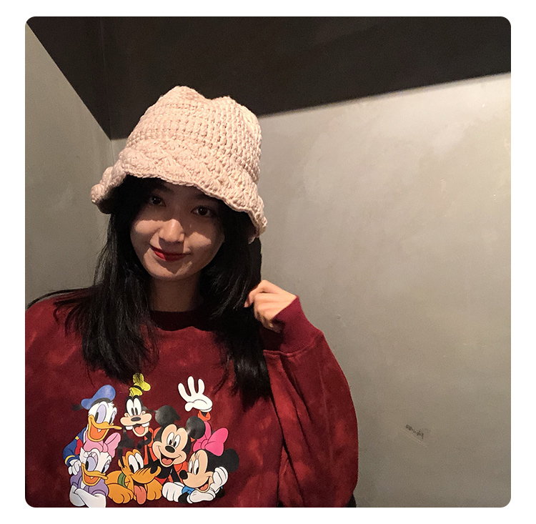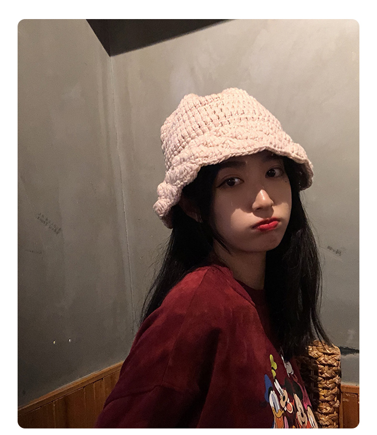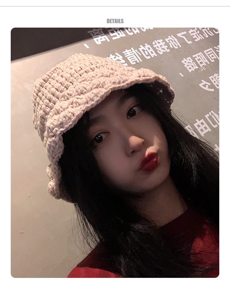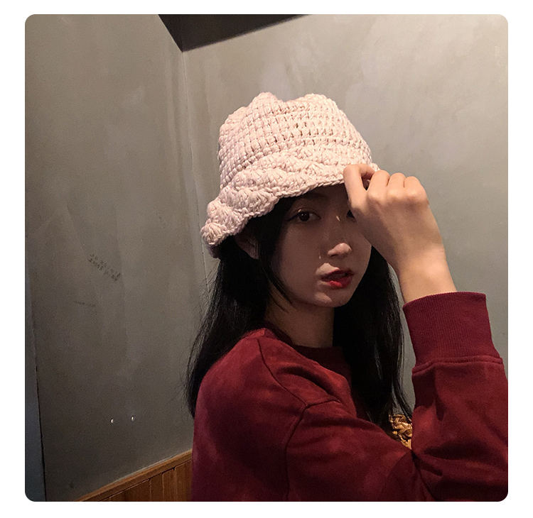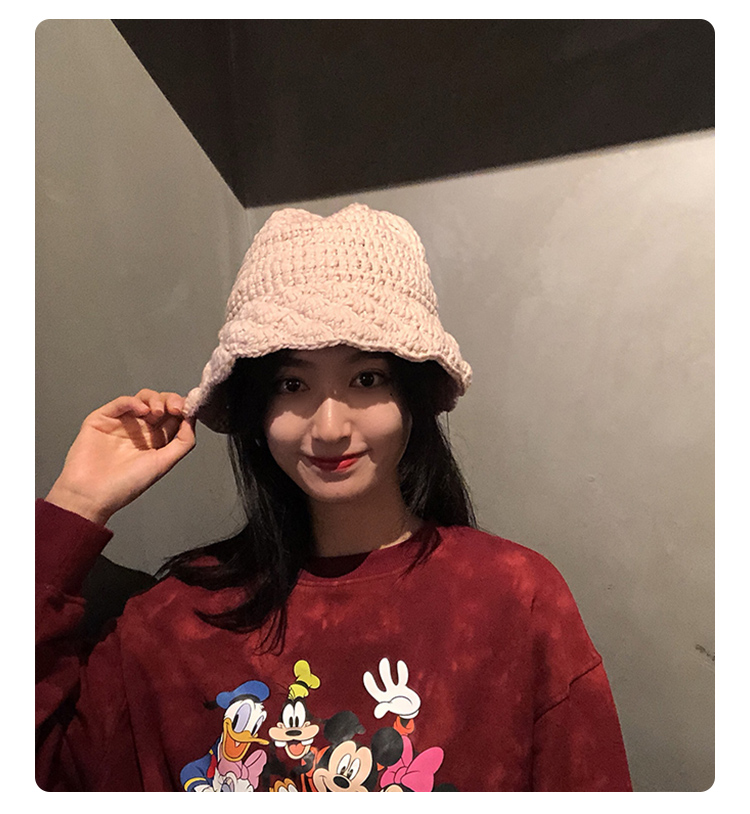 麻花編織盆帽女日系秋冬韓版百搭復古針織毛線圓臉適合的漁夫帽子1入