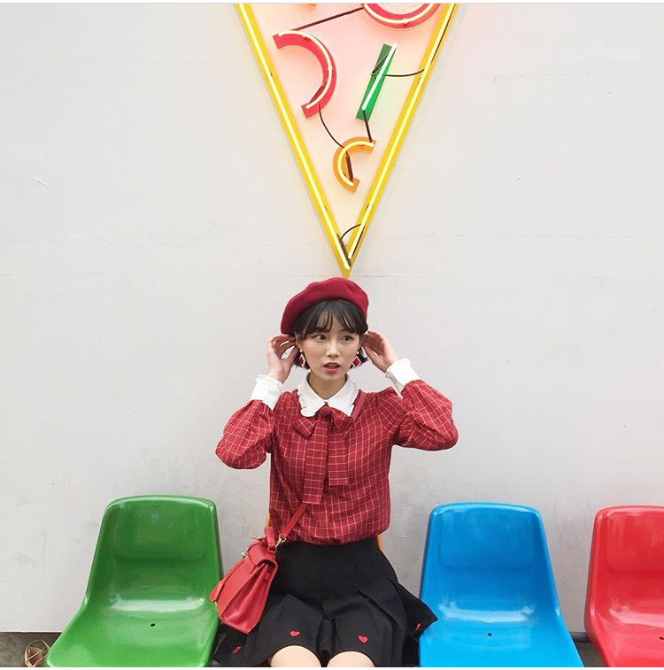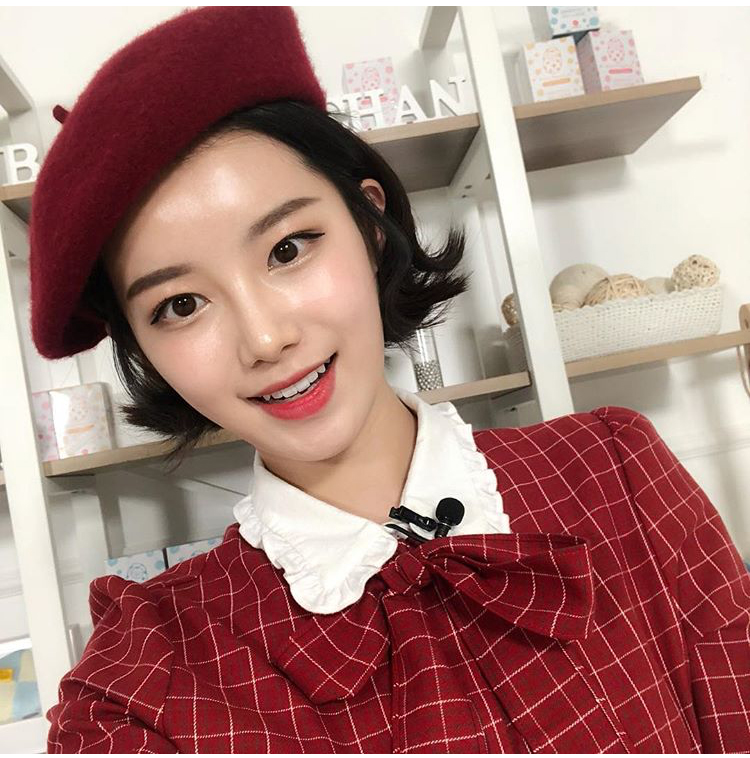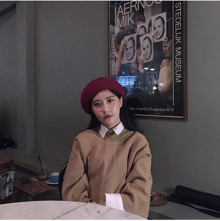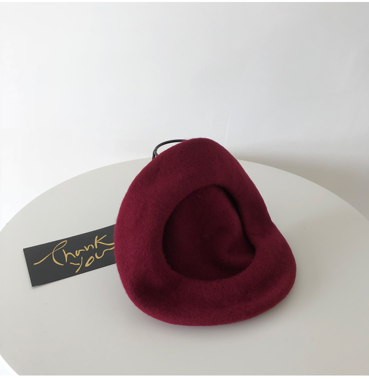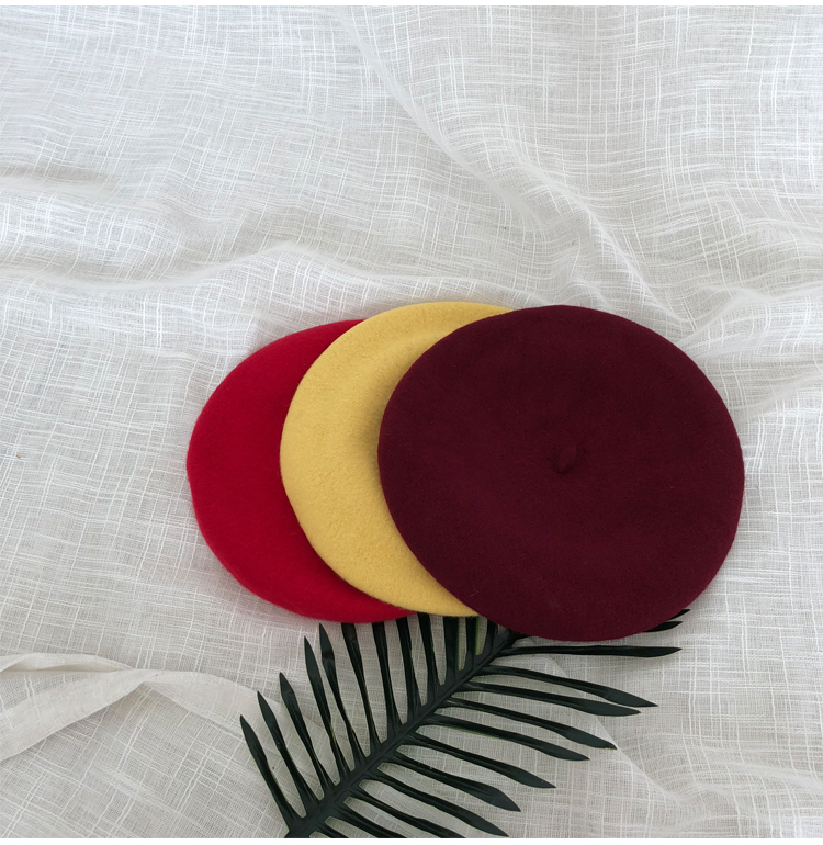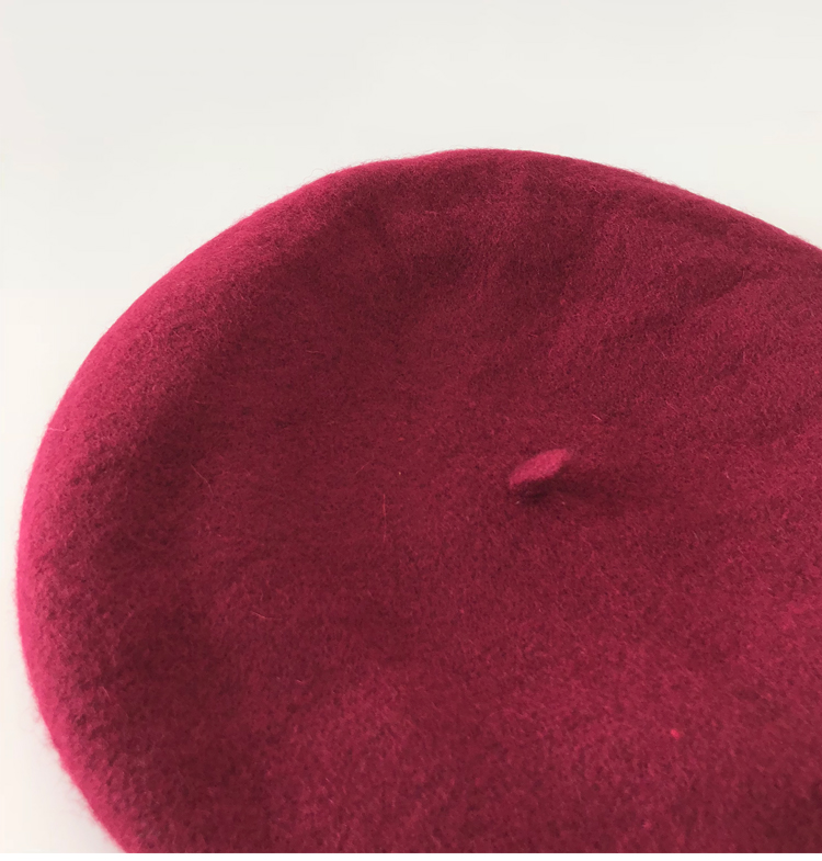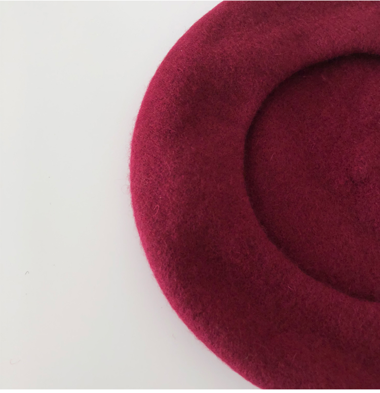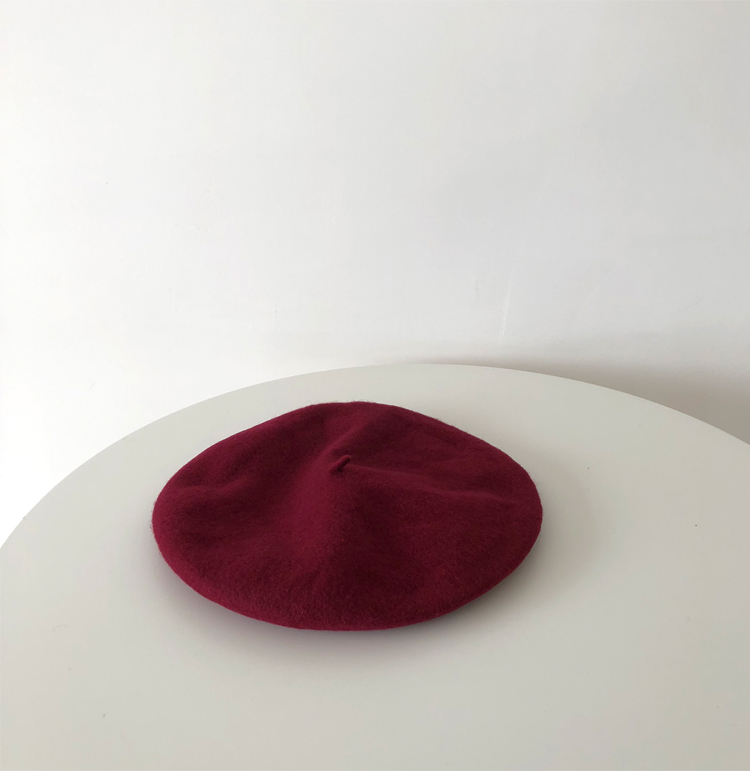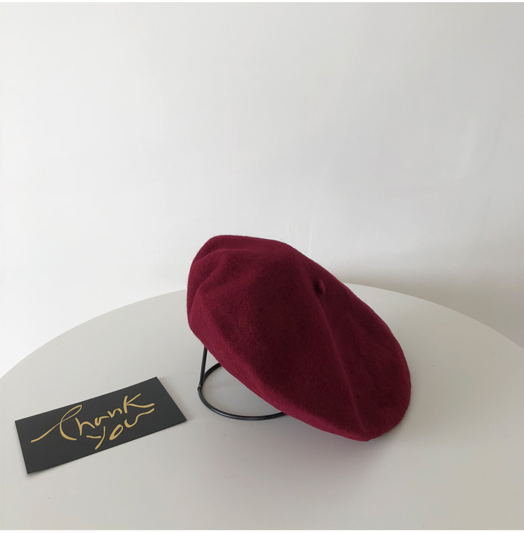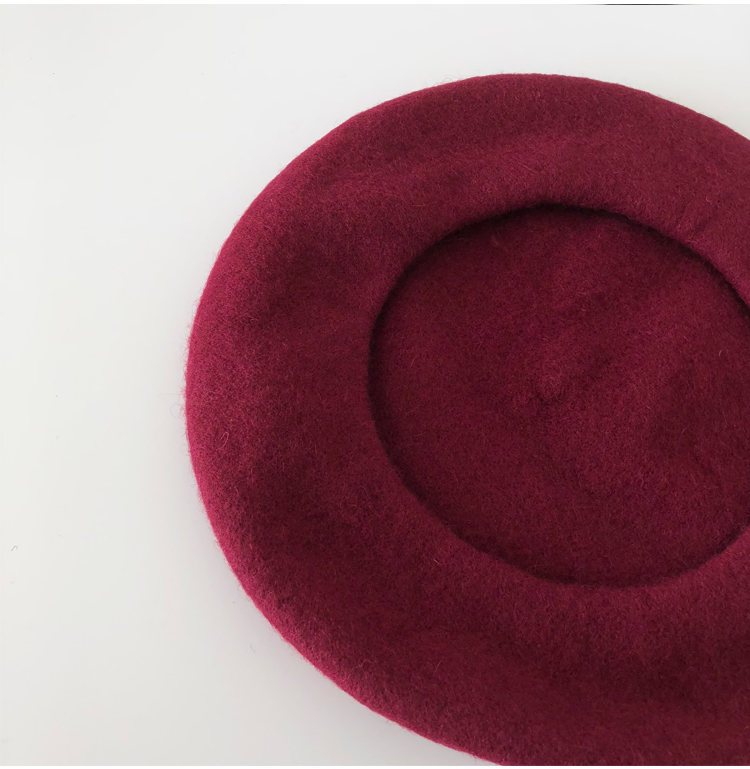 韓版甜美澳洲羊毛酒紅色貝雷帽女冬凹造型質感百搭復古休閑畫家帽1入
