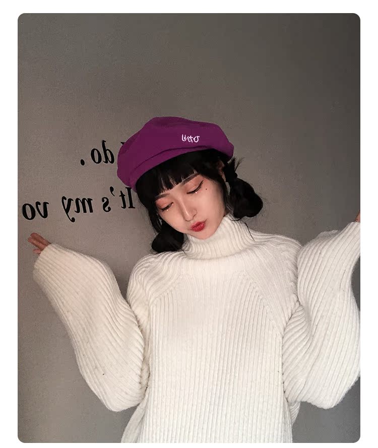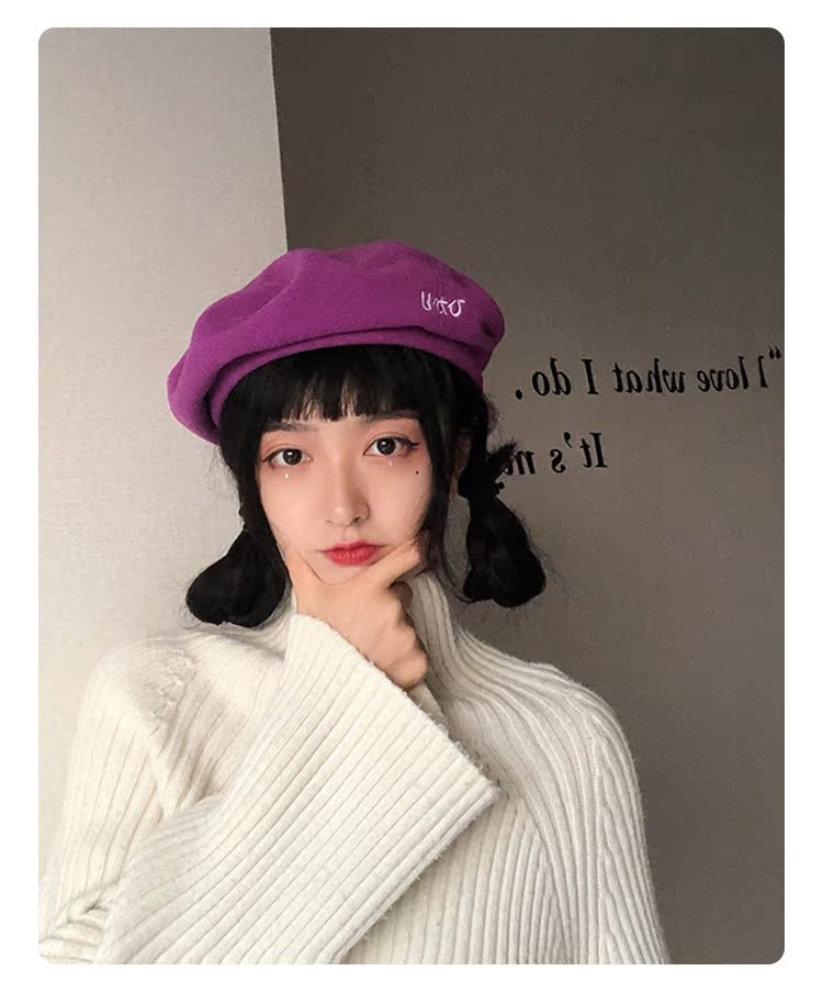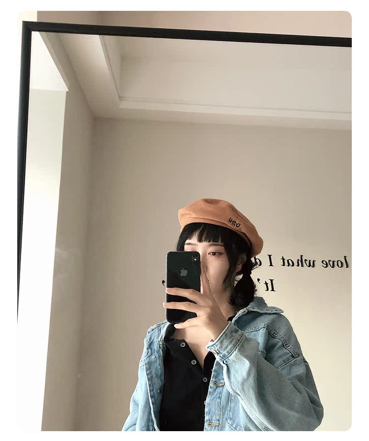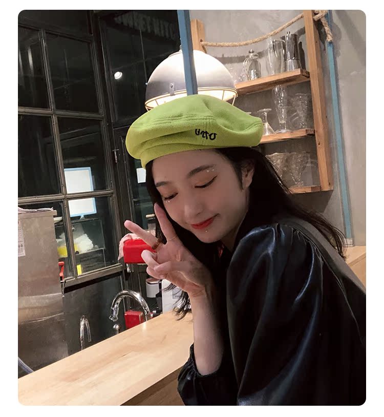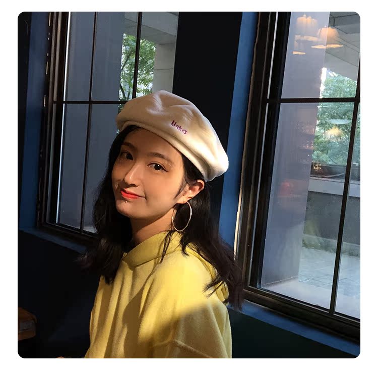 貝雷帽女韓版ins潮秋冬日系甜美可愛畫家帽子字母街頭學生蓓蕾帽1入